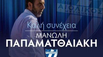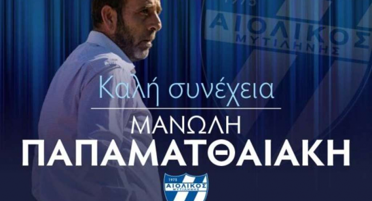 Ο απολογισμός του νησιωτικού συλλόγου με τον έμπειρο προπονητή στον πάγκο στις έξι αγωνιστικές του πρωταθλήματος στον 6ο όμιλο ήταν τρεις νίκες, δύο ισοπαλίες και μία ήττα. Χρέη υπηρεσιακού τεχνικού ενόψει και του αγώνα με τον ΑΟ Πυλίου Κω αναλαμβάνει ο Θόδωρος Γιακαλής. Η ενημέρωση των κυανόλευκων αναφέρει: «Η διοίκηση του ΑΕΠΣ Αιολικός Μυτιλήνης ανακοινώνει τη λύση της συνεργασίας της με τον προπονητή Μανώλη Παπαματθαιάκη, τον οποίο ευχαριστεί θερμά για την προσφορά του στο σύλλογο. Κόουτς, σου ευχόμαστε καλή συνέχεια στην καριέρα σου, με υγεία και αγωνιστικές επιτυχίες.