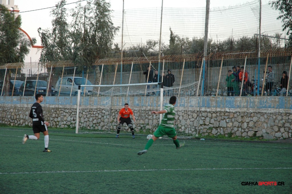Οι φιλοξενούμενοι ξεκίνησαν καλύτερα στον αγωνιστικό χώρο και κυκλοφόρησαν απ’ τα πλάγια για να απειλήσουν την περιοχή του Αποστολόπουλου. Οι «πράσινοι» είχαν την κατοχή, δημιούργησαν ευκαιρίες και στο 38’ μετά από ωραία εναλλαγή της μπάλας ο Γιάννης Κουρζής βρέθηκε σε θέση βολής και πλάσαρε κάνοντας το 0-1.