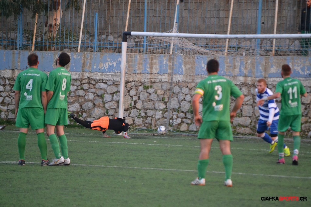 44′ Απευθείας εκτέλεση φάουλ από τον Ζερβό Γ. απόκρουσε προσωρινά ο Μεταξάς και στην επαναφορά ο Φούσκας Γ. έκανε την κεφαλιά από κοντά με τον τερματοφύλακα της Αναγέννησης Ασφενδιού να αποκρούει ξανά.