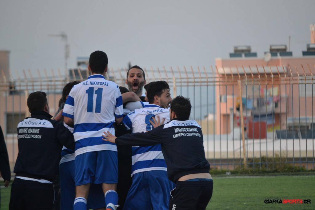 Νικαγόρας: Διακοδημητρίου, Φούσκας Γ. (86′ Σκευοφύλαξ Σ.), Κοκκαλάκης Γ., Κοκκαλάκης Μ., Διακογιάννης Λ. (70′ Πολίτης), Παπαβασιλείου, Στρατής, Ζερβός Γ., Καμαριώτης (53′ Ζερβός Ν.), Μπίλλης Γ, Χοχλαστός Γ.