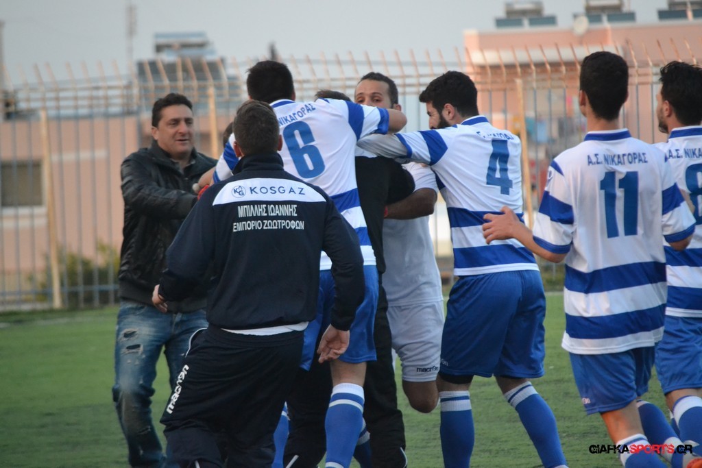 Στο 76′ ο Νικαγόρας έμεινε με 10 ποδοσφαιριστές  στο ματς,καθώς αποβλήθηκε με απευθείας κόκκινη κάρτα Στρατής.