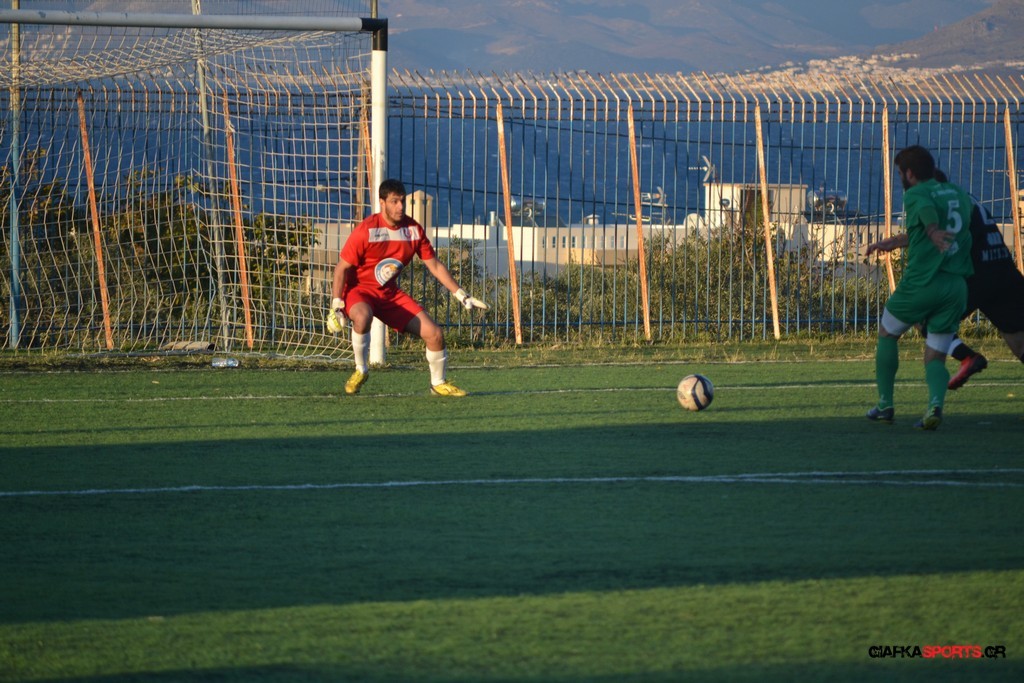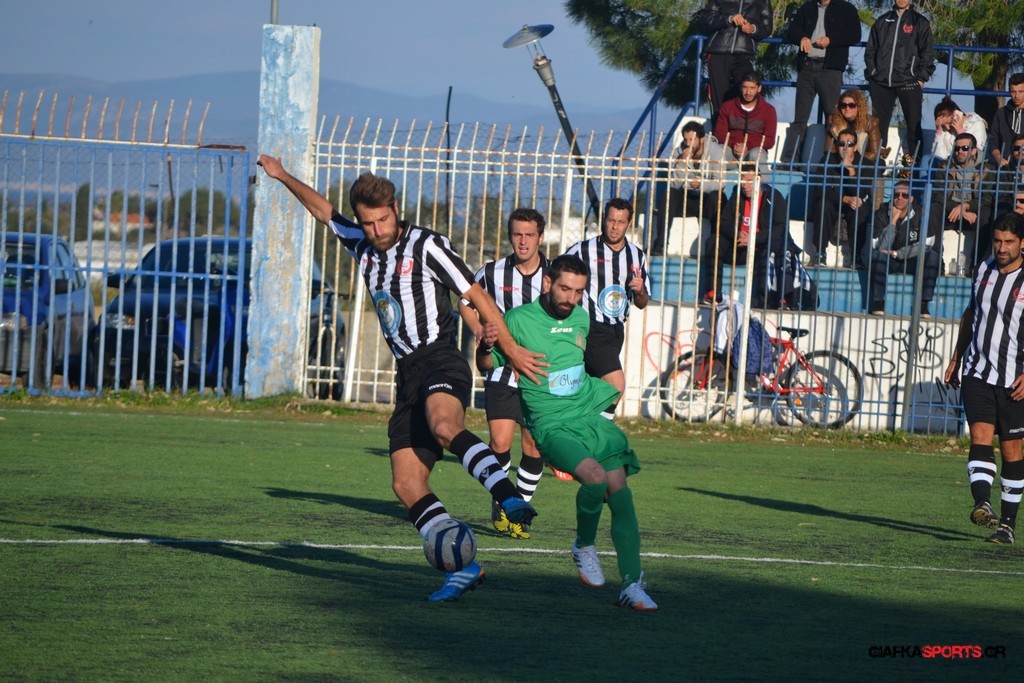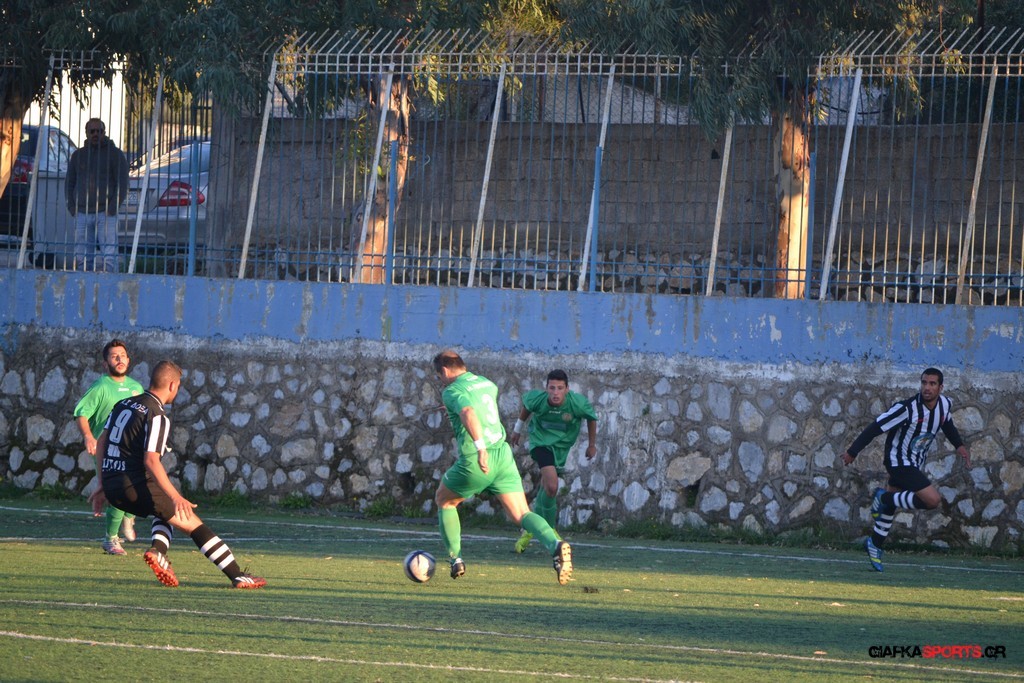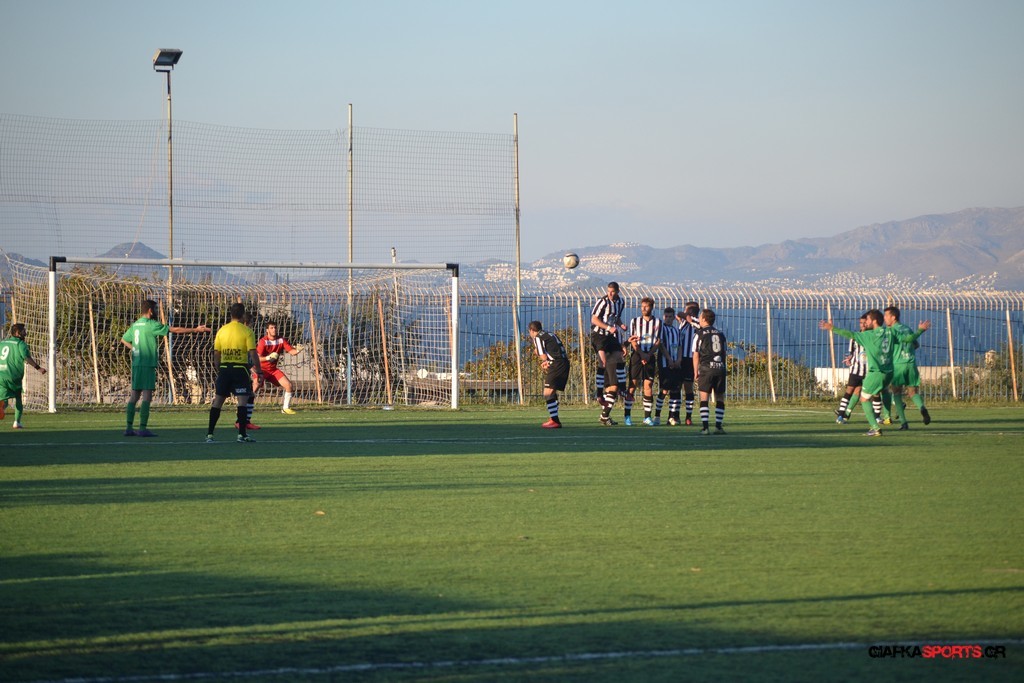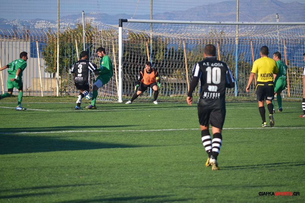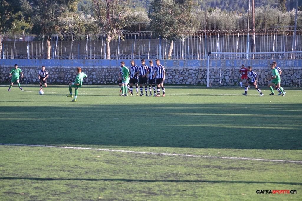 Μετά από αναγνωριστικό δεκάλεπτο στο ματς η Δόξα προσπάθησε να επιτεθεί από πλάγια για να διασπάσει την άμυνα της Αναγέννησης με τους “πράσινους” του Γιώργου Μηναϊδη να κλείνουν καλά τους διαδρόμους και να ψάχνουν στην κόντρα με τους Μάμμη, Βογιατζή και Εξήντα να πατήσουν την περιοχή του Μωραίτη. Στο 34′ λεπτό οι φιλοξενούμενοι κατάφεραν να ανοίξουν το σκορ όταν ο Χατζηπαναγιώτης σε κυνήγησε μια χαμένη μπαλιά απ’ τα αριστερά μπήκε στην περιοχή και κέρδισε το πέναλτι απ’ τους αμυντικούς της Δόξας με τον Πη να ευστοχεί απ’ την άσπρη βούλα για το 0-1. Η Αναγέννηση προσπάθησε να απαντήσει άμεσα αλλά το δυνατό σουτ του Γεροβασίλη λίγα λεπτά αργότερα έδιωξε εντυπωσιακά ο Μωραίτης σε κόρνερ.