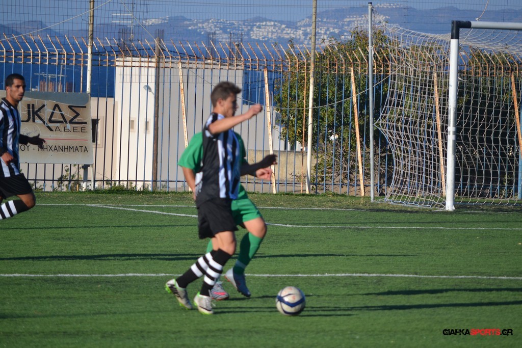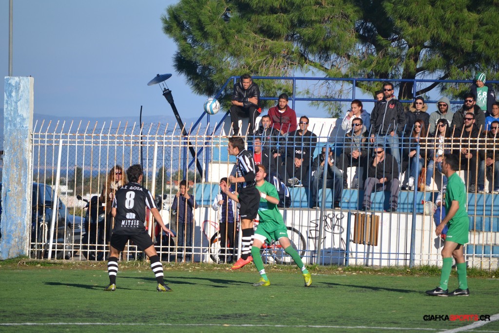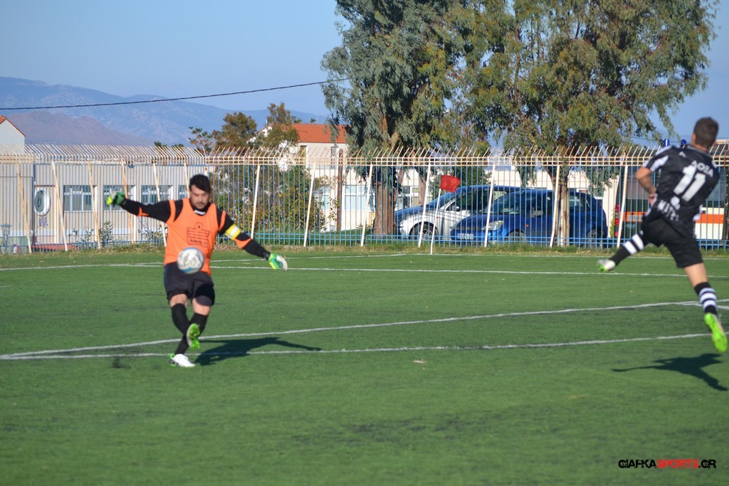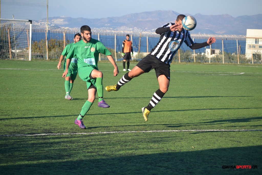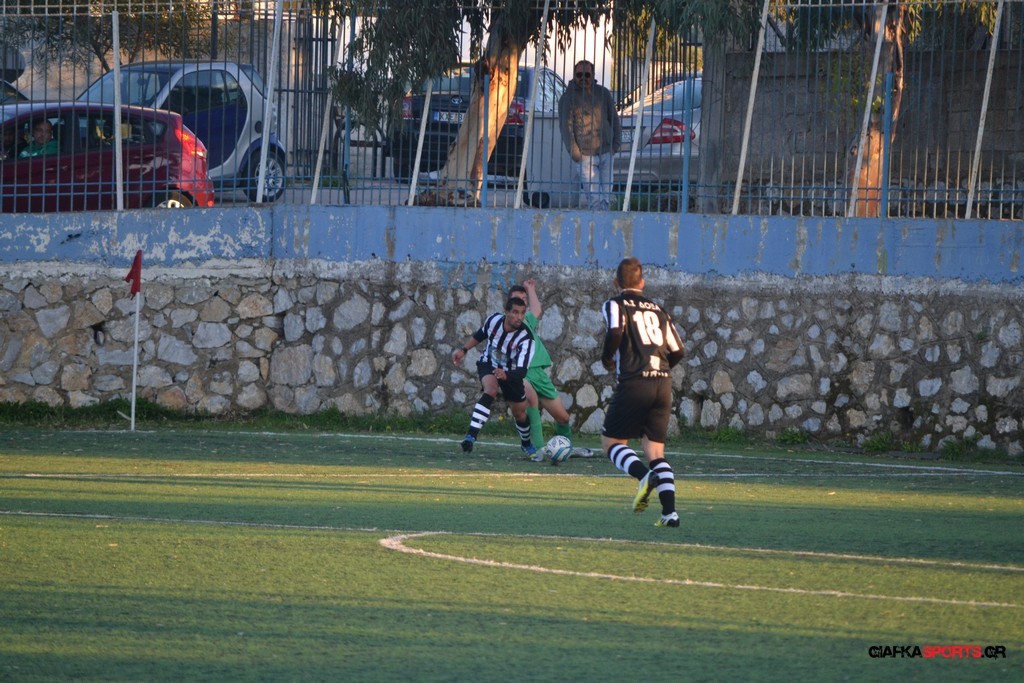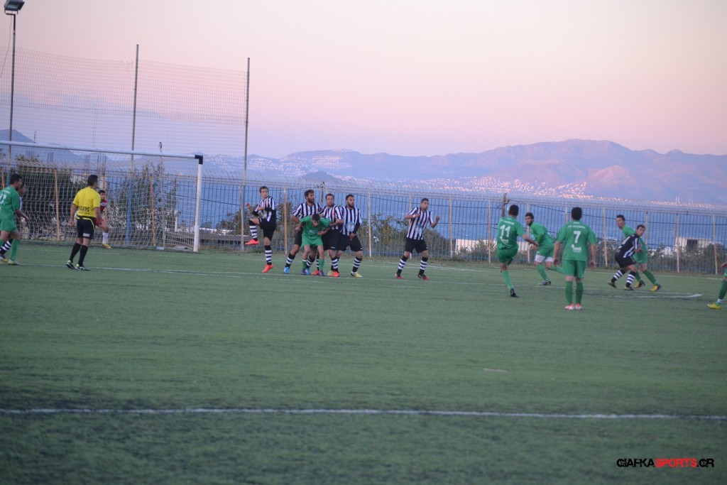 Μετά από αναγνωριστικό δεκάλεπτο στο ματς η Δόξα προσπάθησε να επιτεθεί από πλάγια για να διασπάσει την άμυνα της Αναγέννησης με τους “πράσινους” του Γιώργου Μηναϊδη να κλείνουν καλά τους διαδρόμους και να ψάχνουν στην κόντρα με τους Μάμμη, Βογιατζή και Εξήντα να πατήσουν την περιοχή του Μωραίτη. Στο 34′ λεπτό οι φιλοξενούμενοι κατάφεραν να ανοίξουν το σκορ όταν ο Χατζηπαναγιώτης σε κυνήγησε μια χαμένη μπαλιά απ’ τα αριστερά μπήκε στην περιοχή και κέρδισε το πέναλτι απ’ τους αμυντικούς της Δόξας με τον Πη να ευστοχεί απ’ την άσπρη βούλα για το 0-1. Η Αναγέννηση προσπάθησε να απαντήσει άμεσα αλλά το δυνατό σουτ του Γεροβασίλη λίγα λεπτά αργότερα έδιωξε εντυπωσιακά ο Μωραίτης σε κόρνερ.