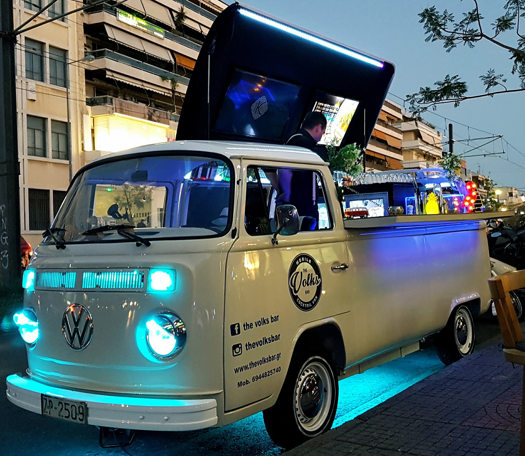 Εάν θέλεις να διαφημίσεις το προϊόν σου σ’ολόκληρη την πόλη, αν θες να γίνεις το επίκεντρο σε έναν συναυλιακό ή εκθεσιακό χώρο, εάν επιθυμείς να υποστηρίξεις ένα πάρτι, μια βραδιά ψυχαγωγίας, αν ψάχνεις να ξεχωρίσεις σε ένα συνέδριο ακόμη και στην παραλία, την αυλή, την πλατεία, το δικό μας mobile promo βαν, το The Volks Bar, γίνεται χαμαιλέοντας, φορά τα χρώματα της εταιρείας σου, φιλοξενεί bartenders και baristas, φωτίζεται, παίζει μουσική, δείχνει στις οθόνες και στα ράφια του το προϊόν σου, ταξιδεύει κι εμφανίζεται παντού.