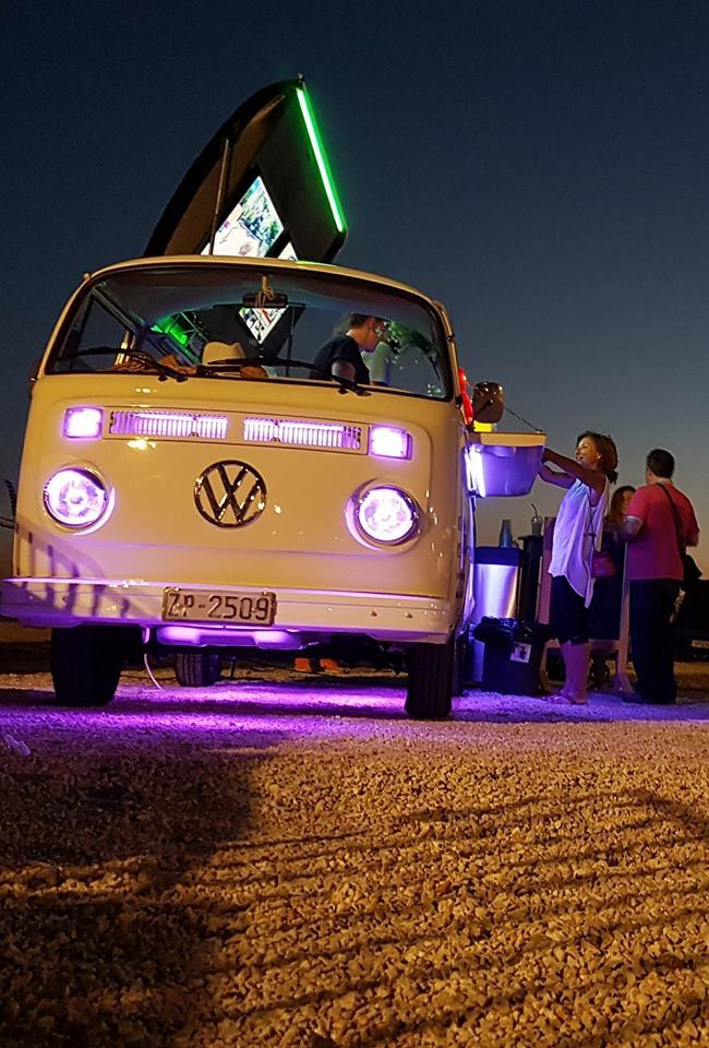 Είμαστε ρετρό εξ ορισμού, αεικίνητοι, ευπροσάρμοστοι, γοητευτικοί, κάνουμε πάντοτε καλή εντύπωση, έλκουμε την προσοχή του κόσμου και όσοι μας συναντούν αναφωνούν απλώς… «wow»! Διαφημίζουμε, προωθούμε, προσκαλούμε, πρωτοτυπούμε, ψυχαγωγούμε, κερνάμε μέσα από το VW βαν μας τις καλύτερες, εντυπωσιακότερες, πιο πετυχημένες high-end εκδηλώσεις. Για τα εταιρικά, κοινωνικά ή prive σας events, για εκδηλώσεις που μένουν αξέχαστες και για το μάρκετινγκ, τη διαφήμιση και προώθηση προϊόντων κι υπηρεσιών σας. Με προσεγμένη αισθητική και χωρίς περιορισμούς, με πλήρη εξοπλισμό κι αυτονομία, κινούμαστε ανάμεσά σας. Γιατίείμαστε λάτρεις του διαφορετικού, του ασυνήθιστου και της εύστοχης επικοινωνίας.
