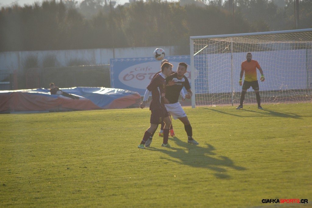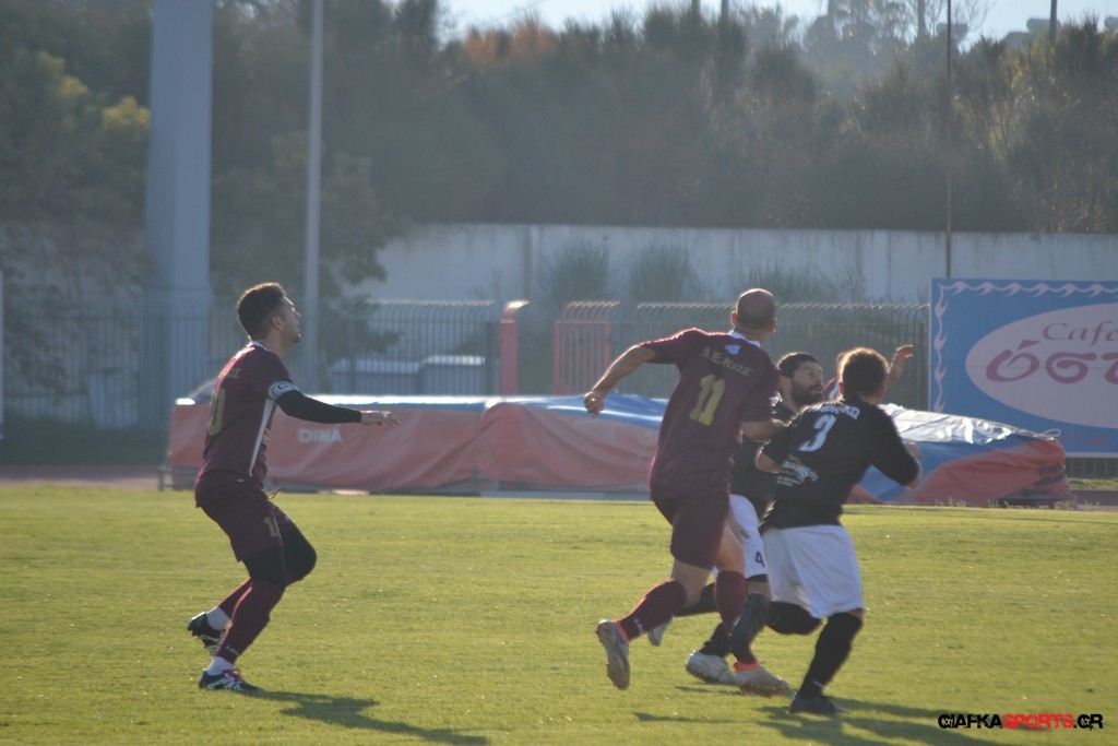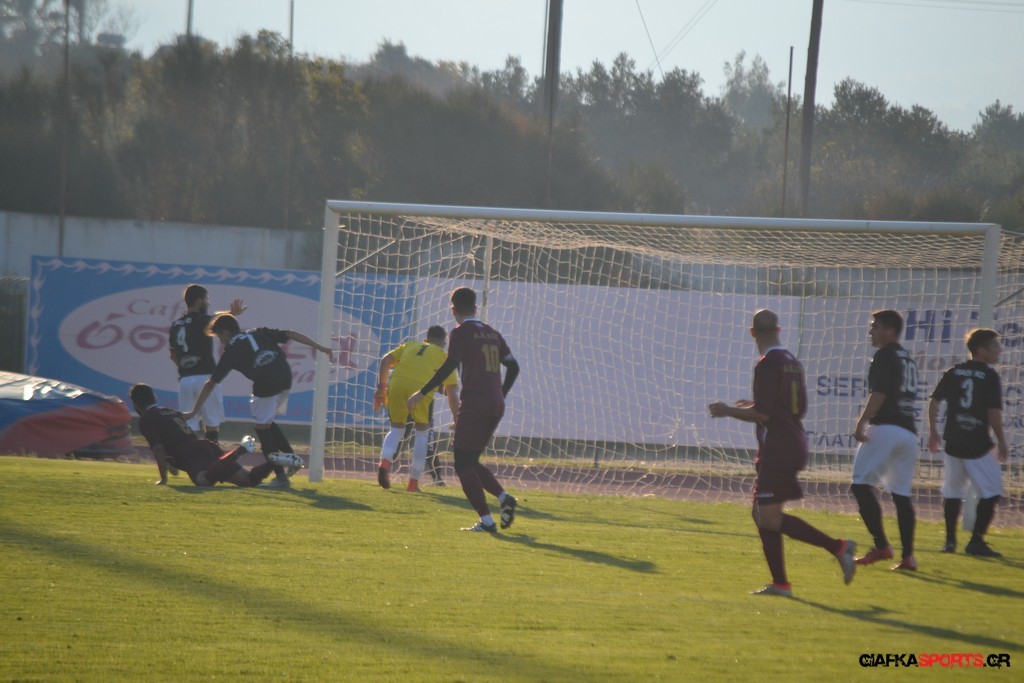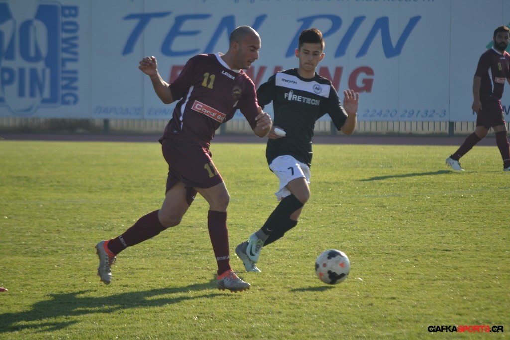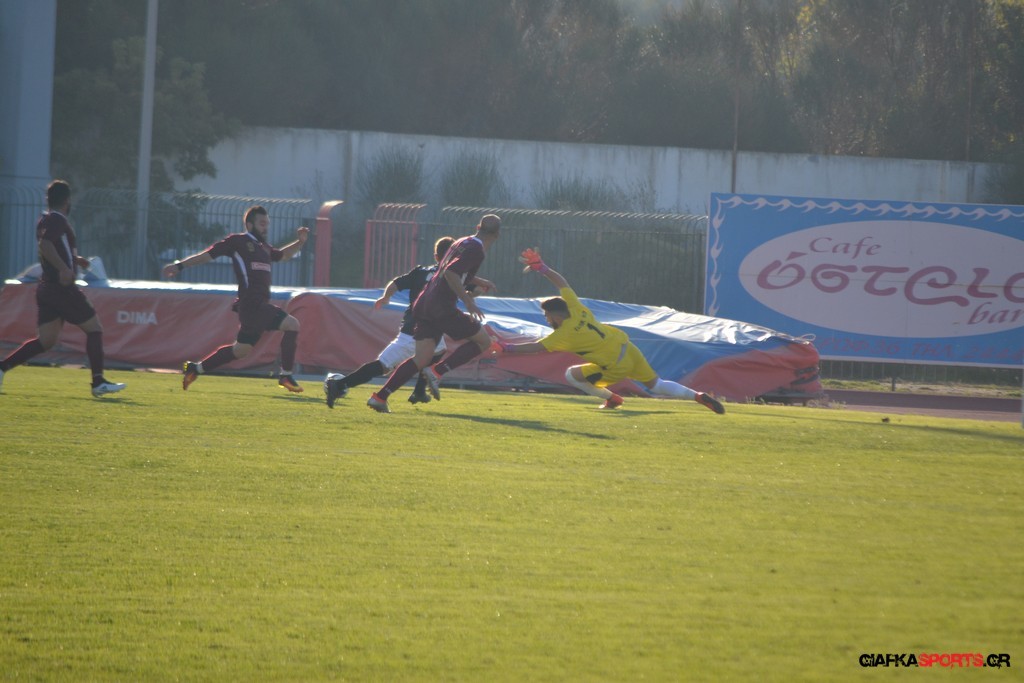 Οι «βυσσινί» στην συνέχεια πίεσαν για την ισοφάριση, και παρόλο που στο 33’ έχασαν με δεύτερη κίτρινη κάρτα το Νυστάζο, στο 35’ έχασαν σπουδαία ευκαιρία να κάνουν το 1-1 όταν μετά από παράλληλη πάσα του Παπανικολάου ο Χατζηφούντας έκανε την προβολή με την μπάλα να περνά ελάχιστα άουτ.