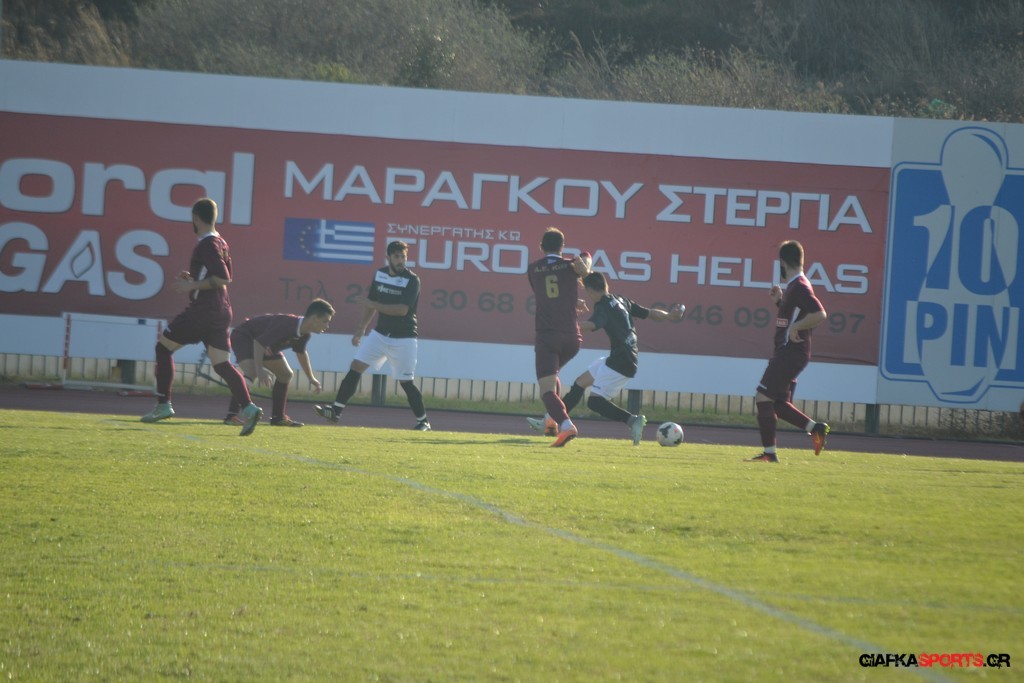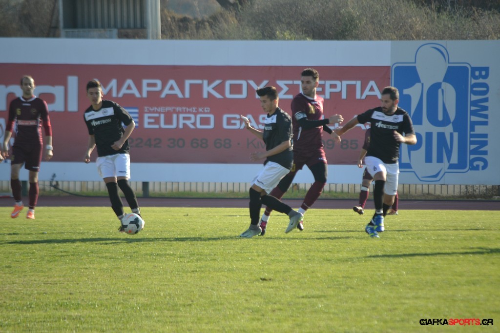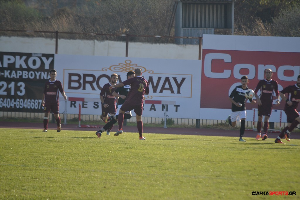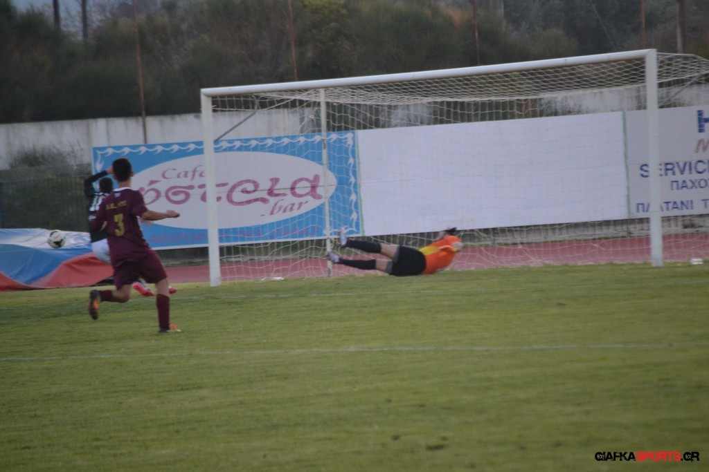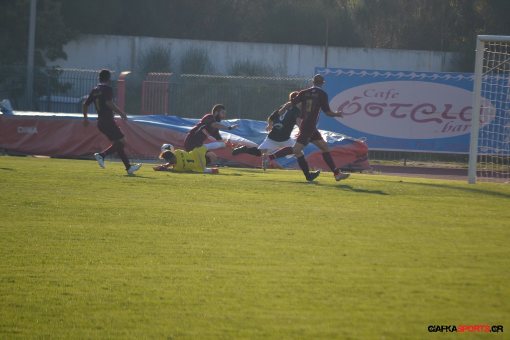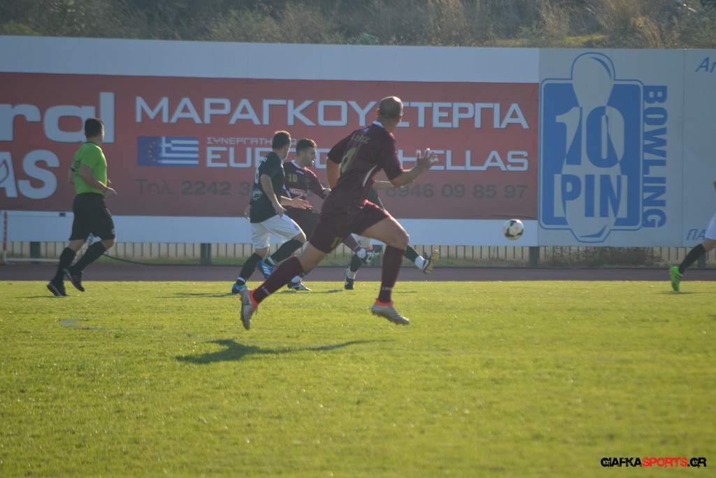 Οι «βυσσινί» στην συνέχεια πίεσαν για την ισοφάριση, και παρόλο που στο 33’ έχασαν με δεύτερη κίτρινη κάρτα το Νυστάζο, στο 35’ έχασαν σπουδαία ευκαιρία να κάνουν το 1-1 όταν μετά από παράλληλη πάσα του Παπανικολάου ο Χατζηφούντας έκανε την προβολή με την μπάλα να περνά ελάχιστα άουτ.