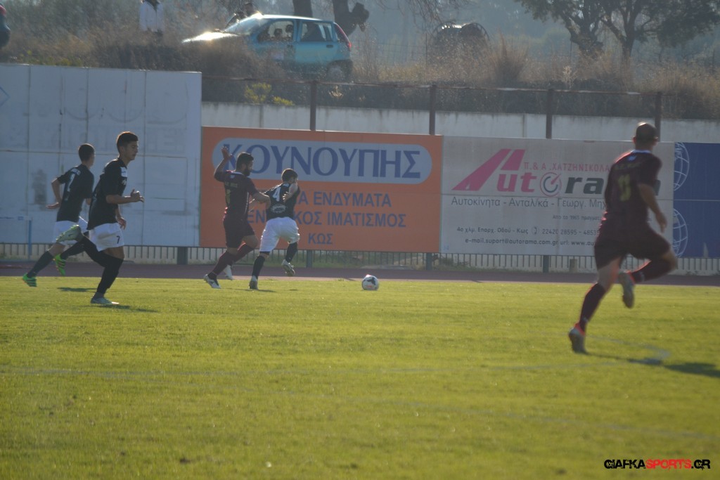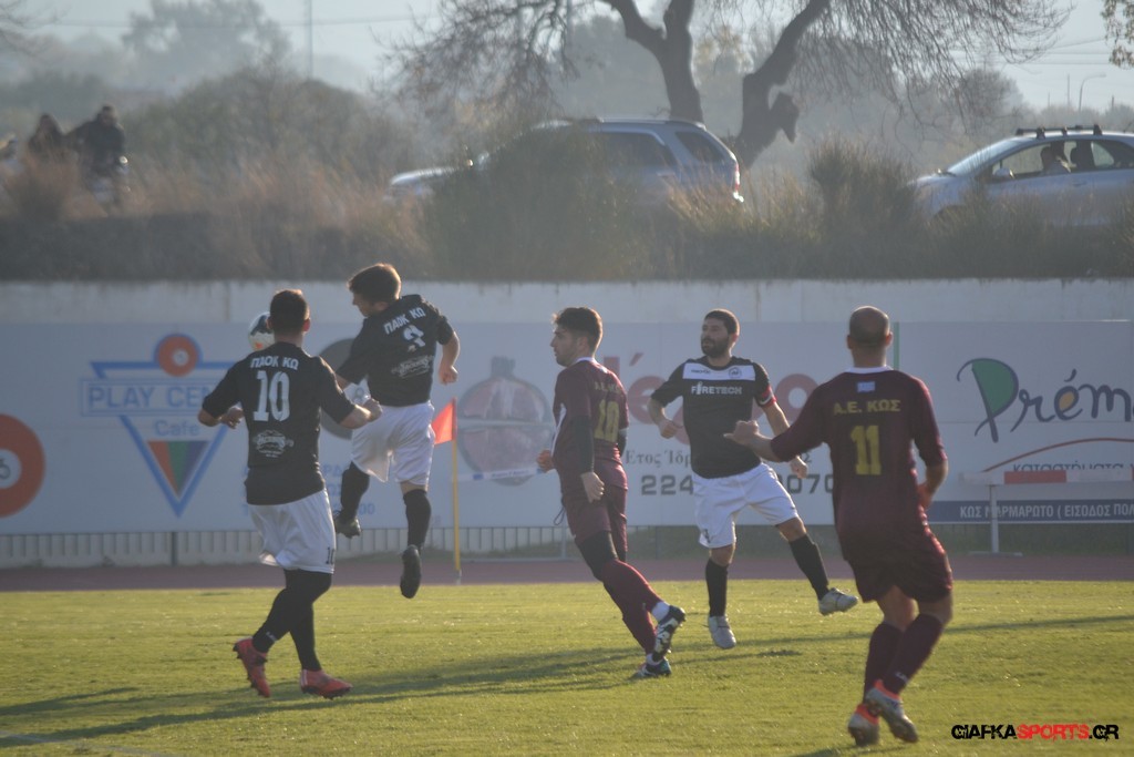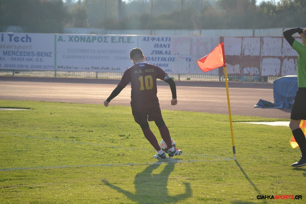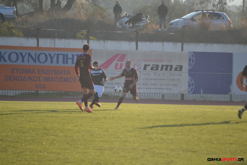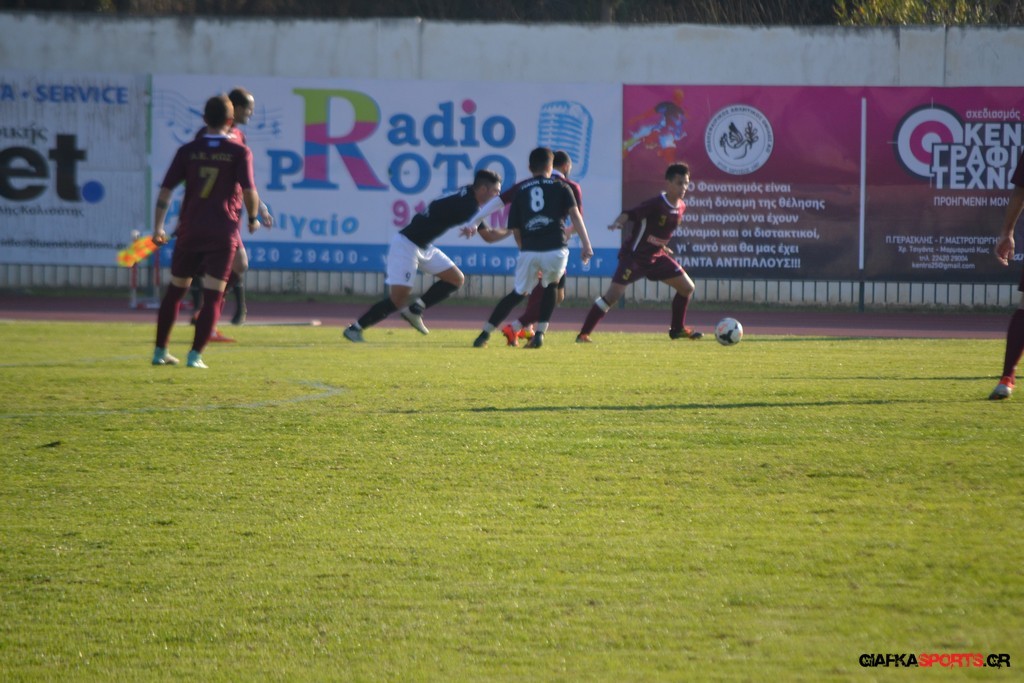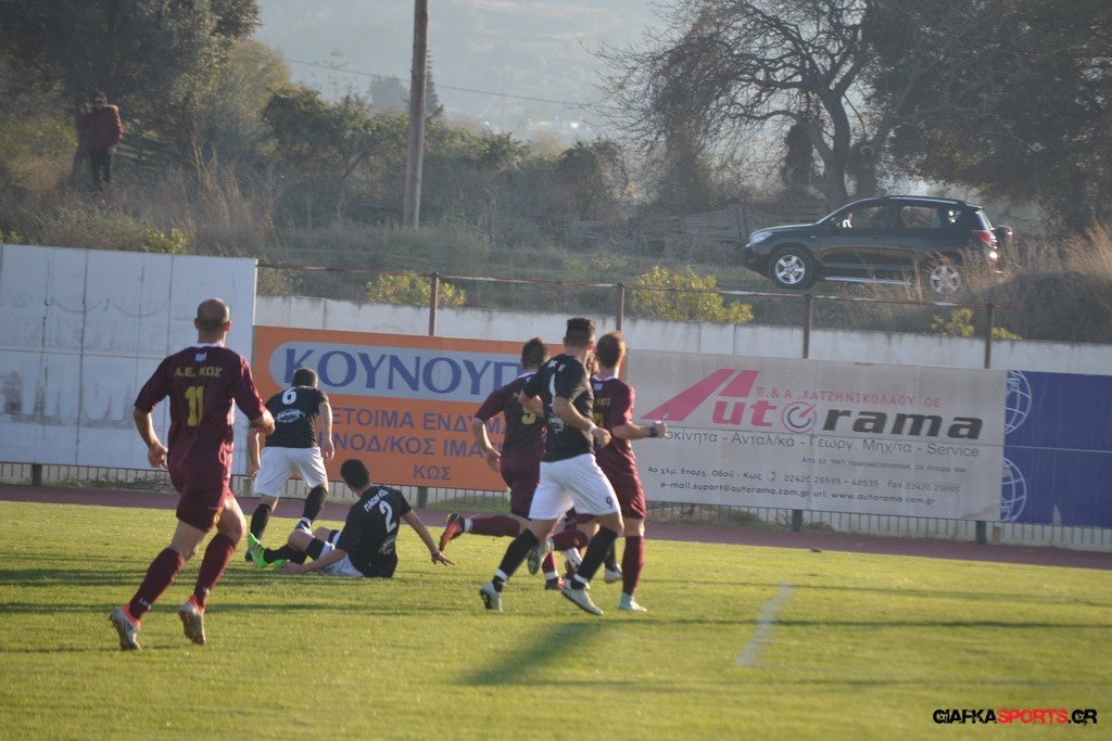 Η Α.Ε Κως πίεζε γύρω απ’ την περιοχή του Κονταντώνη και είχε δοκάρι σε σουτ του Ζαίμι στο 67’ ωστόσο δεν μπόρεσε να φτάσει στο γκολ και λίγο έλειψε να δεχτεί και δεύτερο τέρμα όταν στο 86’ ο Γκούτογλου απομάκρυνε σε ένα σημείο που βρισκόταν ο Κοτσάκι Ε. αλλά ο τερματοφύλακας της Α.Ε Κω πρόλαβε και μάζεψε πριν η μπάλα περάσει την γραμμή και το 1-1 έμεινε μέχρι το φινάλε.