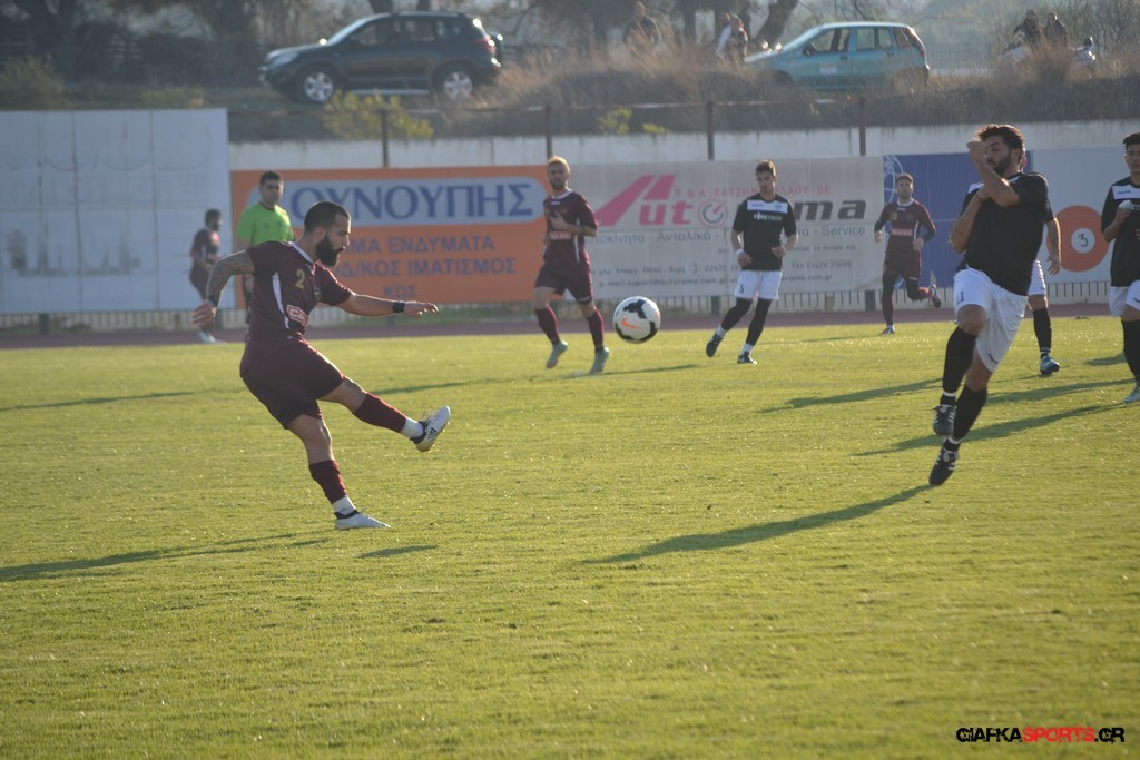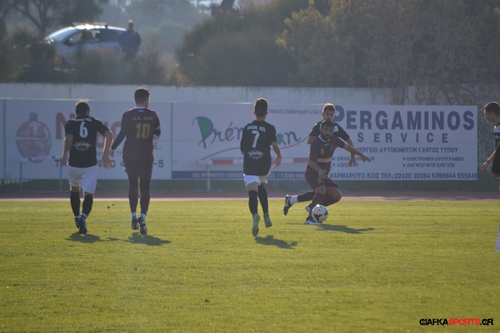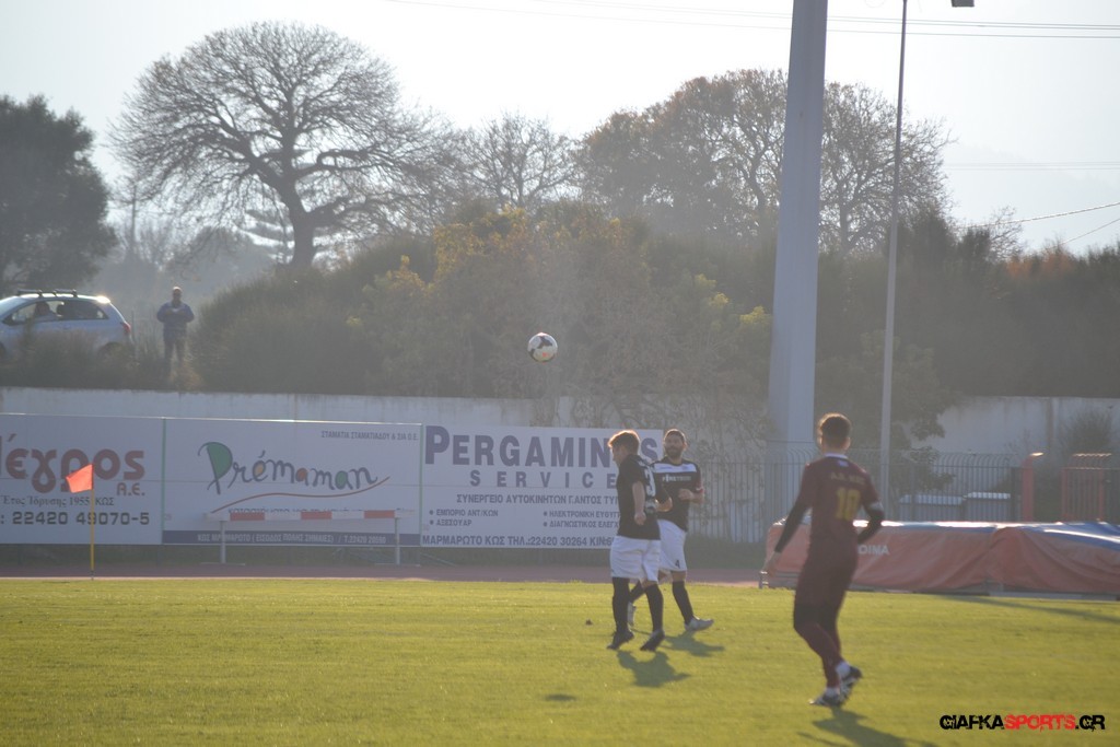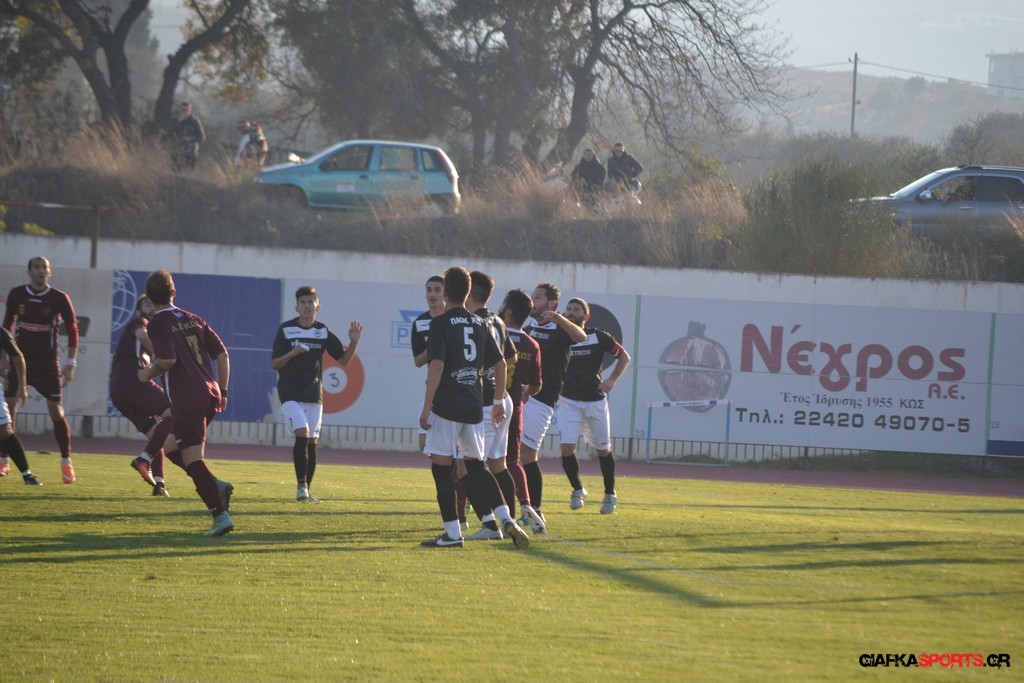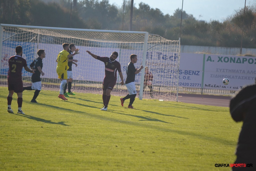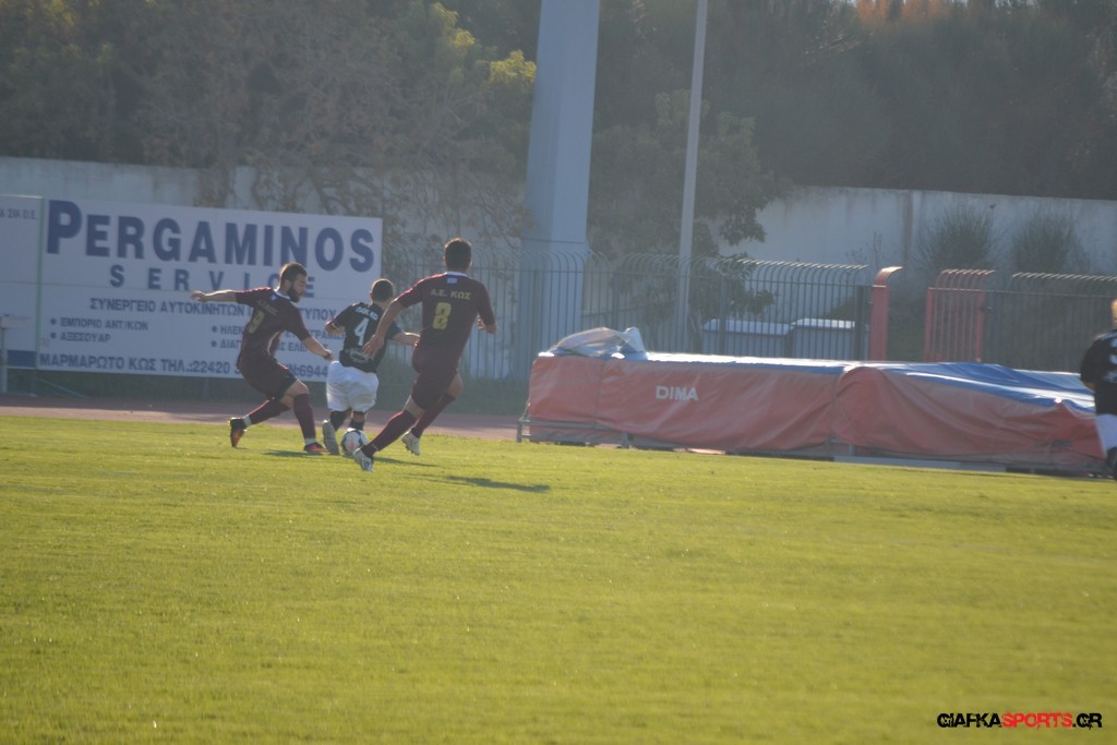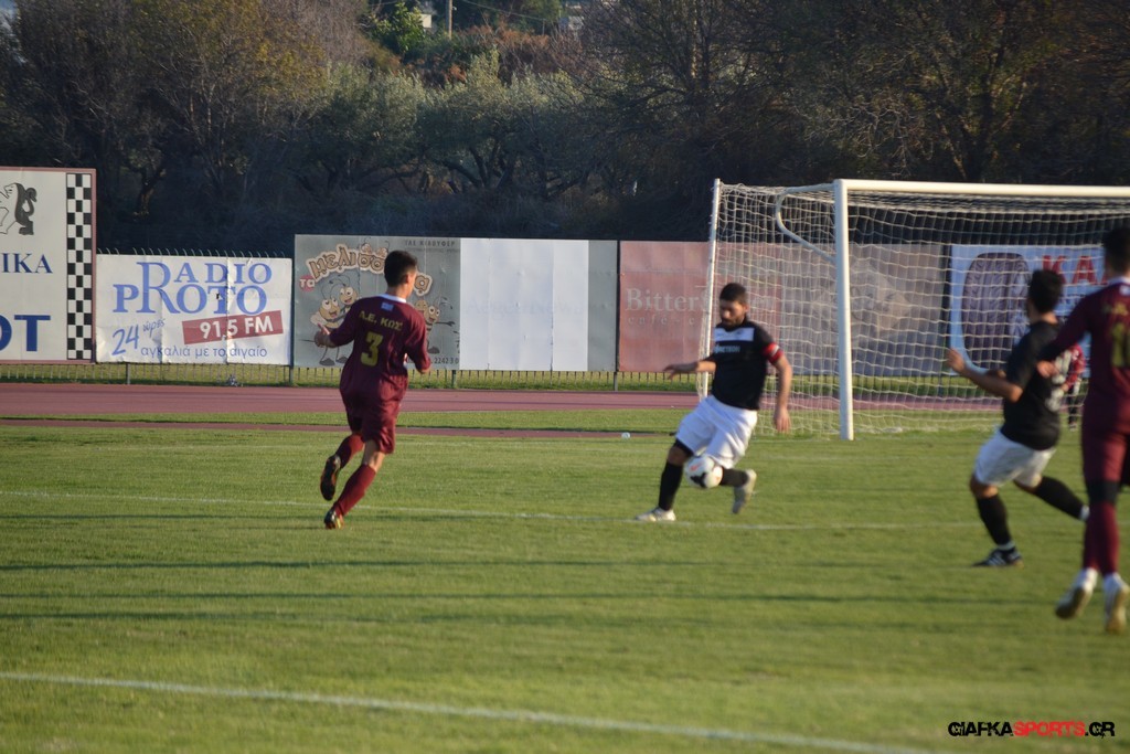 Η Α.Ε Κως πίεζε γύρω απ’ την περιοχή του Κονταντώνη και είχε δοκάρι σε σουτ του Ζαίμι στο 67’ ωστόσο δεν μπόρεσε να φτάσει στο γκολ και λίγο έλειψε να δεχτεί και δεύτερο τέρμα όταν στο 86’ ο Γκούτογλου απομάκρυνε σε ένα σημείο που βρισκόταν ο Κοτσάκι Ε. αλλά ο τερματοφύλακας της Α.Ε Κω πρόλαβε και μάζεψε πριν η μπάλα περάσει την γραμμή και το 1-1 έμεινε μέχρι το φινάλε.