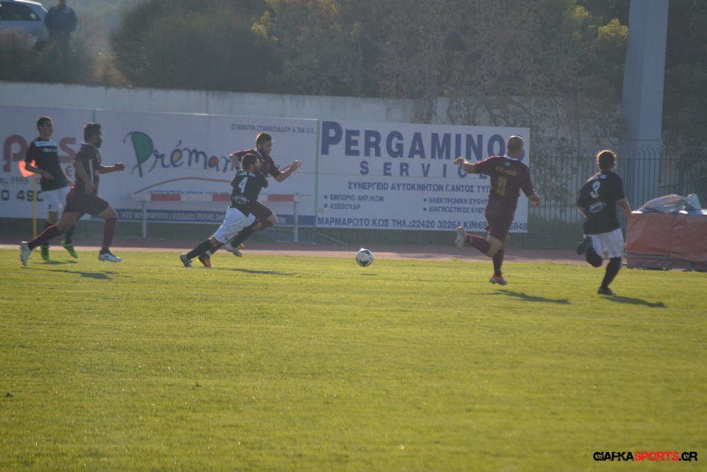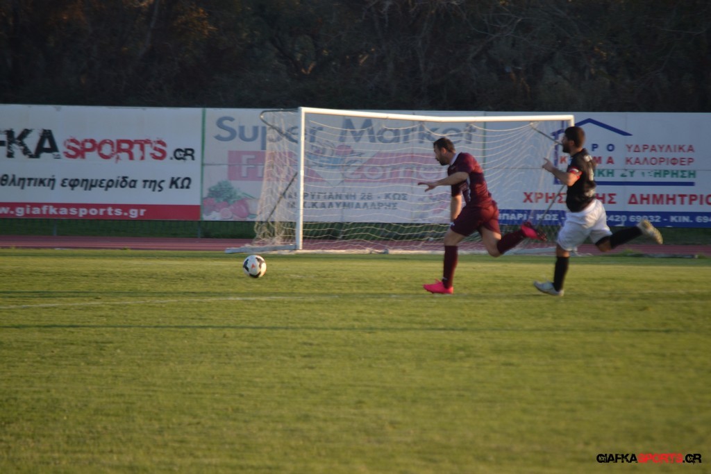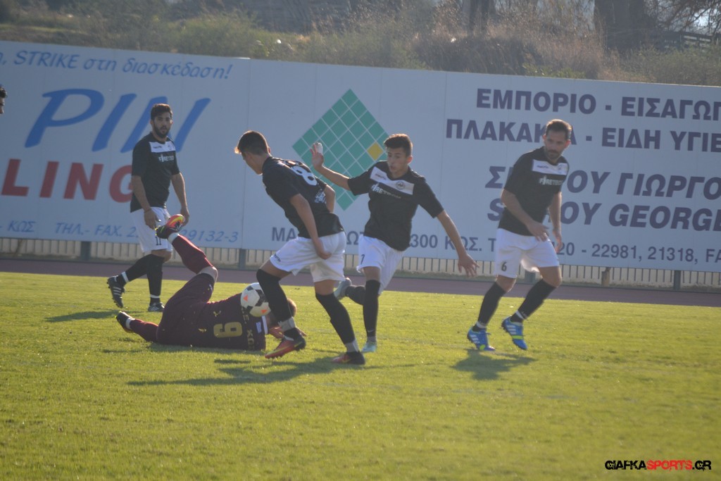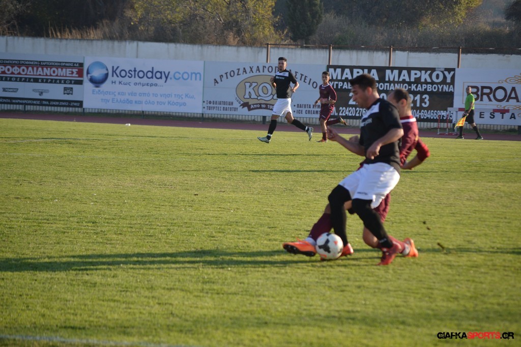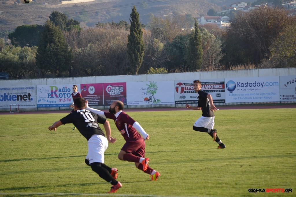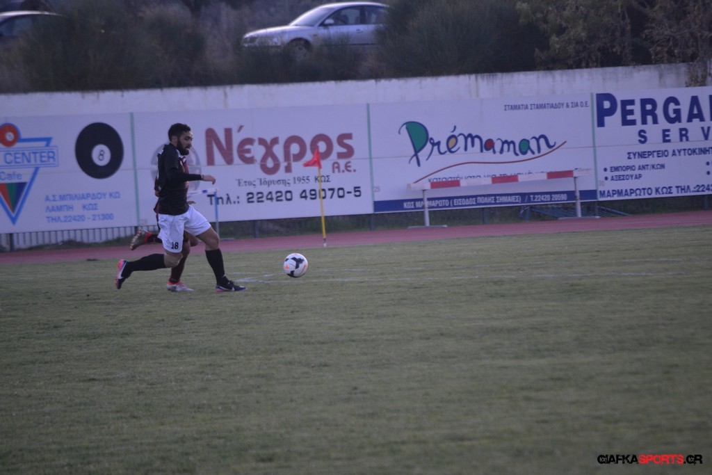 Η Α.Ε Κως πίεζε γύρω απ’ την περιοχή του Κονταντώνη και είχε δοκάρι σε σουτ του Ζαίμι στο 67’ ωστόσο δεν μπόρεσε να φτάσει στο γκολ και λίγο έλειψε να δεχτεί και δεύτερο τέρμα όταν στο 86’ ο Γκούτογλου απομάκρυνε σε ένα σημείο που βρισκόταν ο Κοτσάκι Ε. αλλά ο τερματοφύλακας της Α.Ε Κω πρόλαβε και μάζεψε πριν η μπάλα περάσει την γραμμή και το 1-1 έμεινε μέχρι το φινάλε.