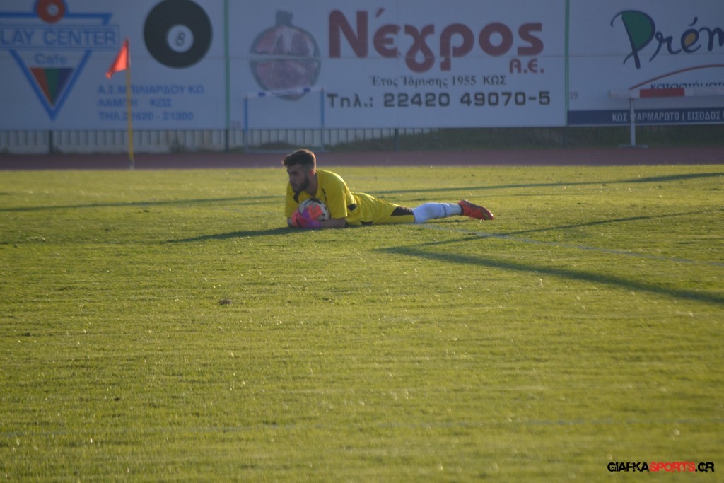 Εξαιρετικός στα αμυντικά του καθήκοντα ο Παναγιώτης Κατσιούλης. Ο μικρός του ΠΑΟΚ Κω ήταν πρώτος σε όλες τις μονομαχίες και βοήθησε την ομάδα του να πάρει το ισόπαλο αποτέλεσμα.