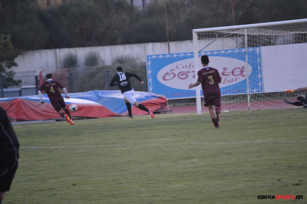 Με το ξεκίνημα του δευτέρου ημιχρόνου η Α.Ε Κως μπήκε με διάθεση να φέρει το ματς στα ίσια και το κατάφερε στο 59’ όταν μετά από τράβηγμα στον Κιολέ μέσα στην περιοχή ο Πατσιαούρας έδειξε το σημείο του πέναλτι και ο Παπανικολάου έκανε το 1-1.