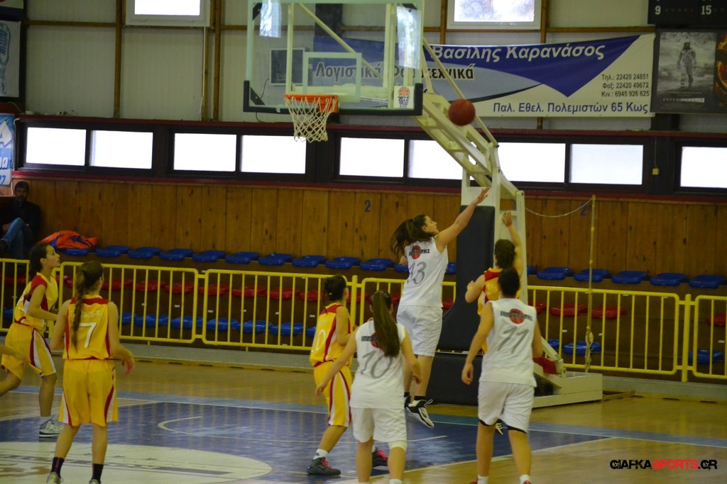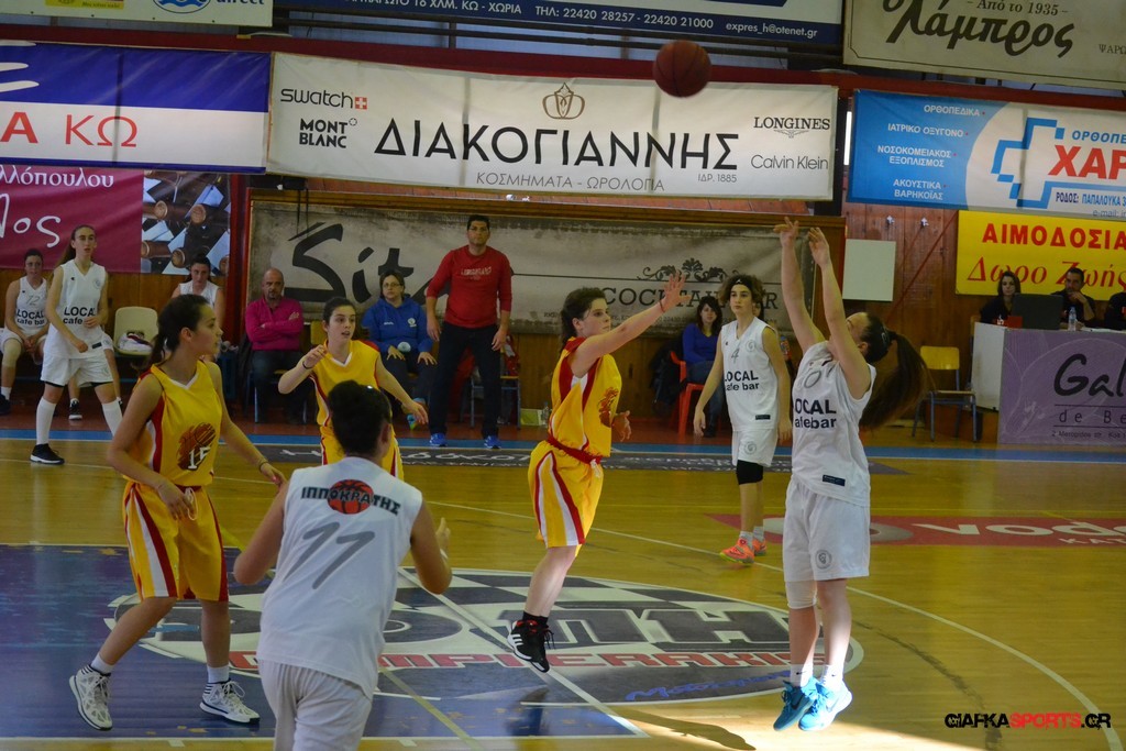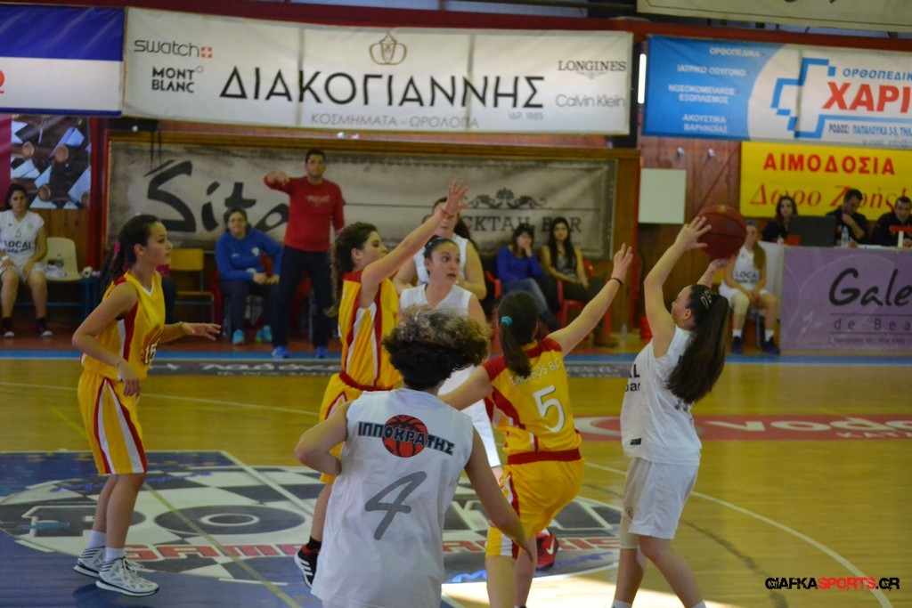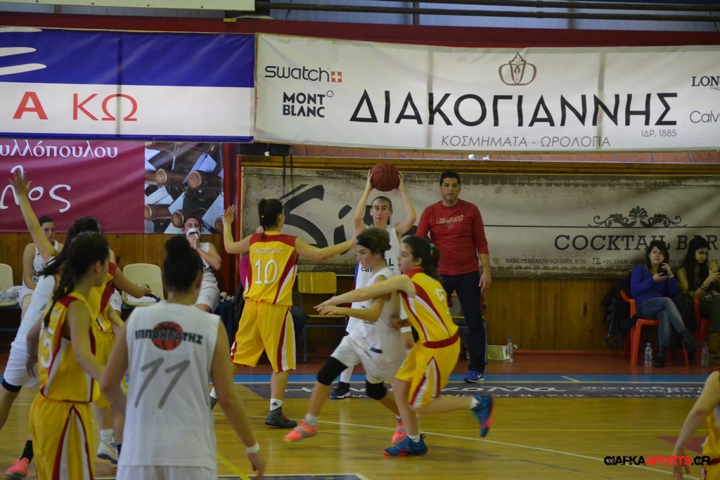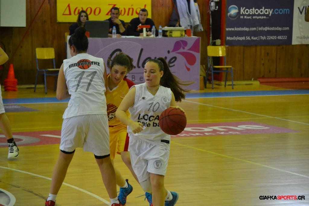 Την ευκαιρία να διεκδικήσει τον τίτλο στις κορασίδες θα έχει ο Ιπποκράτης που επικράτησε με 43-31 του Ιάλυσου και προκρίθηκε στον μεγάλο τελικό όπου θα θα αντιμετωπίσει την ομάδα του Διαγόρα. Μετά το πρώτο πεντάλεπτο ουσιαστικά στο ματς η ομάδα του Σωτήρη Τσακαλίδη βρήκε τα πατήματα της και κατάφερε με καλή κυκλοφορία και αιχμές του δόρατος τις Ντούλα (τραυματίστηκε στο τέλος και είναι αμφίβολη η συμμετοχή της για αύριο) και Νικηταρά να ανεβάσουν την διαφορά στο τέλος του τρίτου δεκαλέπτου στο 34-20 και να φτάσουν τελικά στην εύκολη νίκη με 43-31.