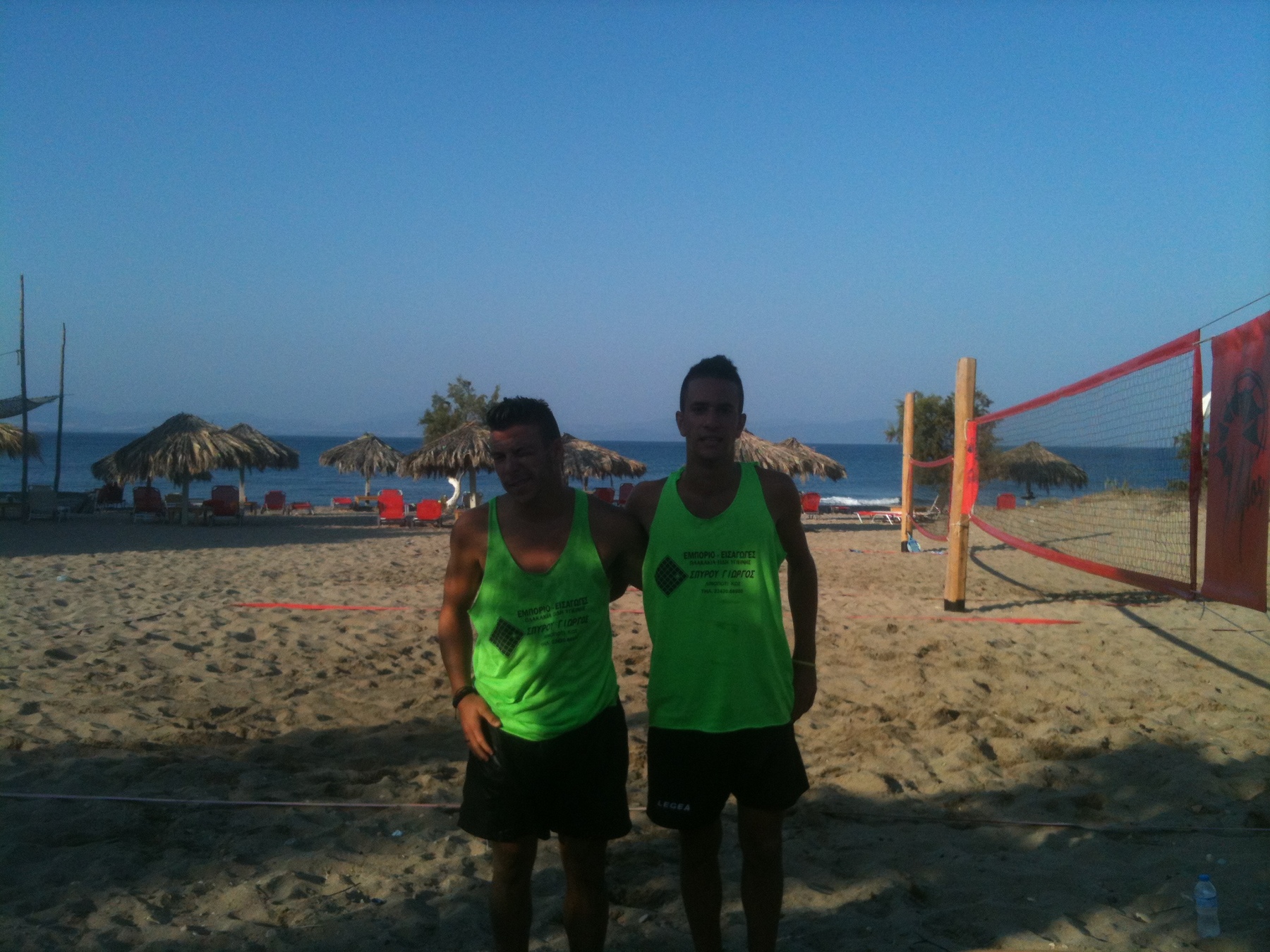 Ο Δημήτρης Πης και ο Παναγιώτης Χατζηχριστοφής είναι από χτες οι πρωταθλητές Δωδεκανήσου για το 2013 στο Beach Soccer Volleyball αφού στον όμιλο με τις άλλες τρεις ομάδες που βγήκαν πρώτες σε Κω και Ρόδο τερμάτισαν πρώτοι.