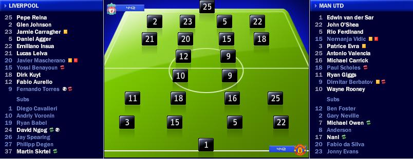 Μεγάλη νικήτρια στο ντέρμπι με την Μάντσεστερ Γ. ήταν η Λίβερπουλ με γολ του Φερνάντο Τόρες στο 65′ και του N’κογκ στο 96′,η Λίβερπουλ ενώ δείχνει ότι είναι ντεφορμέ καταφέρνει και κερδίζει την Μάντσεστερ Γ. μετά και τις 2 περσινές νίκες της.