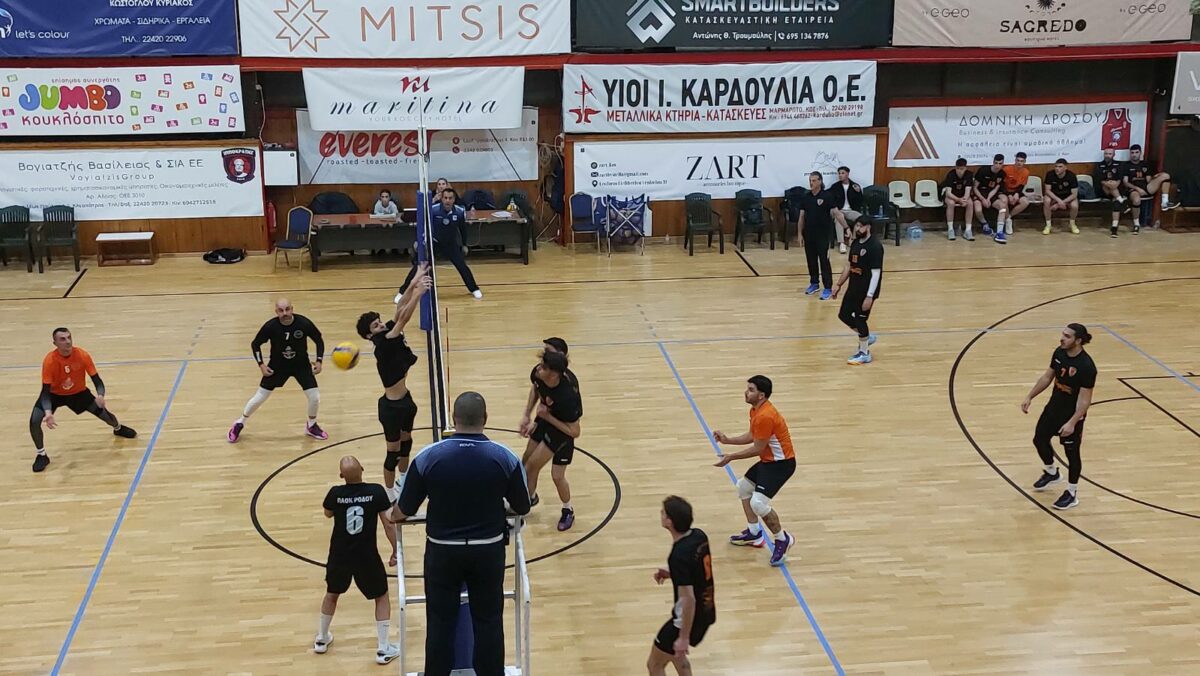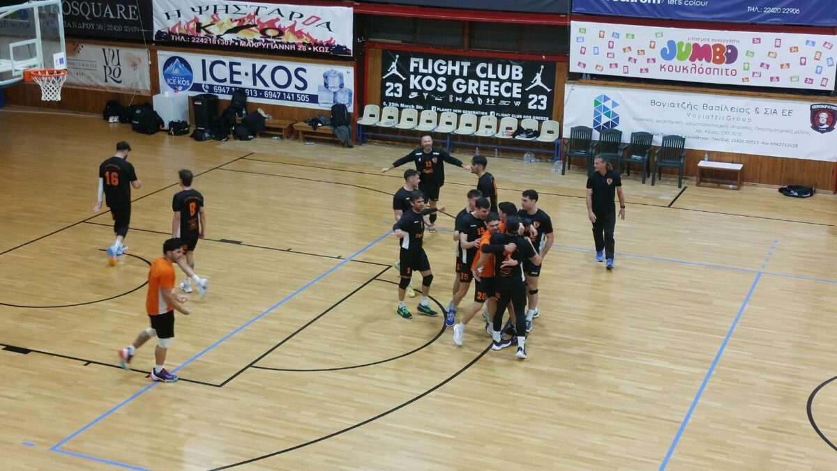 Τεράστια νίκη πέτυχε ο Α.Ο. Αθλοπαιδιών Κω στο μεγάλο ντέρμπι του ανδρικού πρωταθλήματος, επικρατώντας με 3-1 σετ του Π.Α.Ο.Κ. Ρόδου στο κλειστό γυμναστήριο «Δ. Παππούλης». Η ομάδα του Αλκιβιάδη Χατζηνικολάου έδειξε χαρακτήρα στα κρίσιμα σημεία, πήρε το πολύτιμο «τρίποντο» και ανέβηκε μόνη στην κορυφή της βαθμολογίας.