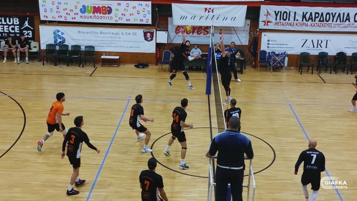 Τεράστια νίκη πέτυχε ο Α.Ο. Αθλοπαιδιών Κω στο μεγάλο ντέρμπι του ανδρικού πρωταθλήματος, επικρατώντας με 3-1 σετ του Π.Α.Ο.Κ. Ρόδου στο κλειστό γυμναστήριο «Δ. Παππούλης». Η ομάδα του Αλκιβιάδη Χατζηνικολάου έδειξε χαρακτήρα στα κρίσιμα σημεία, πήρε το πολύτιμο «τρίποντο» και ανέβηκε μόνη στην κορυφή της βαθμολογίας.