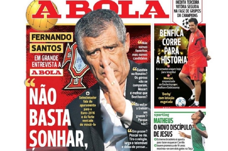 Ο Πορτογάλος τεχνικός που κατάφερε να οδηγήσει την Εθνική ομάδα της χώρας του στα τελικά της Γαλλίας, ως πρώτη στο 9ο όμιλο των προκριματικών με επτά συνεχόμενες νίκες και μόλις μια ήττα στην πρεμιέρα από την Αλβανία, ζήτησε απ όλους να πιστέψουν στο όνειρο και να μην ονειρεύονται απλώς την διεκδίκηση ενός μεγάλου τροπαίου.
