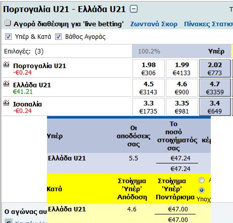 Πορτογαλία(U21)-Ελλάδα(U21) Trading