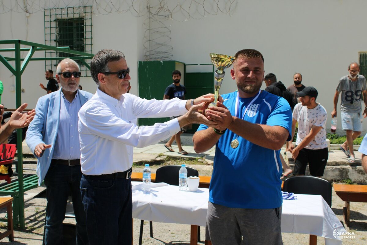 Το παρών έδωσε ο αντιπεριφερειάρχης, Μπάμπης Ναβροζίδης που τα τελευταία χρόνια στηρίζει αυτή την προσπάθεια και ως επιχειρηματίας ενώ μετά το τέλος της αναμέτρησης ακολούθησαν οι απονομές με τον διευθυντή των φυλακών, Γιώργο Δέμο να κάνει την απονομή στη νικήτρια ομάδα.