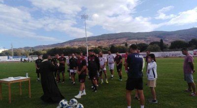 Ο αγιασμός τελέστηκε από τον Πάτερ Αναστάσιο, που ευχήθηκε σε όλους τους παράγοντες και τους ποδοσφαιριστές της ομάδος να είναι γεροί και δυνατοί .