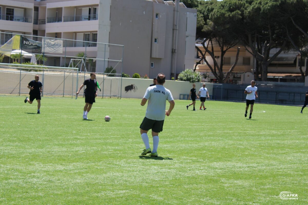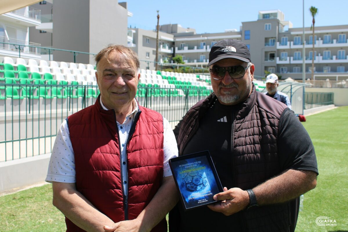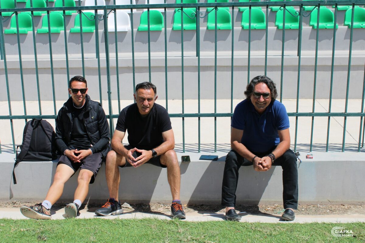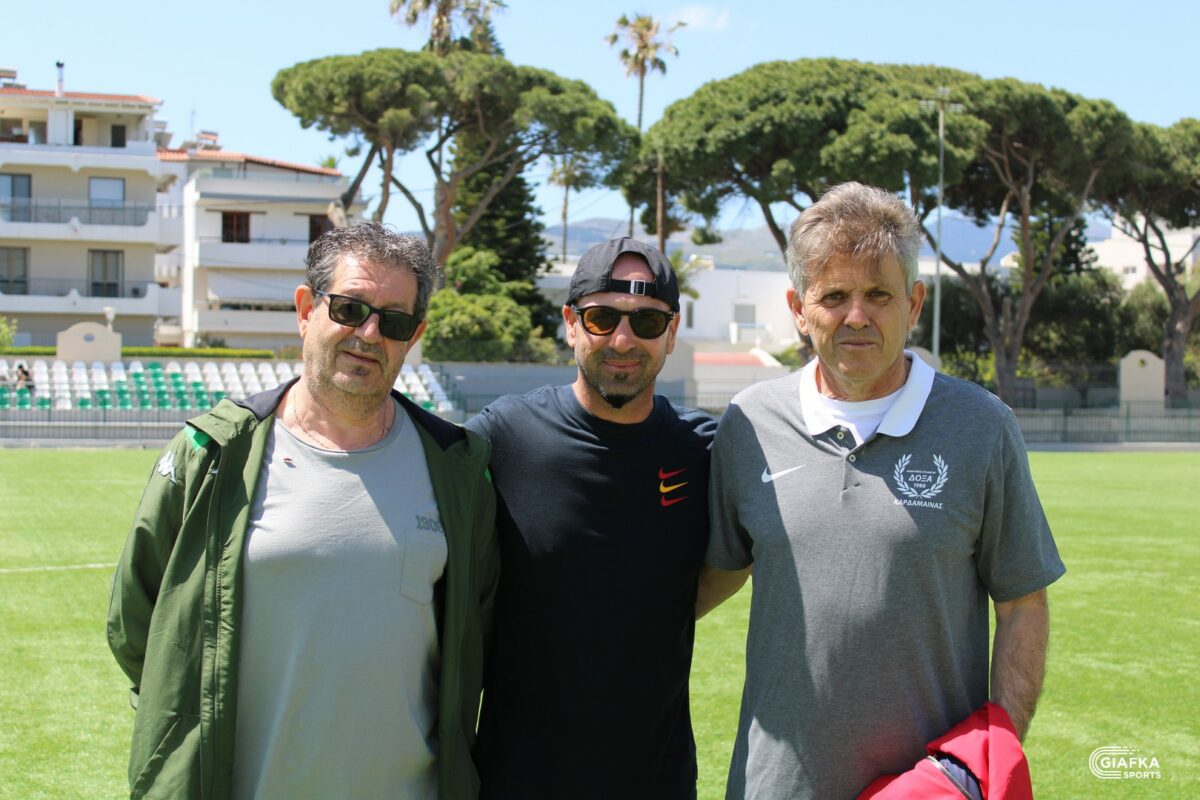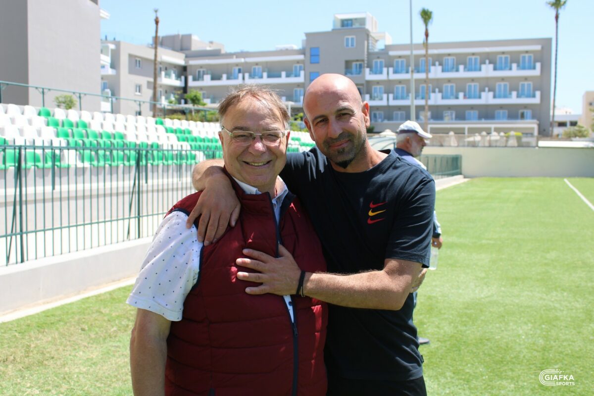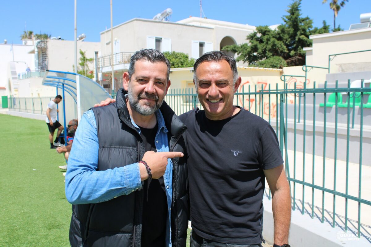Στο περιθώριο του φιλικού παλιοί συμπαίκτες και φίλοι είχαν την ευκαιρία να τα πουν και να ευχηθούν για τις ημέρες του Πάσχα.
