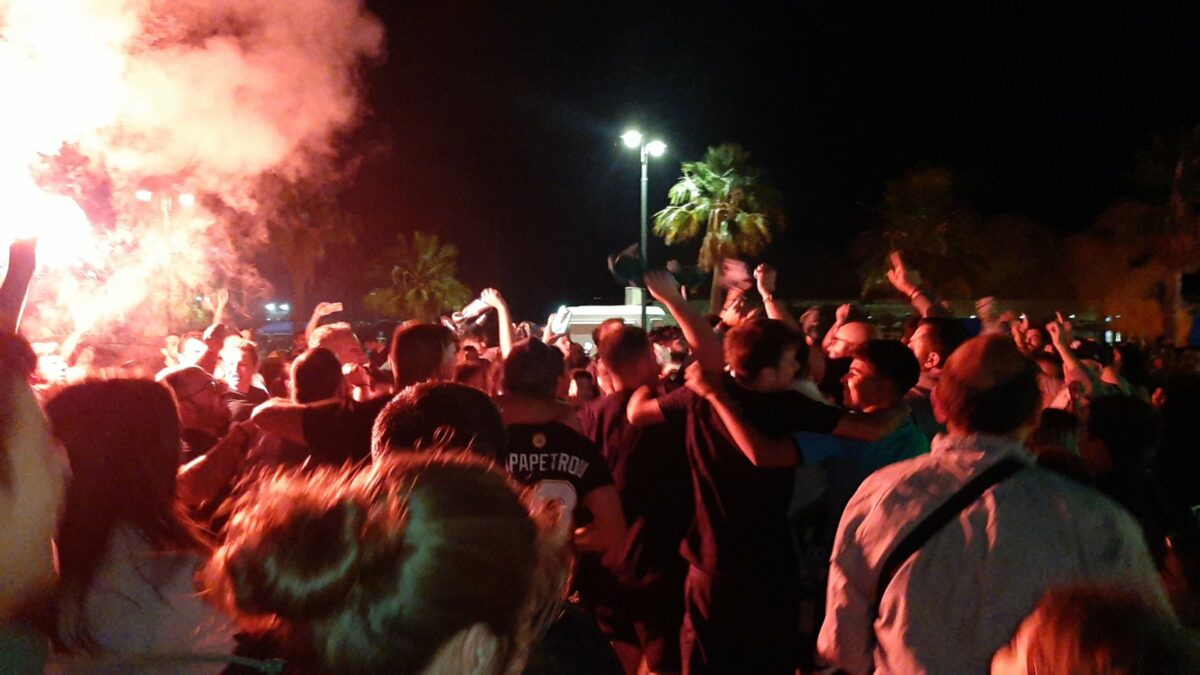 Πράσινη τρέλα και στην Κω αφού οι φίλοι του Παναθηναϊκό με μια μεγάλη πορεία έφτασαν στα δελφίνια όπου με συνθήματα και καπνογόνα πανηγύρισαν αυτήν την σπουδαία νίκη.
