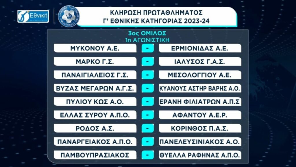 Με την Εράνη Φιλιατρών εντός έδρας θα ξεκινήσει τις επίσημες υποχρεώσεις του στην Γ’ Εθνική ο Α.Ο Πυλίου που βρίσκεται τελικά στο 3ο όμιλο.