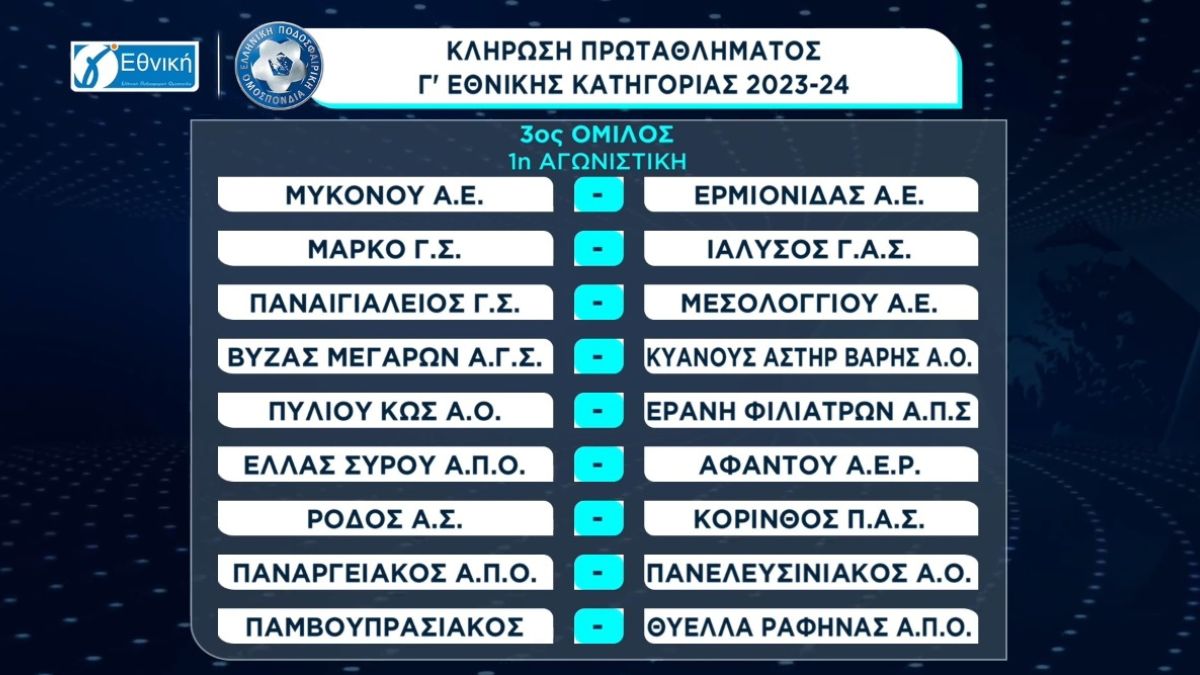 Στην Σύρο απέναντι στην Ελλάς θα ξεκινήσει η ΑΕΡΑ,  η Ρόδος θα υποδεχθεί την Κόρινθο ενώ ο Ιάλυσος θα παίξει εντός έδρας με το Μαρκό.