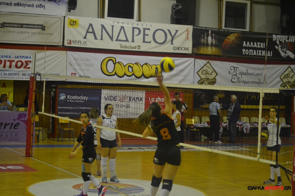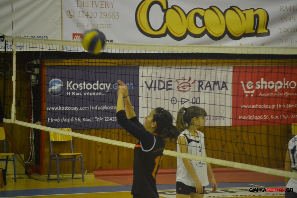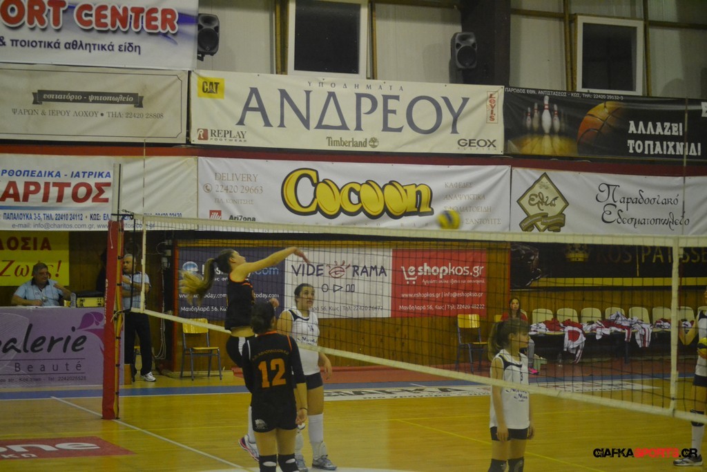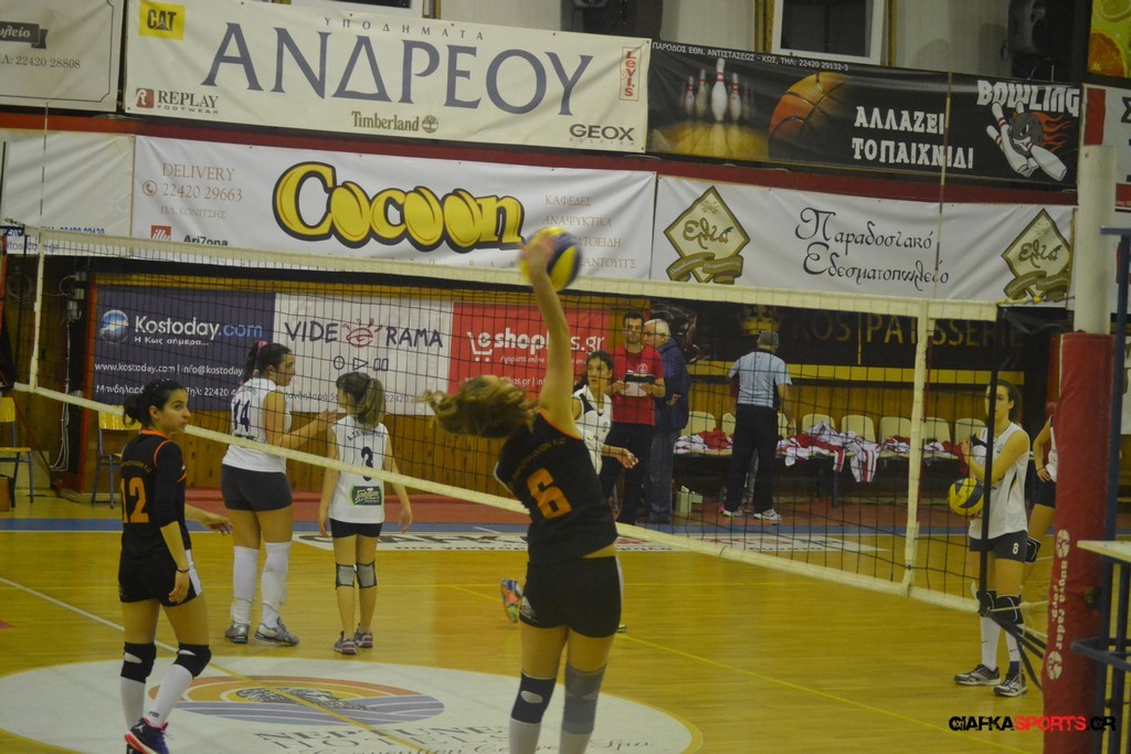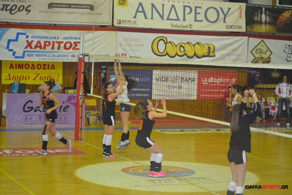 Στους τελικούς της περιφέρειας προκρίθηκαν οι κορασίδες του Α.Ο Αθλοπαιδιών Κω οι οποίες στον αγώνα κόντρα στην ομάδα της Σύρου (Α.Σ.Ε. Νεωρίου Σύρου) ήταν ανώτερες και με καθαρό μυαλό κατάφεραν να επικρατήσουν με 3-0 σετ (25-19,25-20,25-16) και να περάσουν τους τελικούς.