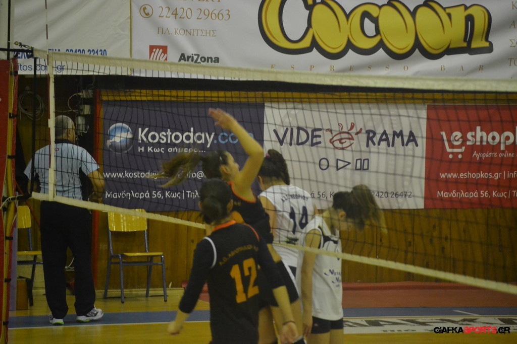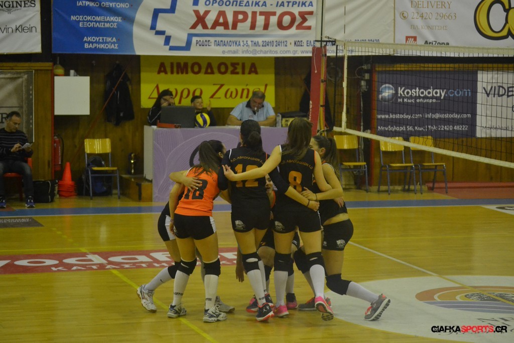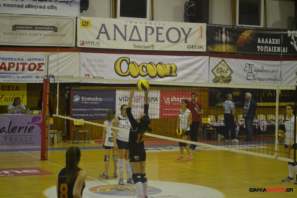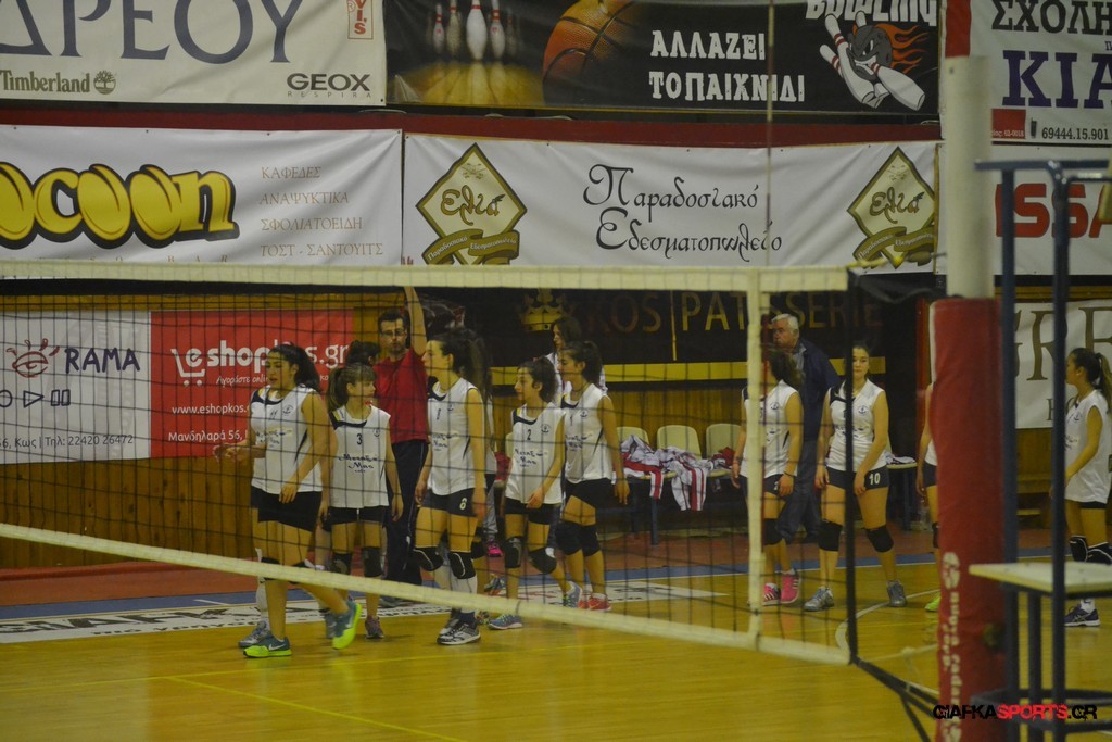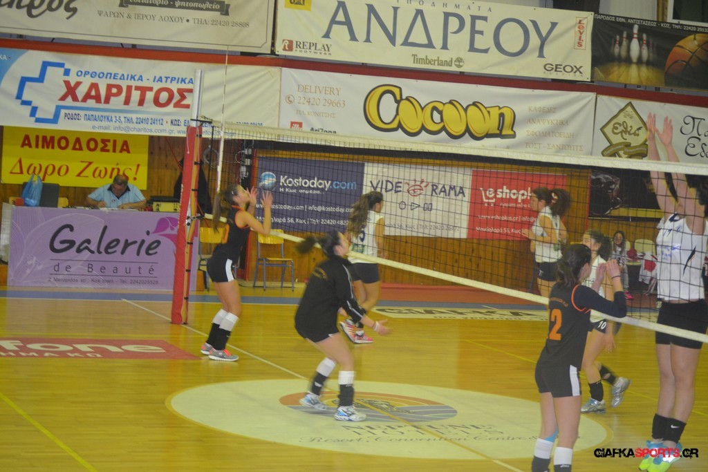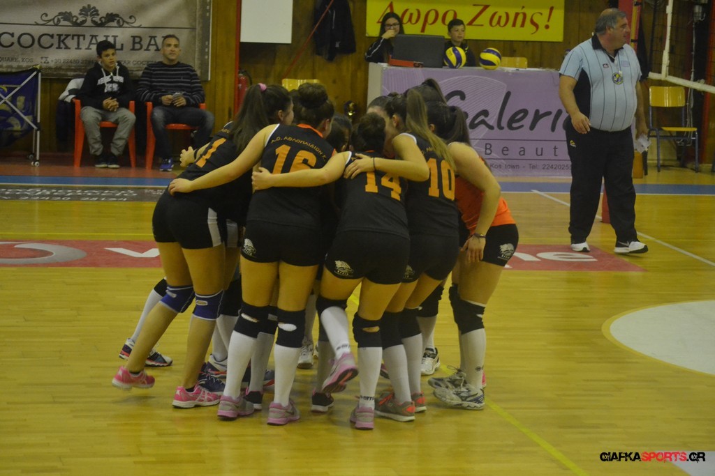 Στους τελικούς της περιφέρειας προκρίθηκαν οι κορασίδες του Α.Ο Αθλοπαιδιών Κω οι οποίες στον αγώνα κόντρα στην ομάδα της Σύρου (Α.Σ.Ε. Νεωρίου Σύρου) ήταν ανώτερες και με καθαρό μυαλό κατάφεραν να επικρατήσουν με 3-0 σετ (25-19,25-20,25-16) και να περάσουν τους τελικούς.