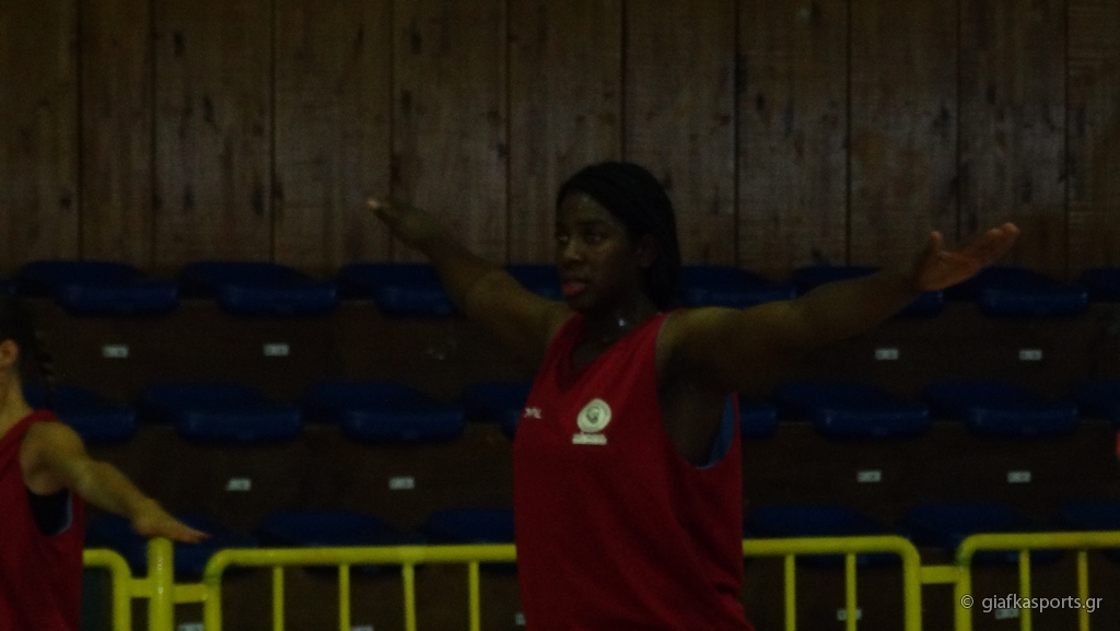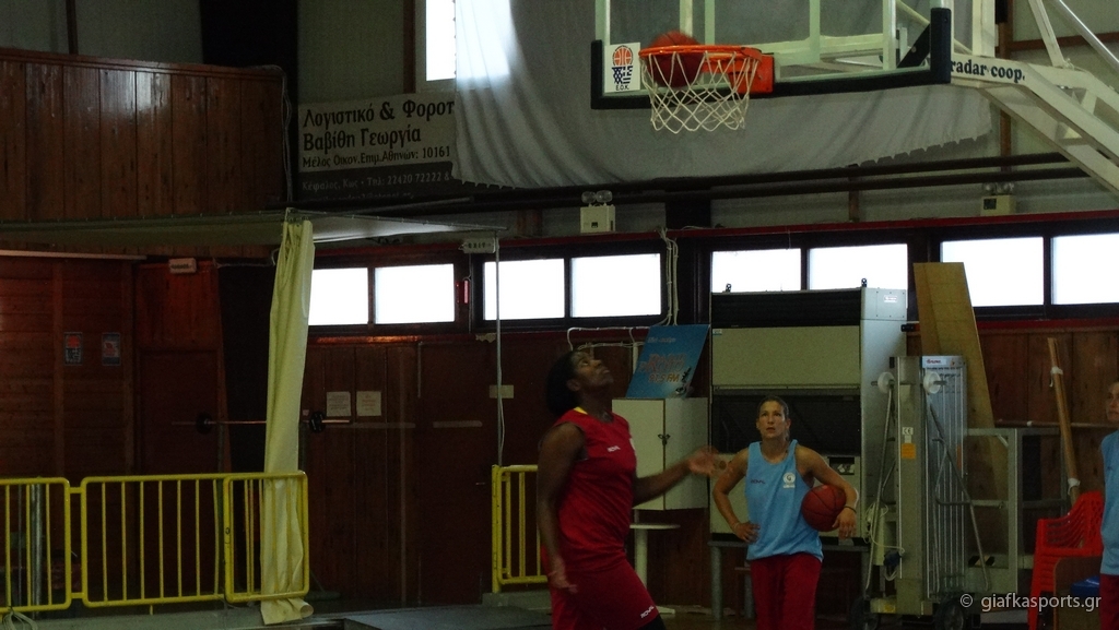Η Αμερικανίδα με το που έφτασε συμμετείχε στην πρωινή προπόνηση με το πρόγραμμα να περιλαμβάνει βάρη ενώ το απόγευμα βρέθηκε για πρώτη φορά στο Κλειστό γυμναστήριο Κω, δείχνοντας με το καλημέρα ιδιαίτερα χαλαρή και άνετη με τις συμπαίκτριες της.