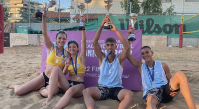 Στα κορίτσια, η Ειρήνη Αργυρίου με την Ιφιγένεια Κωστάκη κατέκτησαν το πρώτο τους πρωτάθλημα στις αναπτυξιακές κατηγορίες στο μπιτς βόλεϊ.