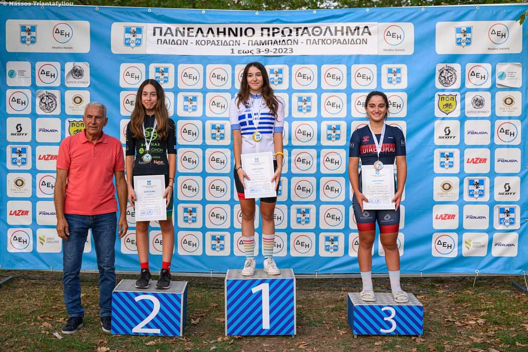 Πρωταθλήτρια Ελλάδος στέφθηκε η Μορεττο Σοφία του Ποδηλατικού Ομίλου Κω στην κατηγορία Παγκορασίδων στο Πανελλήνιο Πρωτάθλημα Δρόμου Ατομικής Χρονομέτρησης που διεξήχθη στο χωριό Ματσούκιον Αιτωλοακαρνανίας από την Ελληνική Ομοσπονδία Ποδηλασίας.