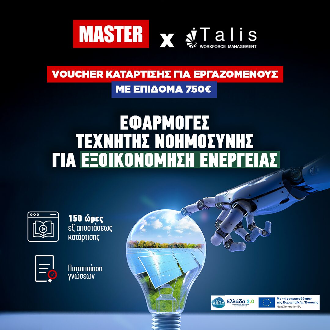 Πρόκειται για ένα σύγχρονο και καινοτόμο πρόγραμμα που συνδυάζει την Τεχνητή Νοημοσύνη με τη βιωσιμότητα, την εξοικονόμηση ενέργειας και τη σύγχρονη πράσινη οικονομία, προσφέροντας στους συμμετέχοντες δεξιότητες με άμεση εφαρμογή στην αγορά εργασίας.