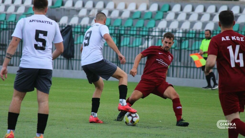 Για την ομάδα του Μιχάλη Παπαγιαννόπουλο σκόραραν οι Νάσσης, Σκεμπές και Παπανικολάου ενω οι “βυσσινί” έπαιζαν με δέκα παίκτες λόγω αποβολής του Νταλούμη απ’ το 43′. Για την ομάδα της Καλύμνου σκόραρε ο Χατζηαντωνίου.