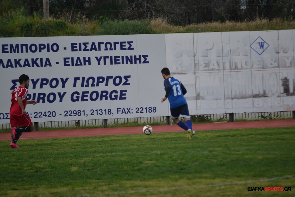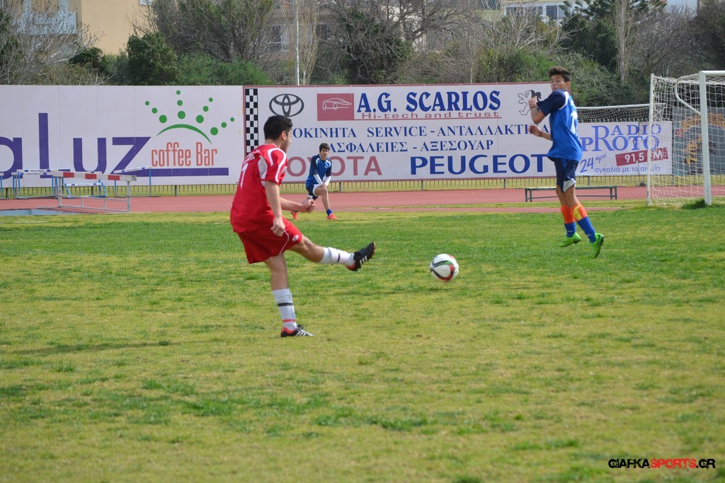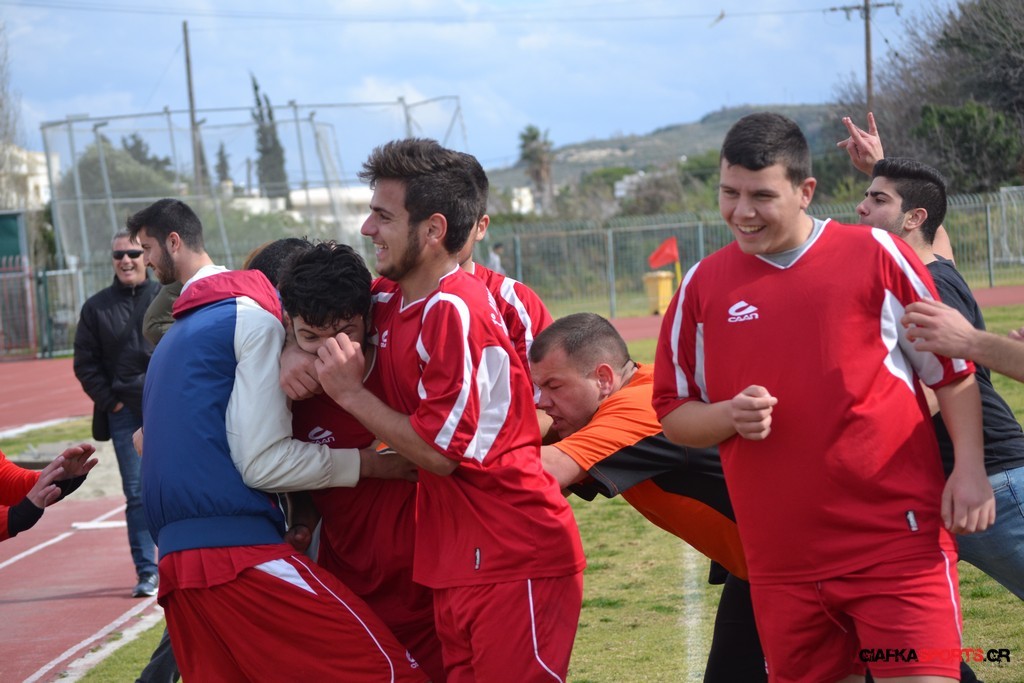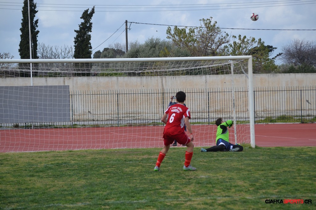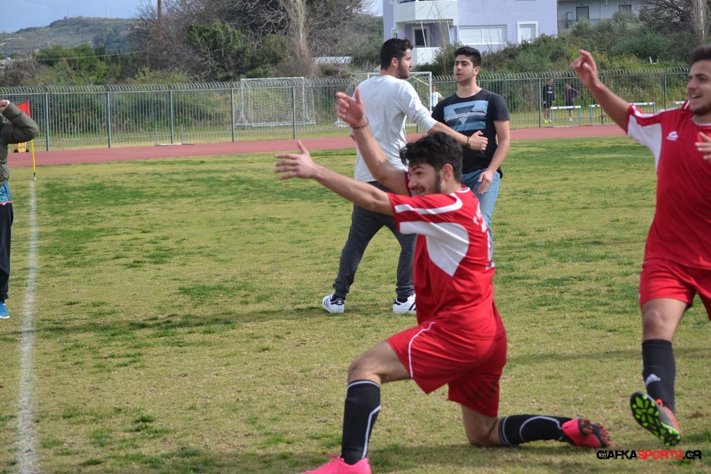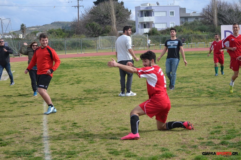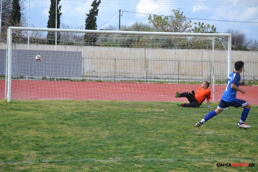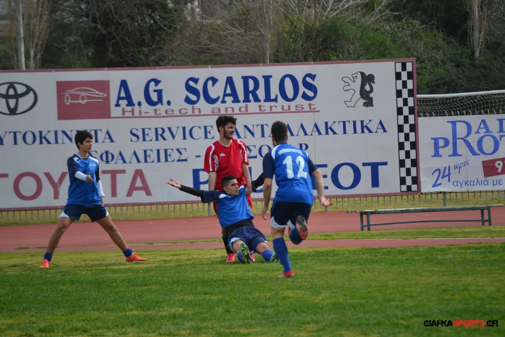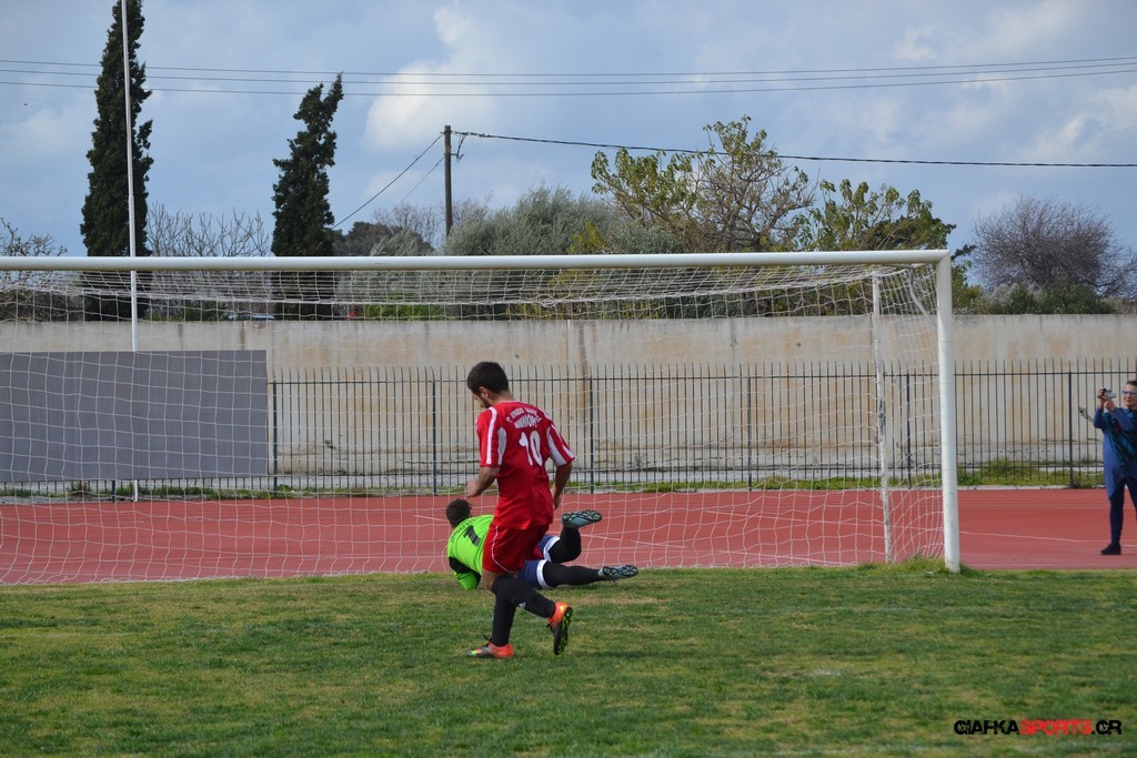 Το πρώτο ημίχρονο της κανονικής διάρκειας έληξε με 0-0,ενώ στο δεύτερο ημίχρονο σκόραραν οι Σχουλλής με εύστοχη εκτέλεση πέναλτι και ο Καμπουράκης Αντώνης πριν την λήξη του παιχνιδιού.