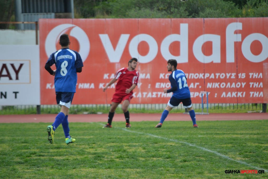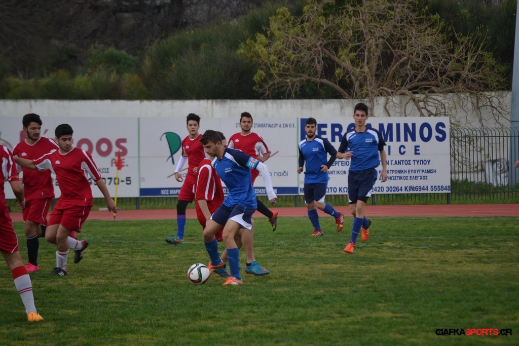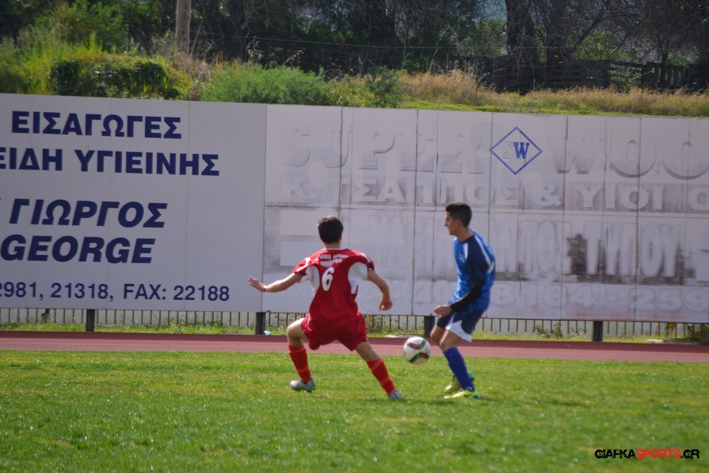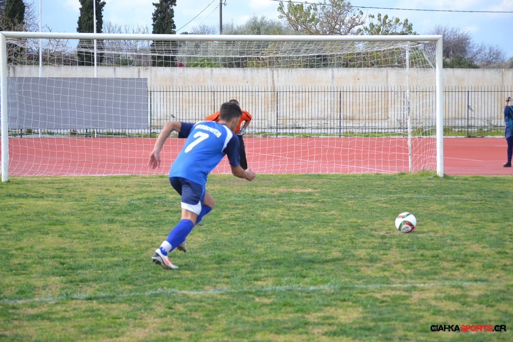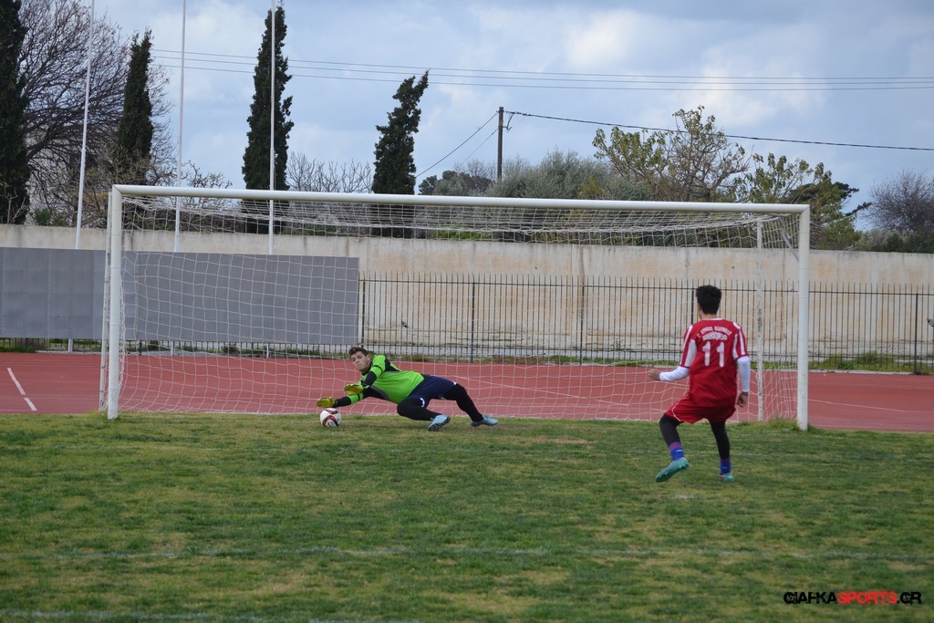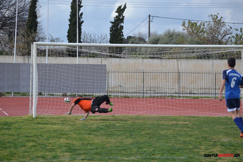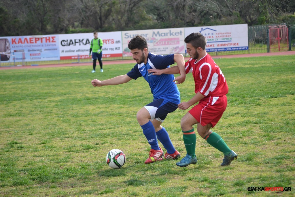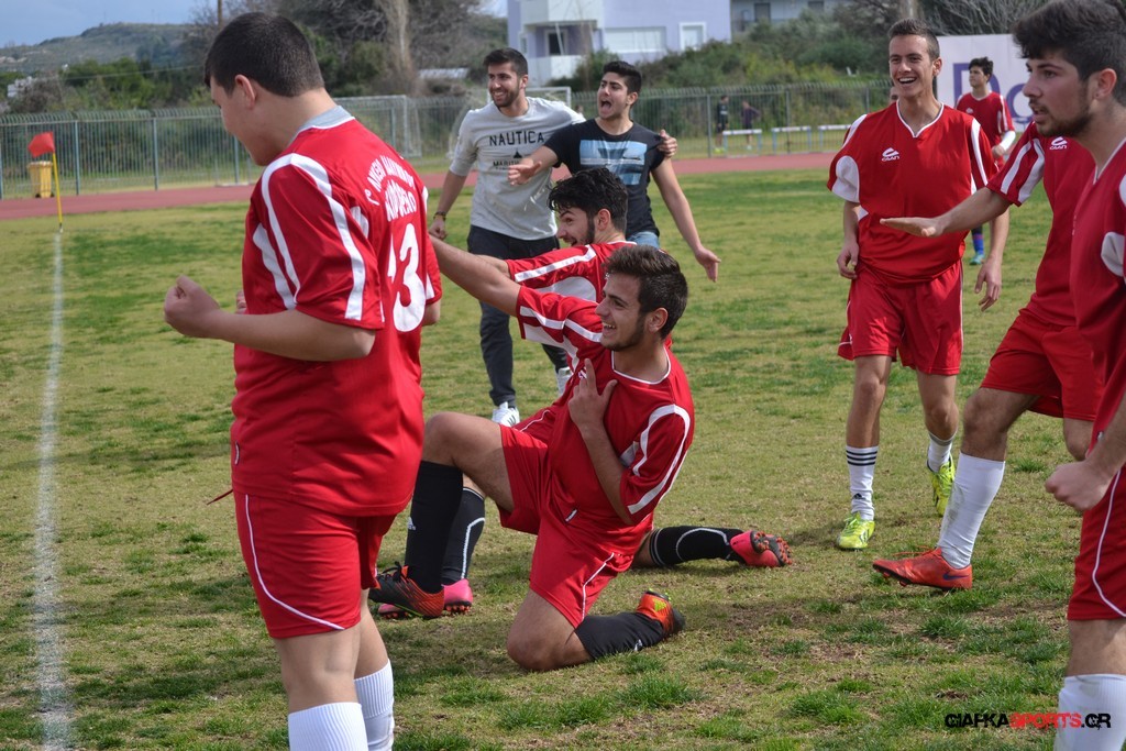 Το πρώτο ημίχρονο της κανονικής διάρκειας έληξε με 0-0,ενώ στο δεύτερο ημίχρονο σκόραραν οι Σχουλλής με εύστοχη εκτέλεση πέναλτι και ο Καμπουράκης Αντώνης πριν την λήξη του παιχνιδιού.