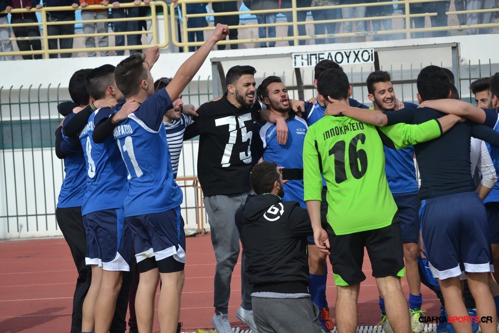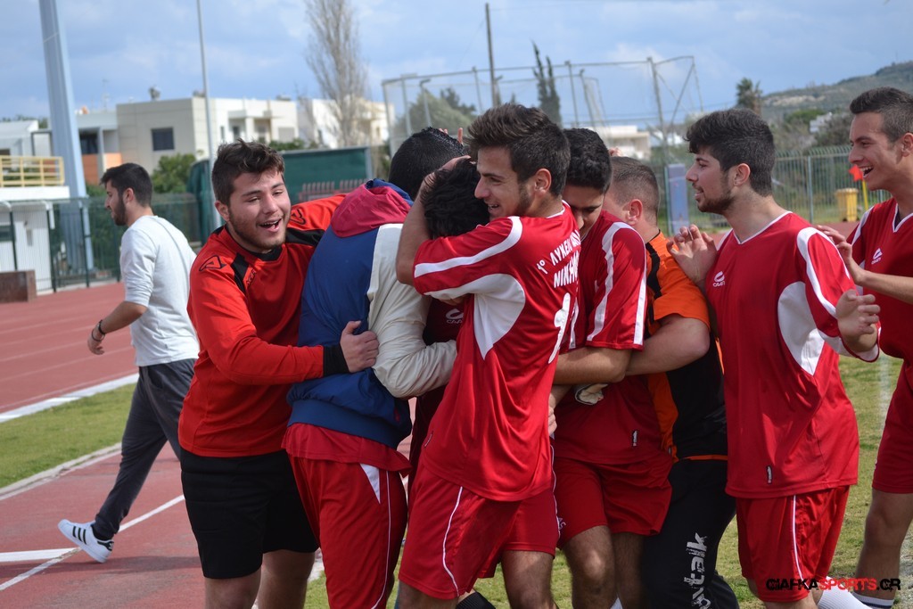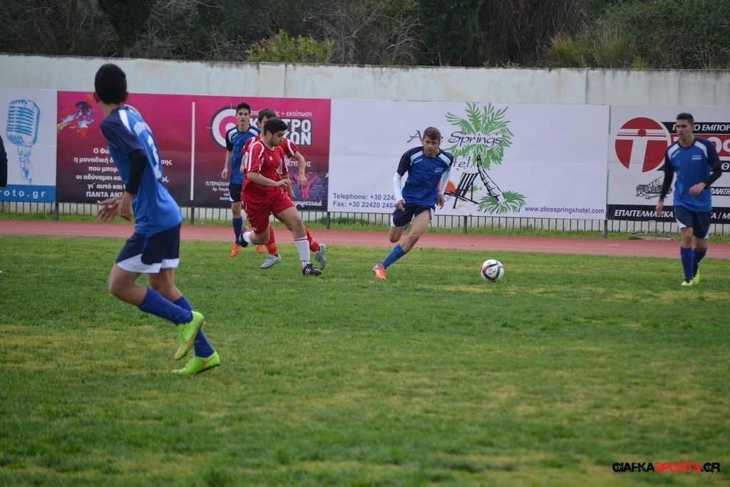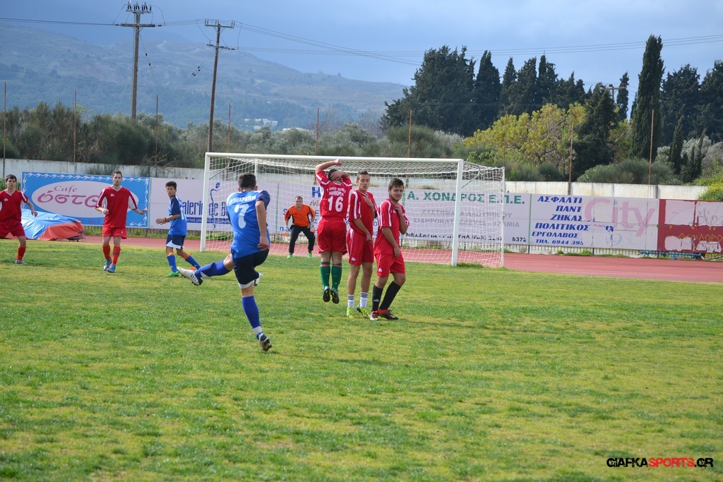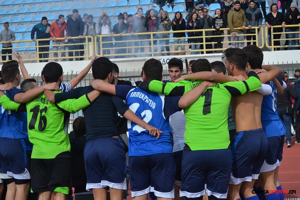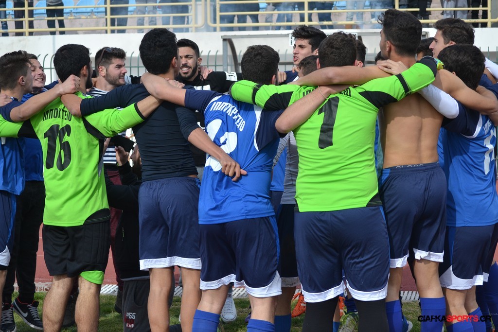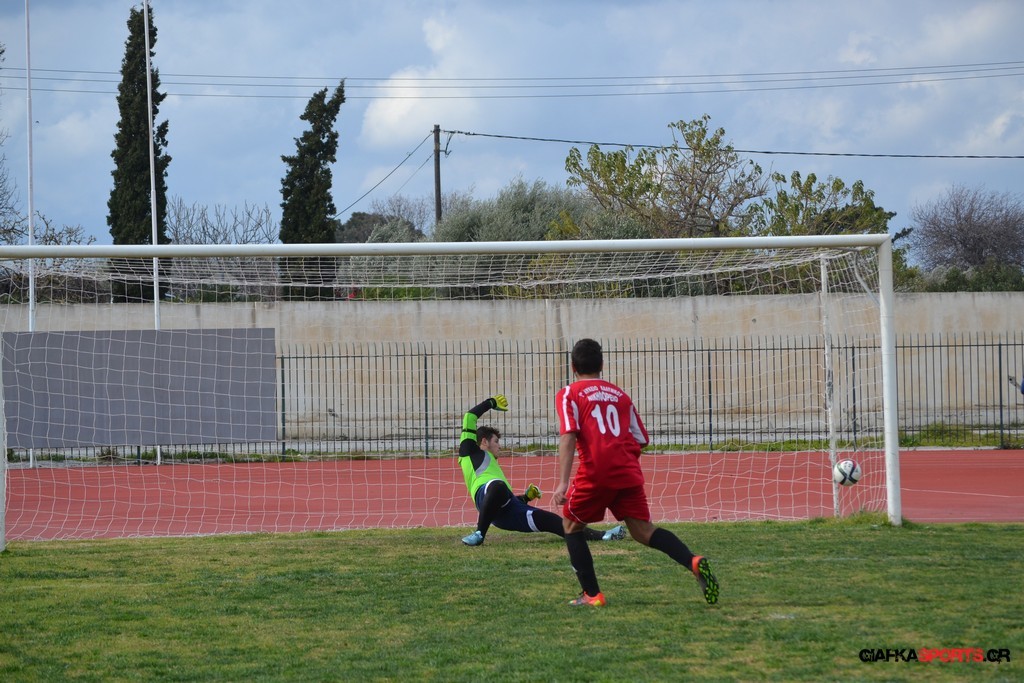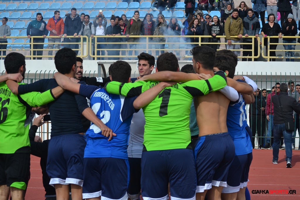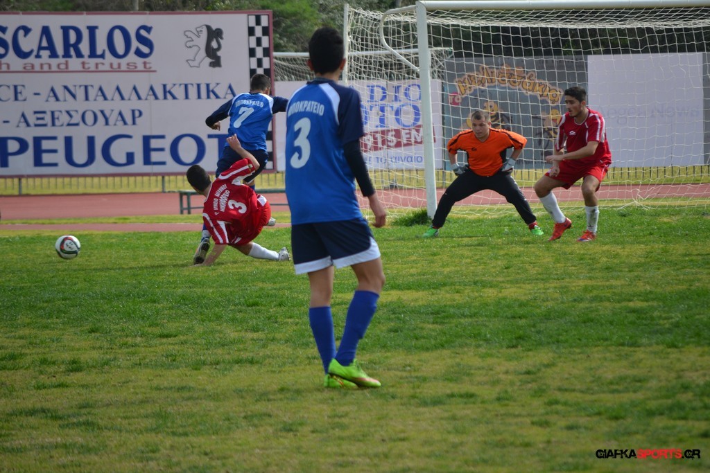 Το πρώτο ημίχρονο της κανονικής διάρκειας έληξε με 0-0,ενώ στο δεύτερο ημίχρονο σκόραραν οι Σχουλλής με εύστοχη εκτέλεση πέναλτι και ο Καμπουράκης Αντώνης πριν την λήξη του παιχνιδιού.