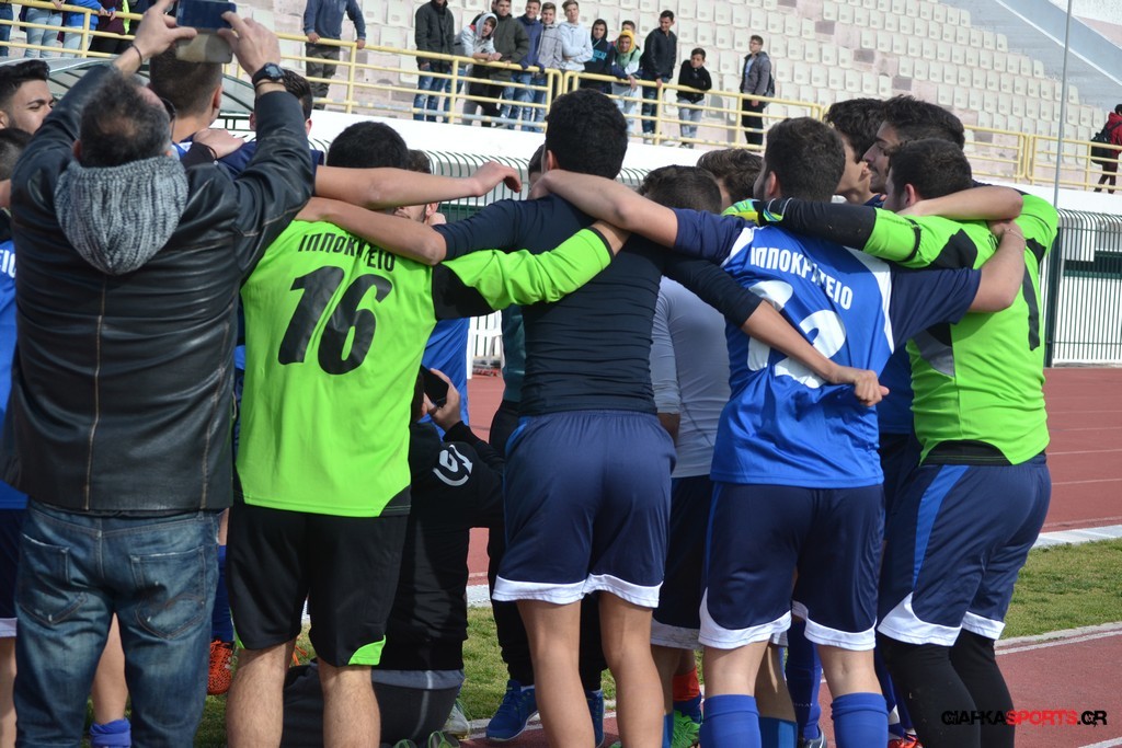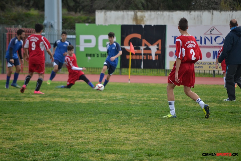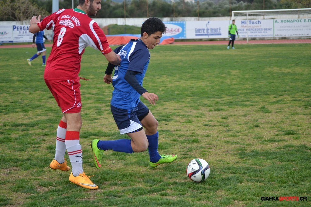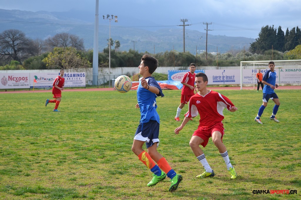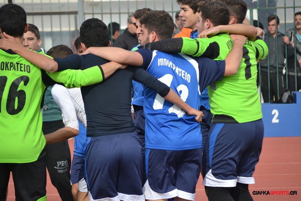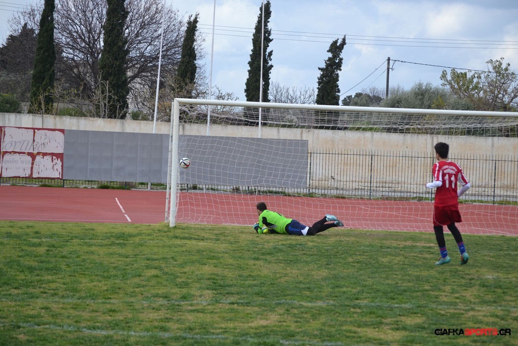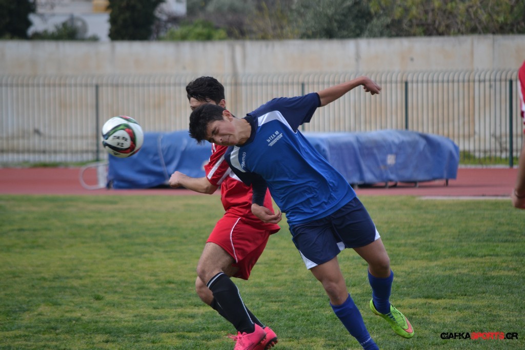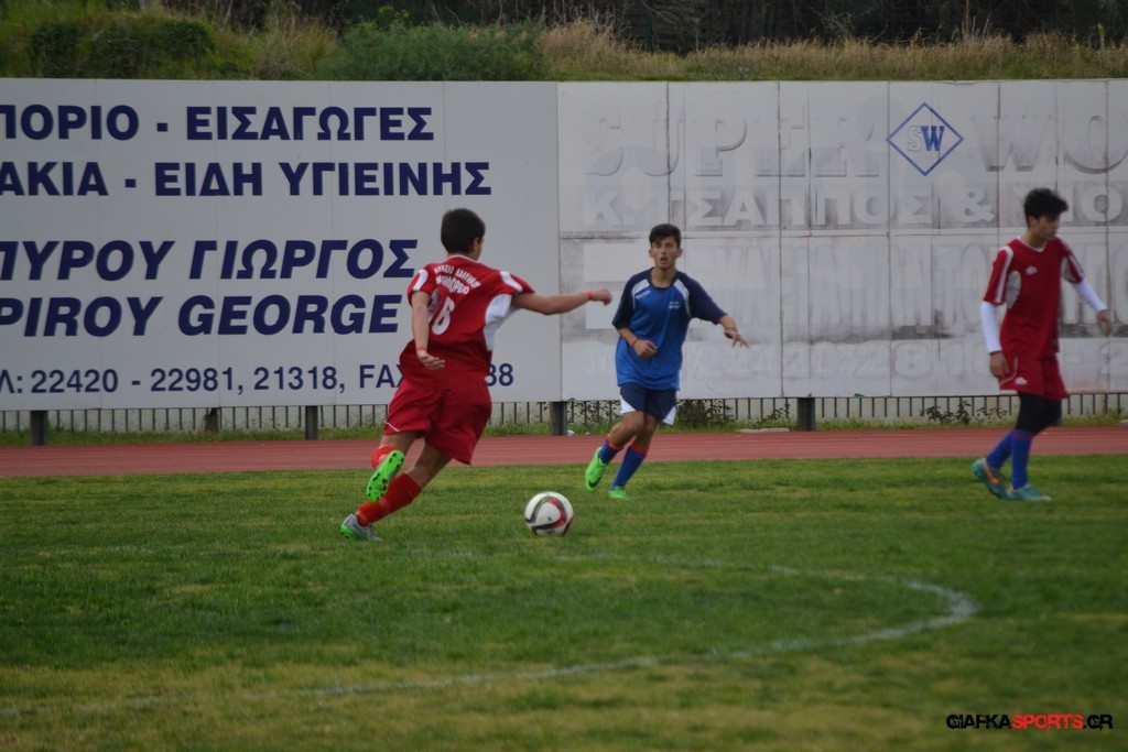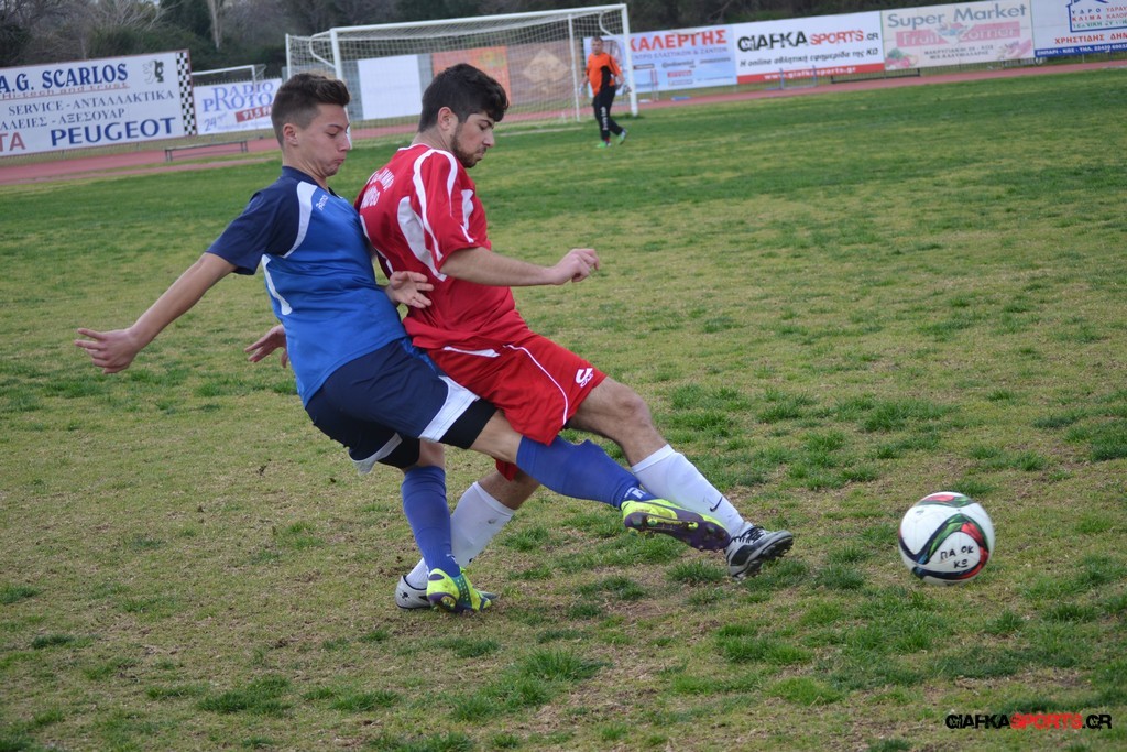 Το πρώτο ημίχρονο της κανονικής διάρκειας έληξε με 0-0,ενώ στο δεύτερο ημίχρονο σκόραραν οι Σχουλλής με εύστοχη εκτέλεση πέναλτι και ο Καμπουράκης Αντώνης πριν την λήξη του παιχνιδιού.
