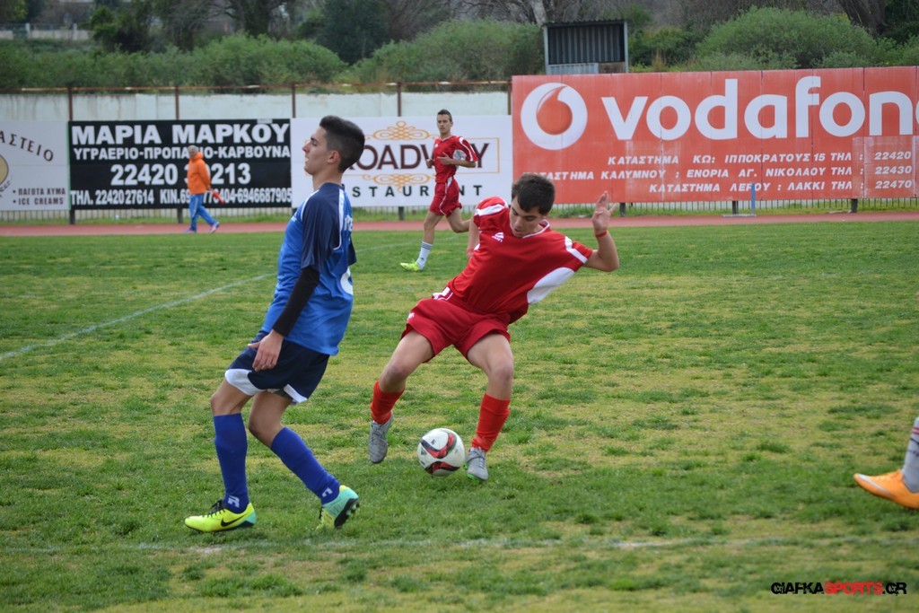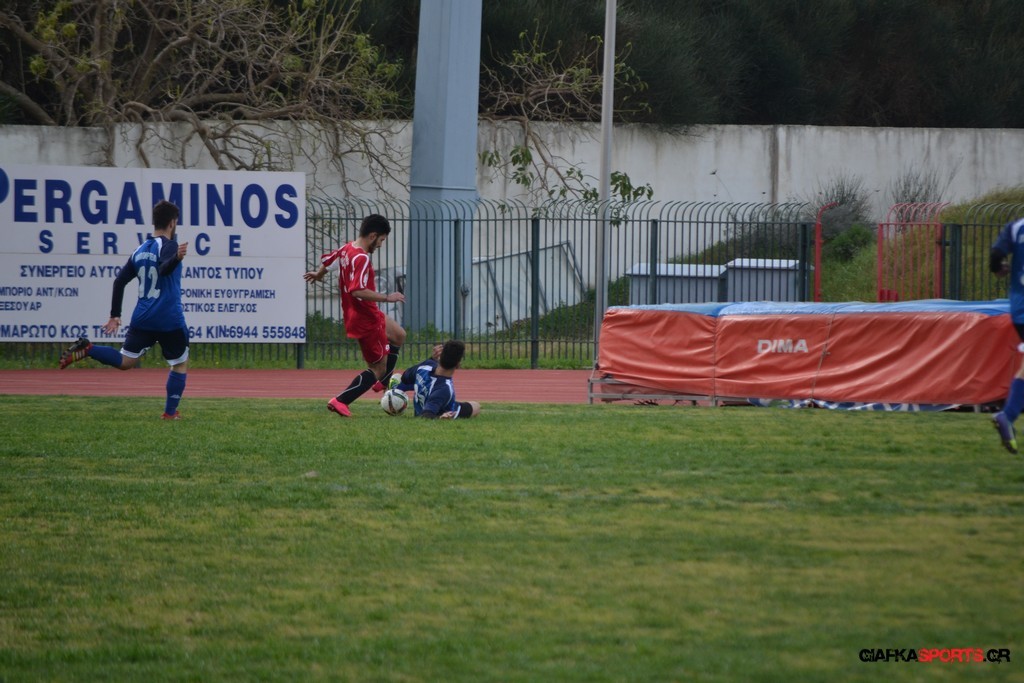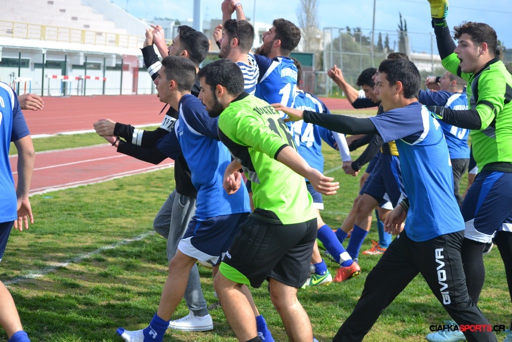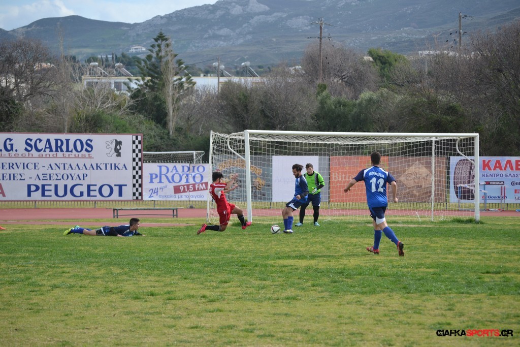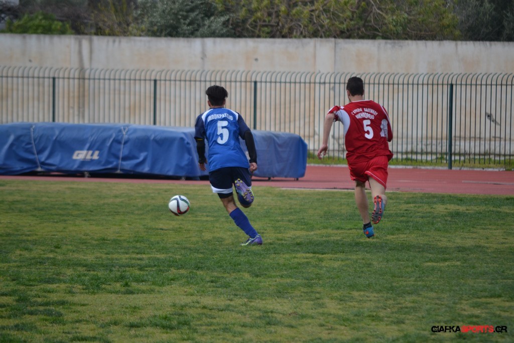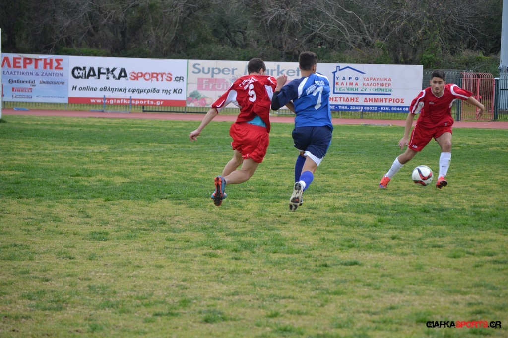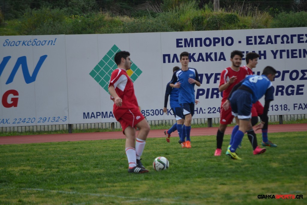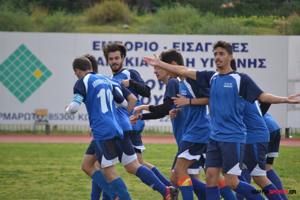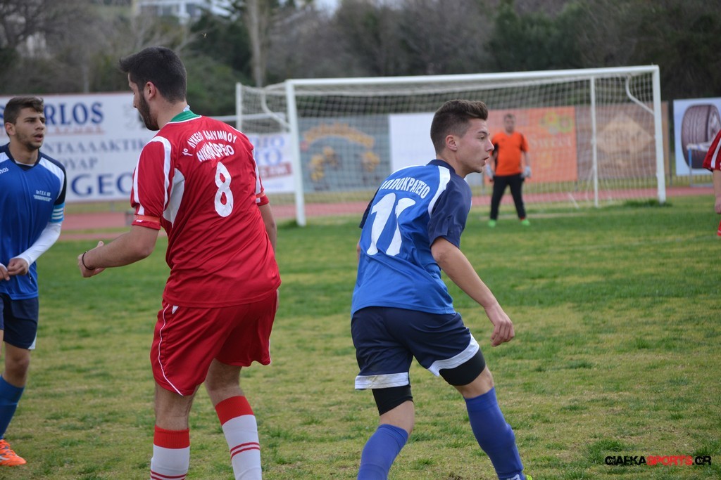 Το πρώτο ημίχρονο της κανονικής διάρκειας έληξε με 0-0,ενώ στο δεύτερο ημίχρονο σκόραραν οι Σχουλλής με εύστοχη εκτέλεση πέναλτι και ο Καμπουράκης Αντώνης πριν την λήξη του παιχνιδιού.