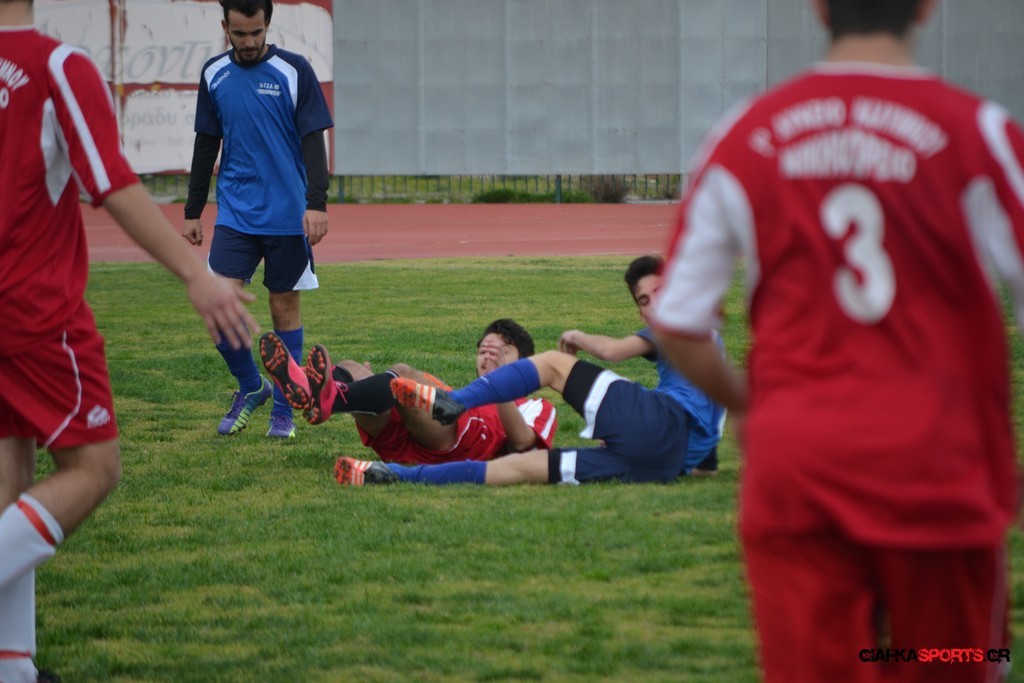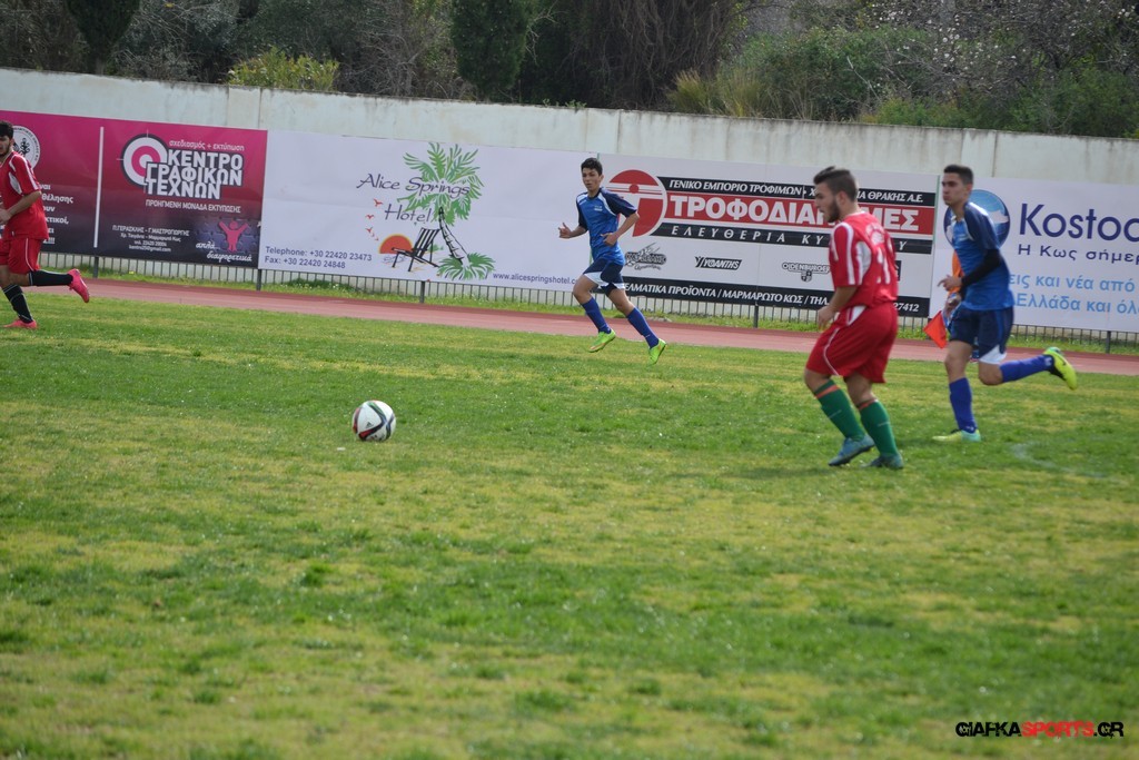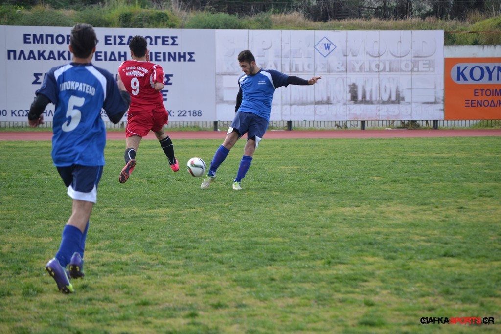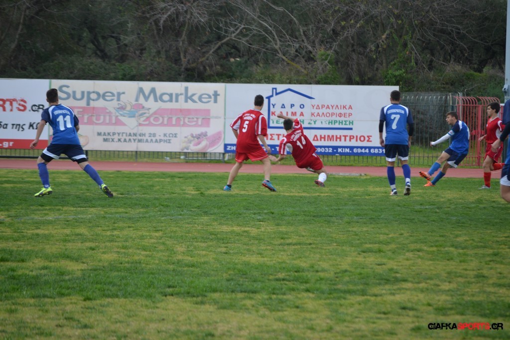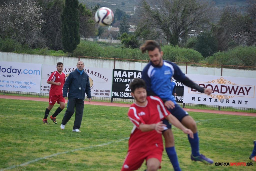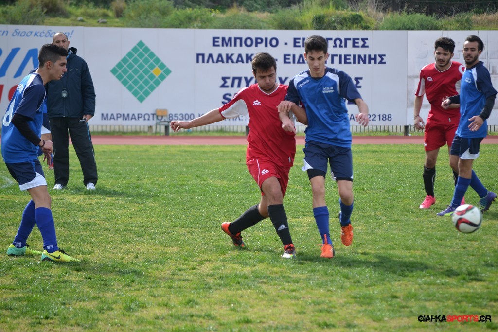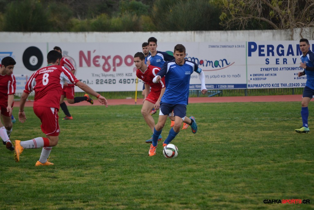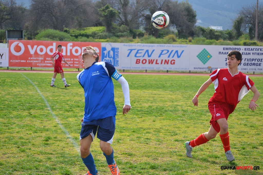 Το πρώτο ημίχρονο της κανονικής διάρκειας έληξε με 0-0,ενώ στο δεύτερο ημίχρονο σκόραραν οι Σχουλλής με εύστοχη εκτέλεση πέναλτι και ο Καμπουράκης Αντώνης πριν την λήξη του παιχνιδιού.