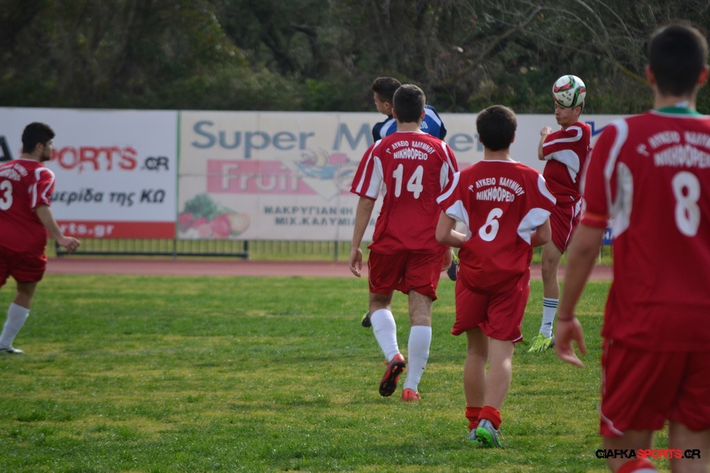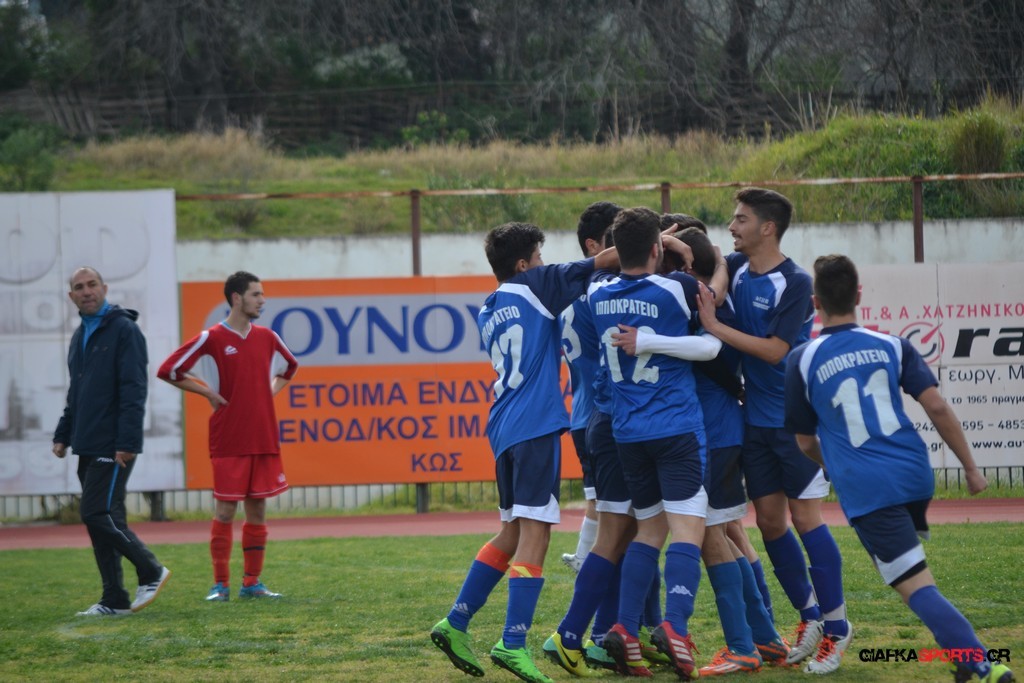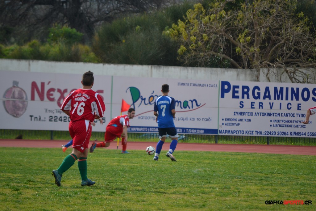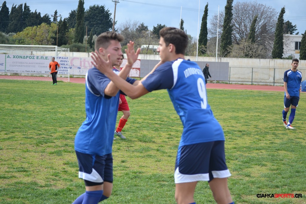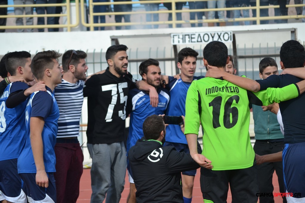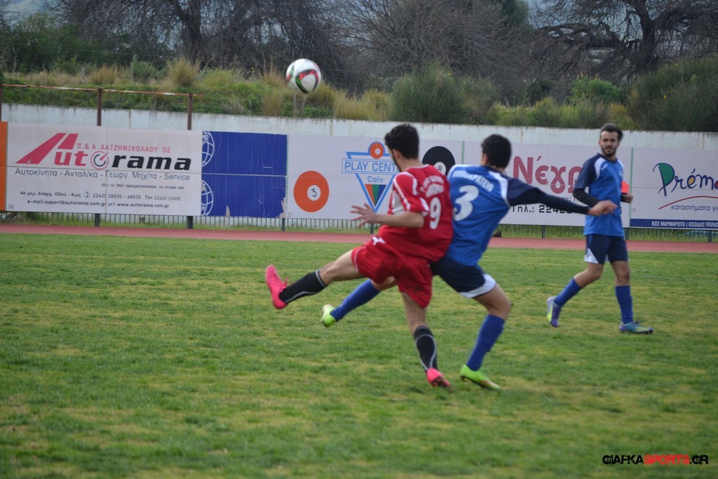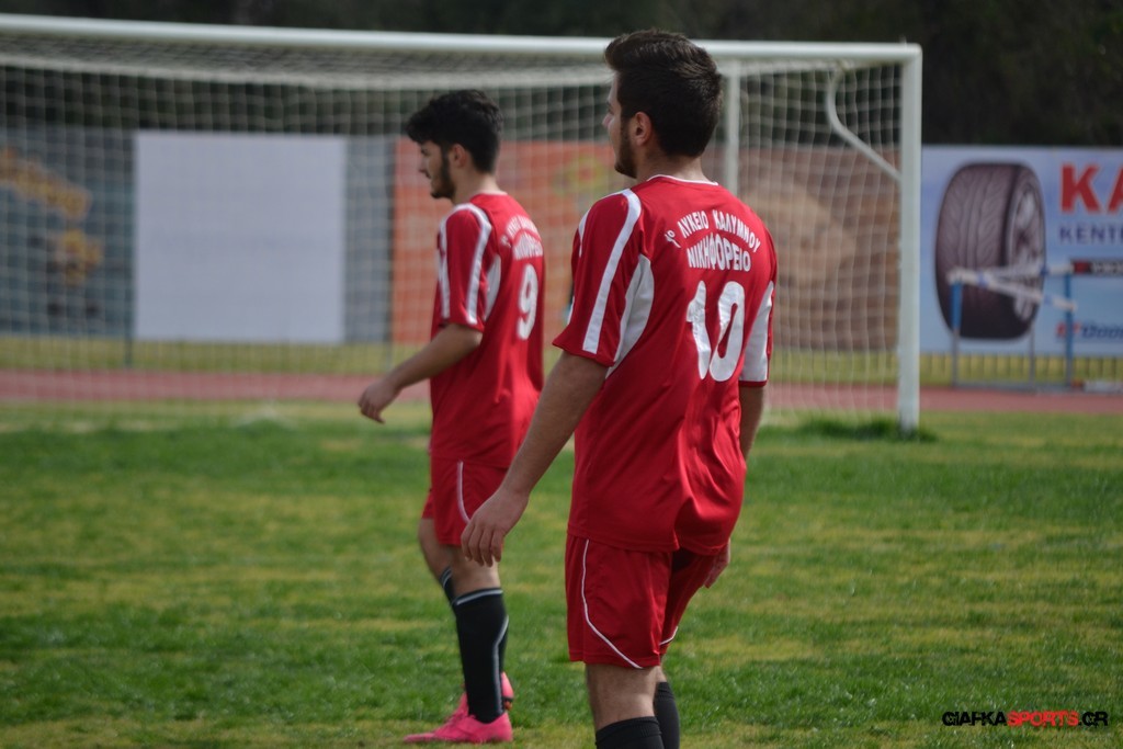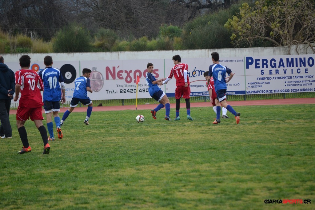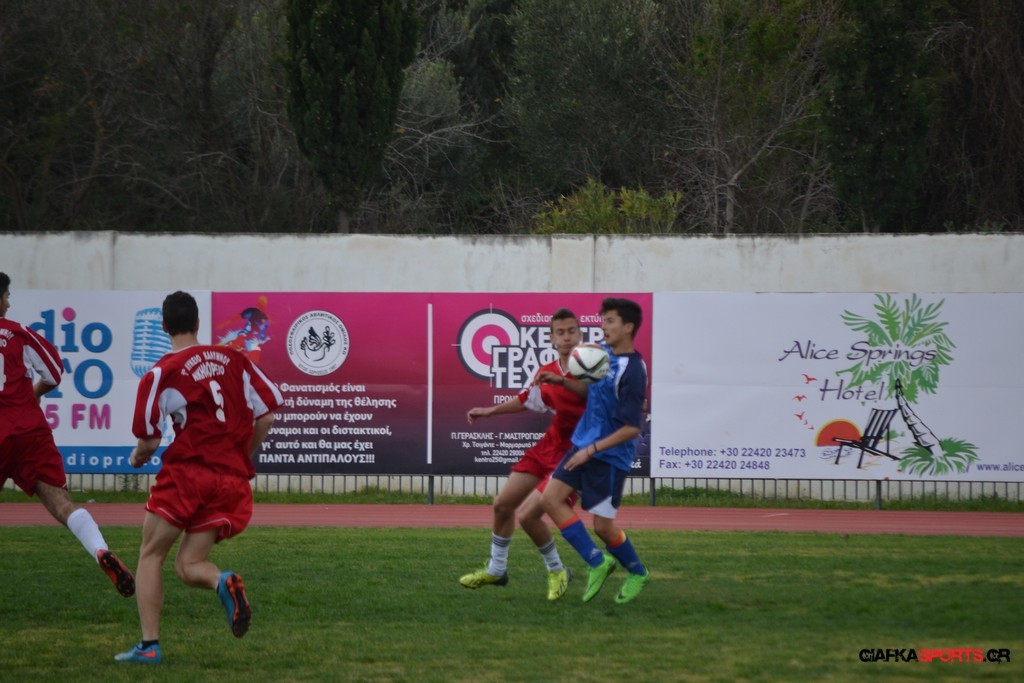 Το πρώτο ημίχρονο της κανονικής διάρκειας έληξε με 0-0,ενώ στο δεύτερο ημίχρονο σκόραραν οι Σχουλλής με εύστοχη εκτέλεση πέναλτι και ο Καμπουράκης Αντώνης πριν την λήξη του παιχνιδιού.