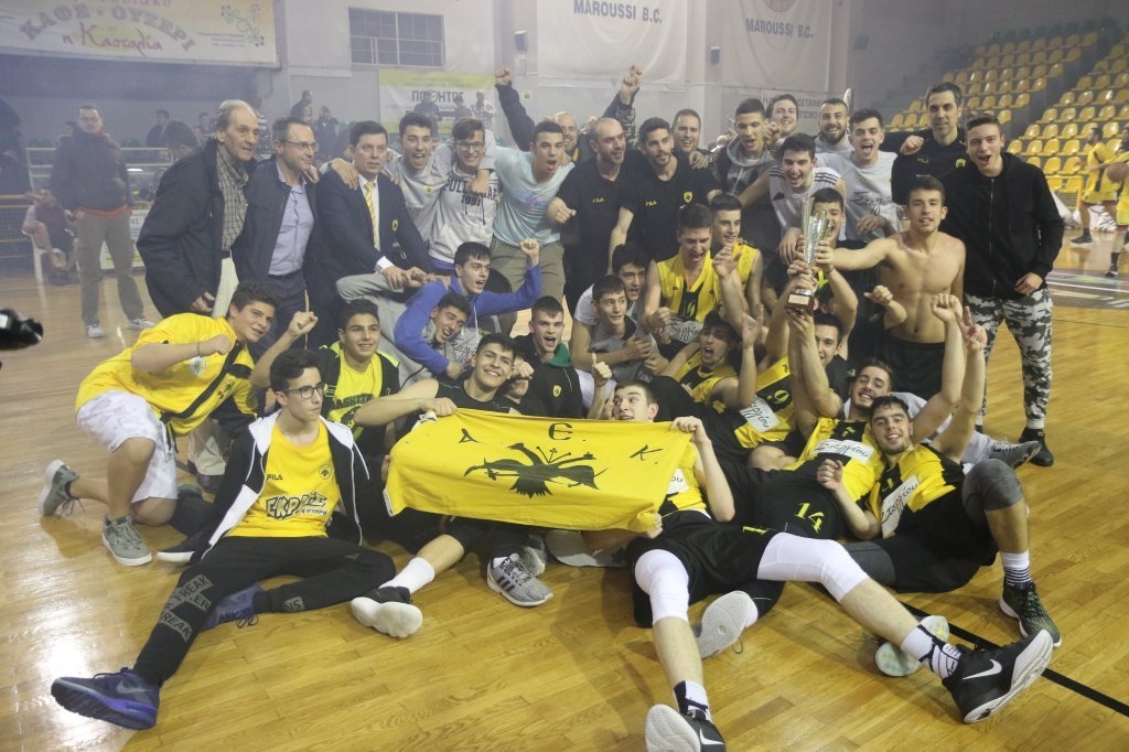 Η σοβαρή επένδυση της ΑΕΚ στις Ακαδημίες και τις Υποδομές επιβραβεύεται και με τίτλους! Η Ένωση είναι Πρωταθλήτρια της Α’ ΕΣΚΑ στους Εφήβους, καθώς η ομάδα του Νίκου Χατζή επικράτησε στον τρίτο τελικό της διοργάνωσης του Περιστερίου με 62-59. Το παιχνίδι, εν τέλει, εξελίχθηκε σε θρίλερ, αλλά τα Αετόπουλα ήταν αυτά που πανηγύρισαν στο τέλος μαζί με τον Μάκη Αγγελόπουλο, τους συγγενείς τους και εκατοντάδες οπαδούς της ΑΕΚ που βρέθηκαν στο κλειστό του Άγιου Θωμά για να τους ενισχύσουν. Στην ομάδα της ΑΕΚ αγωνίζεται και ένα δικό μας παιδί ο Δημήτρης Βάση που αγωνιζόταν στον Ιπποκράτη