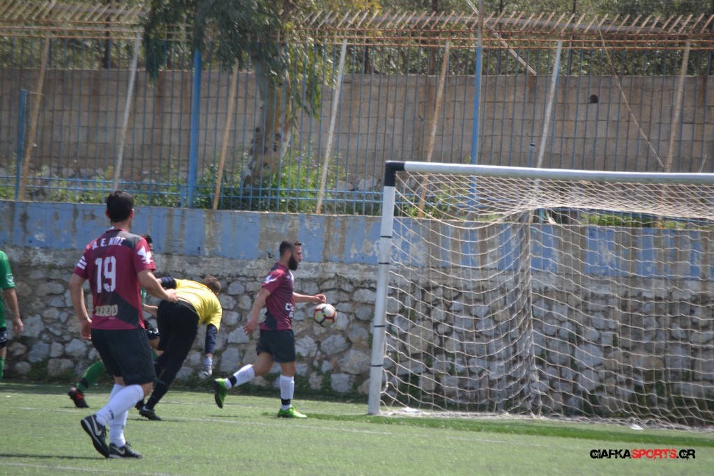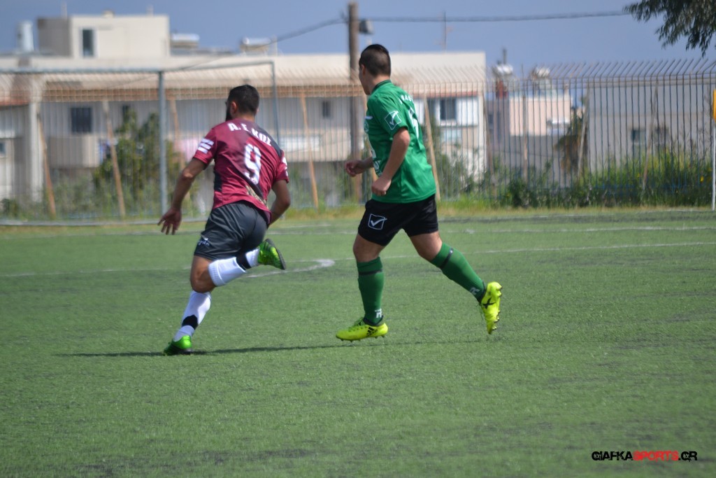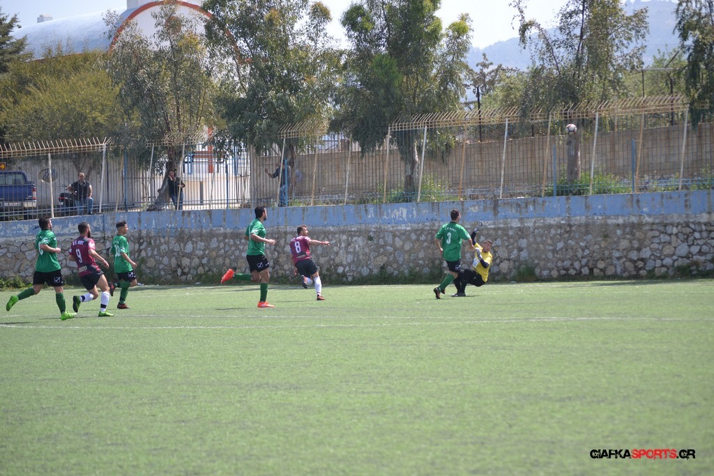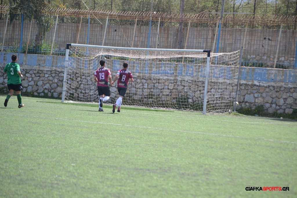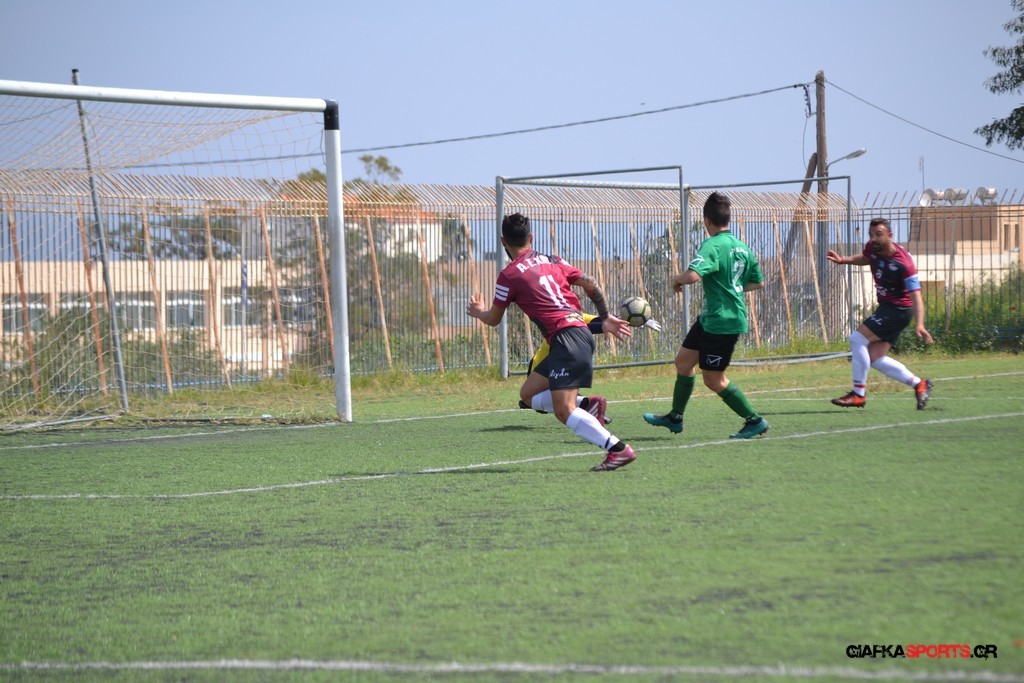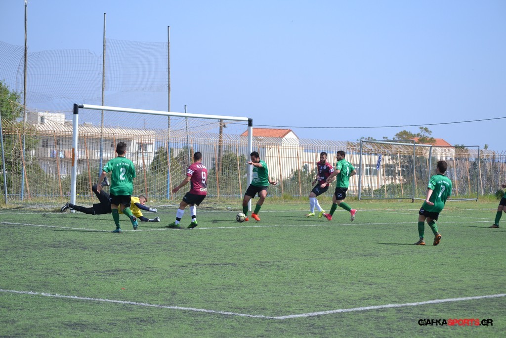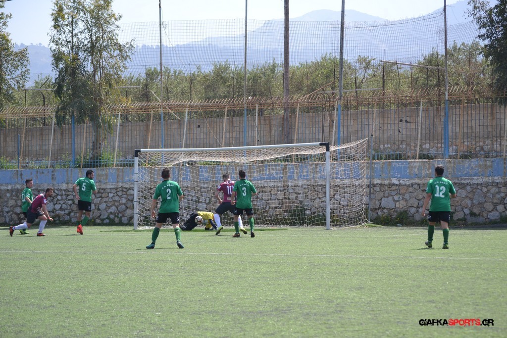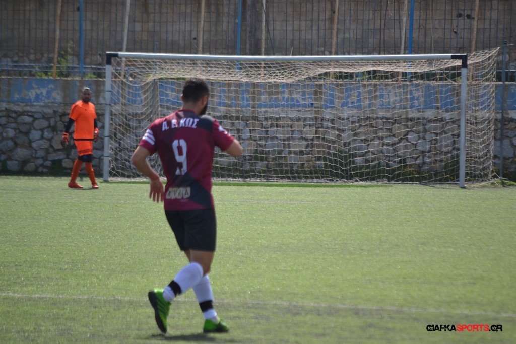 Η Α.Ε Κως είχε τον έλεγχο και την κυκλοφορία και στο 32’ ο Βασιλειάδης με το στήθος έσπρωξε την μπάλα στα δίχτυα κάνοντας το 3-0 για την ομάδα του που ήταν το αποτέλεσμα του πρώτου ημιχρόνου.