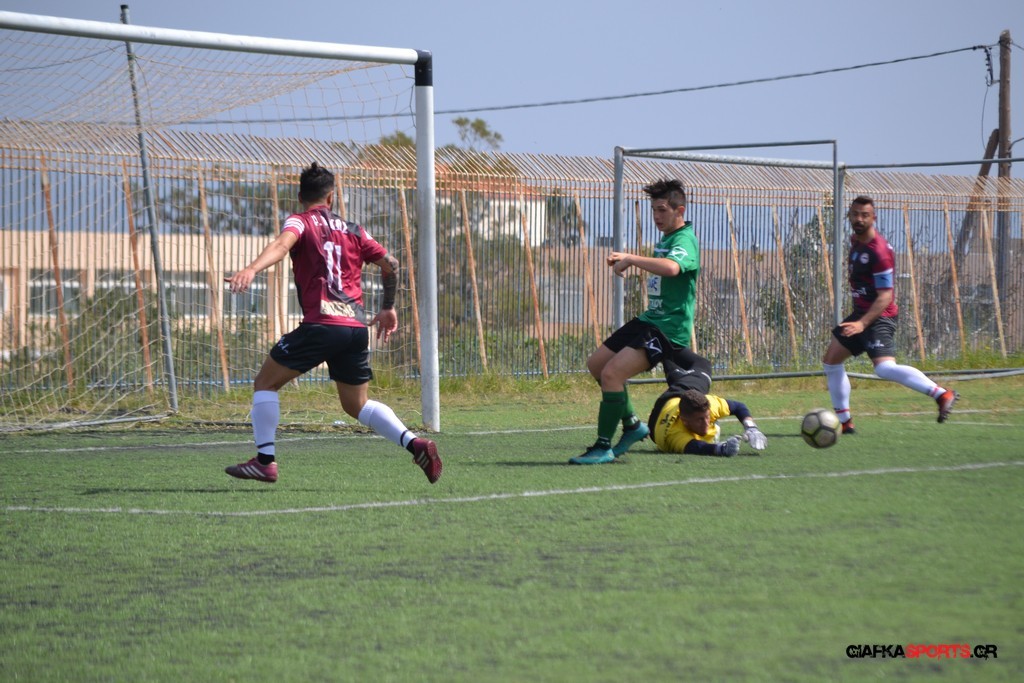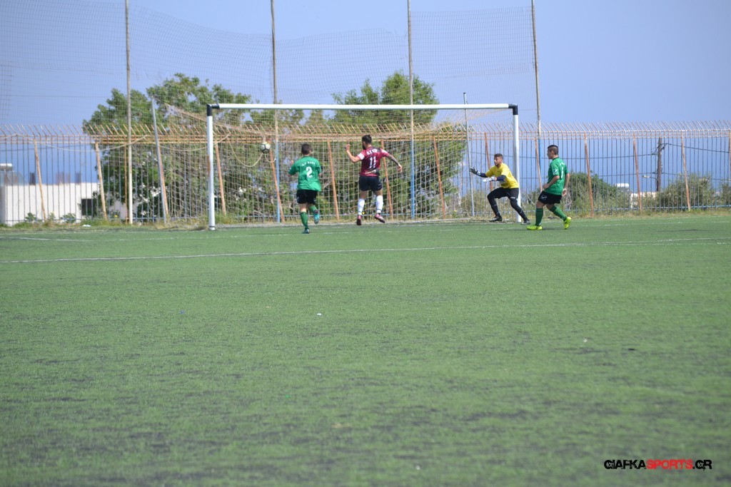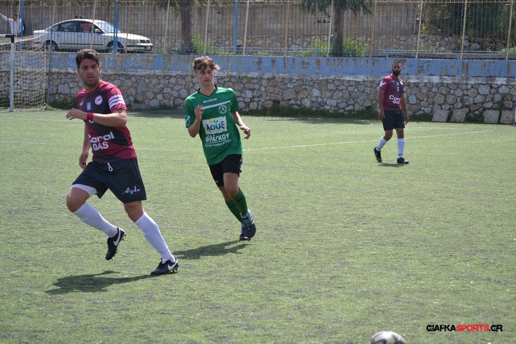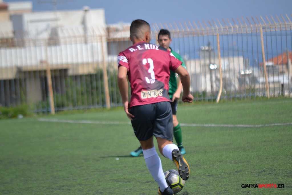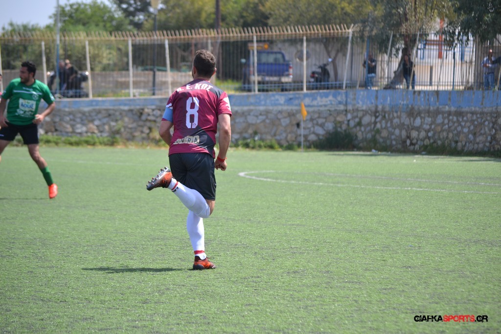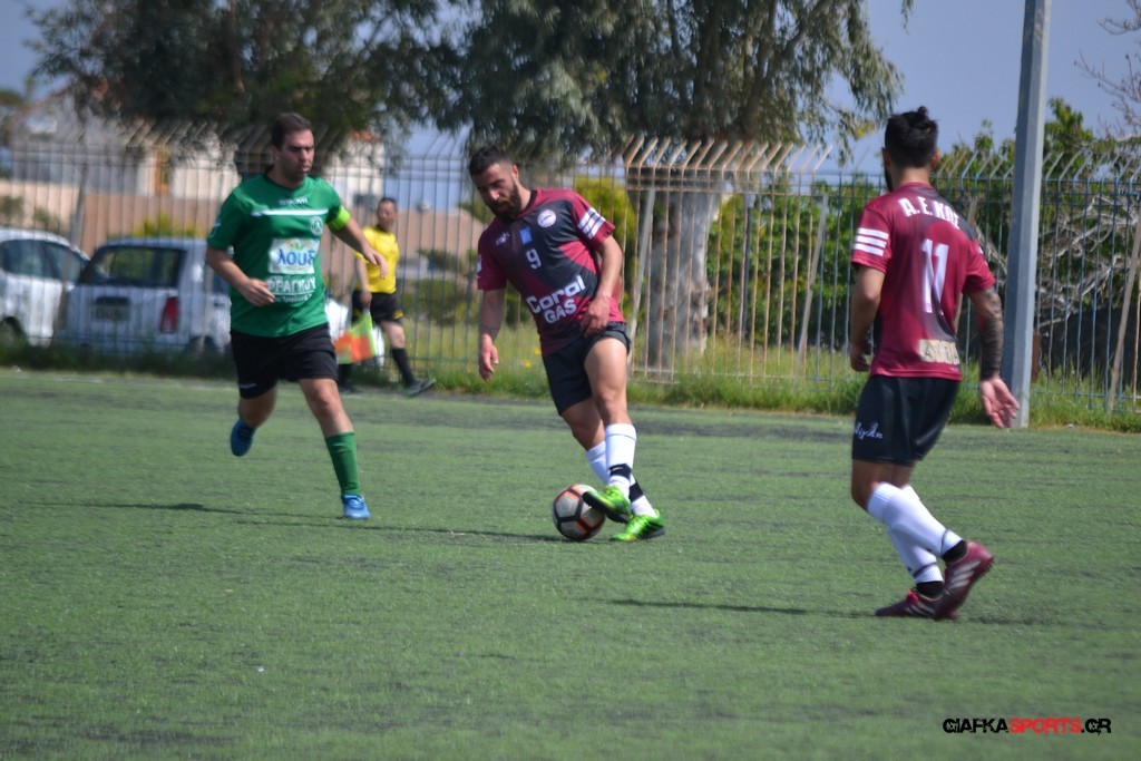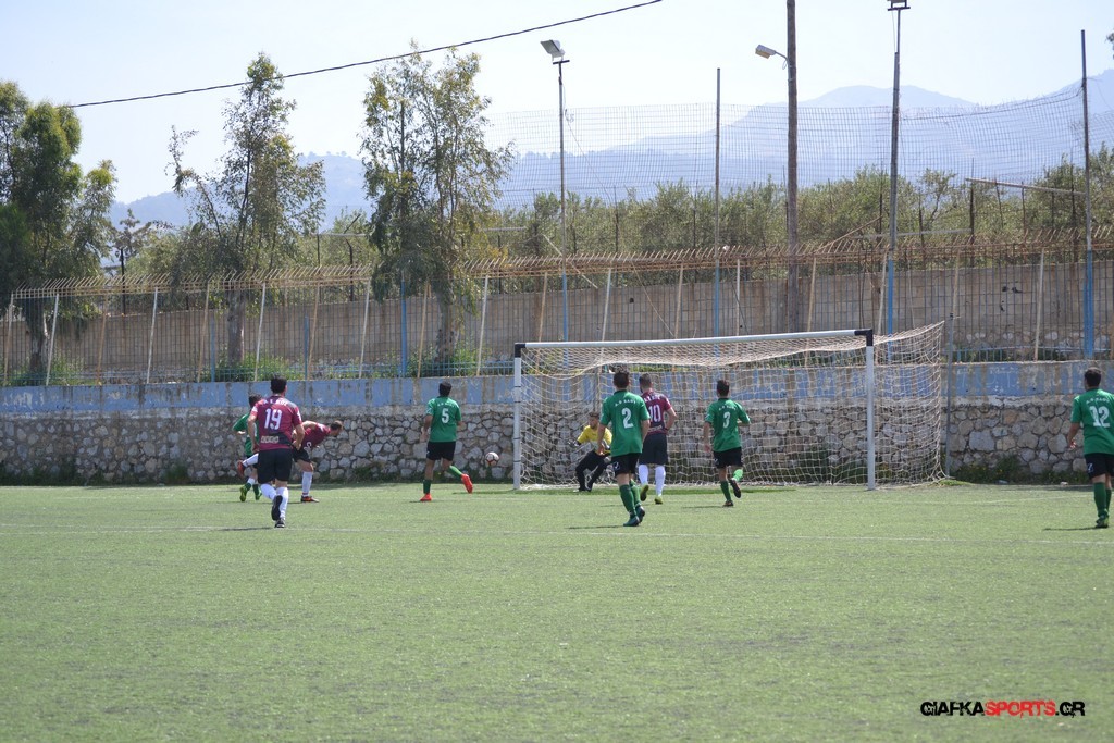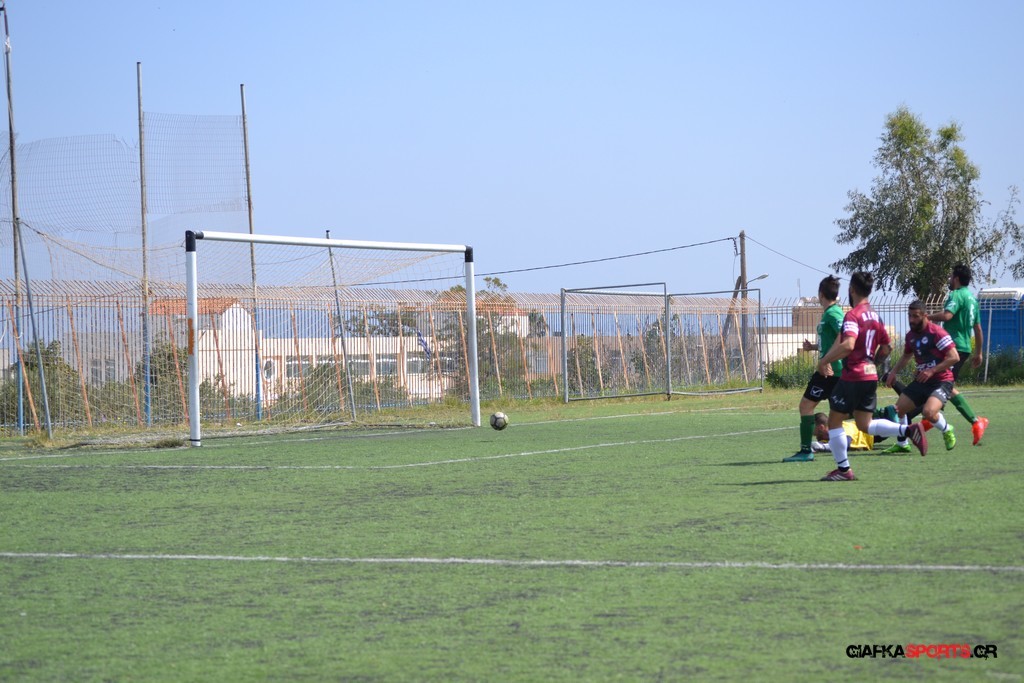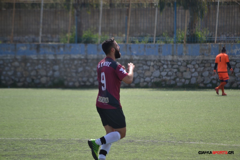 Η Α.Ε Κως είχε τον έλεγχο και την κυκλοφορία και στο 32’ ο Βασιλειάδης με το στήθος έσπρωξε την μπάλα στα δίχτυα κάνοντας το 3-0 για την ομάδα του που ήταν το αποτέλεσμα του πρώτου ημιχρόνου.