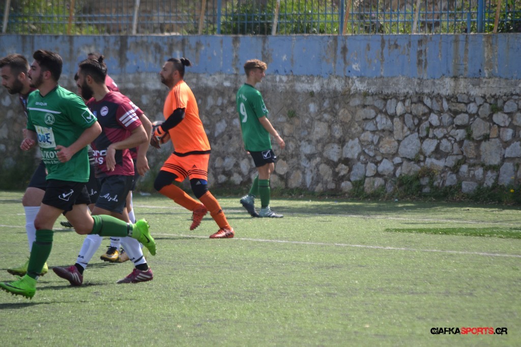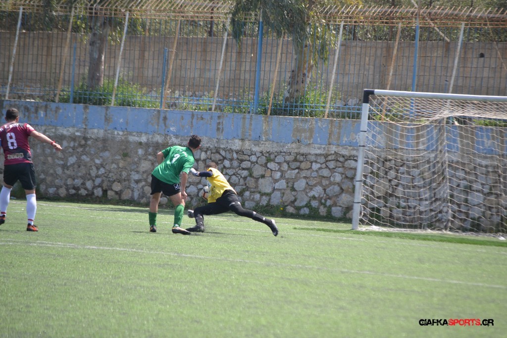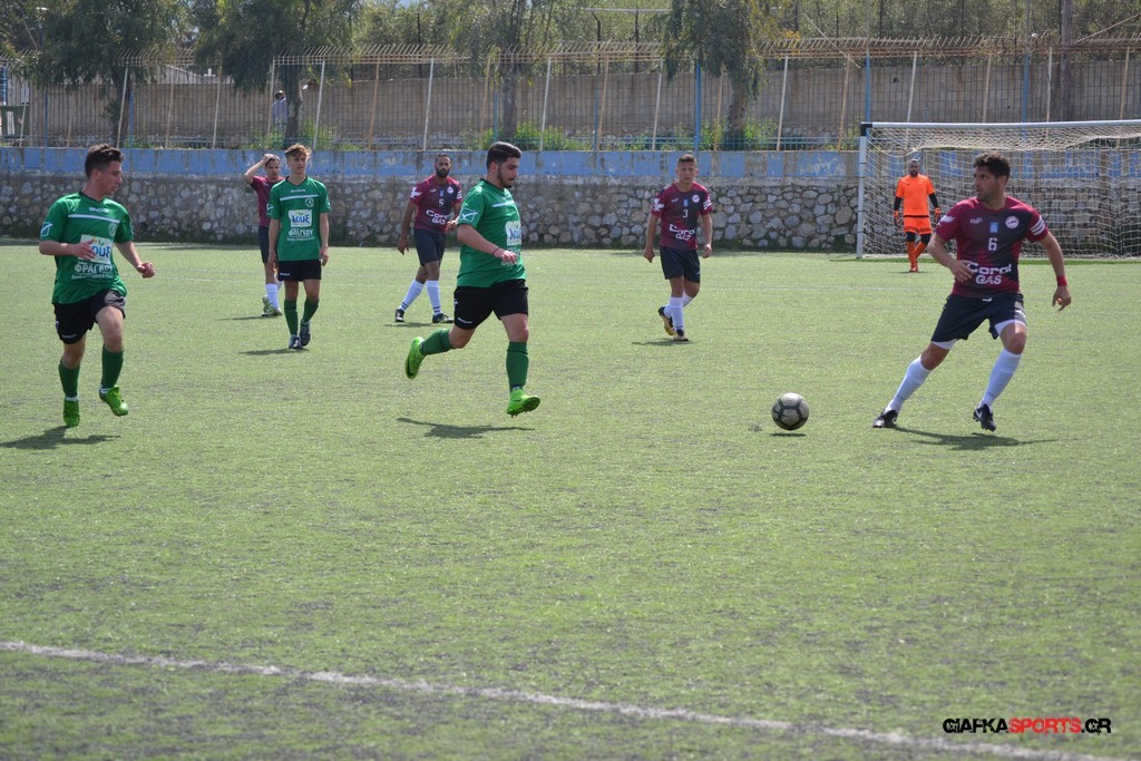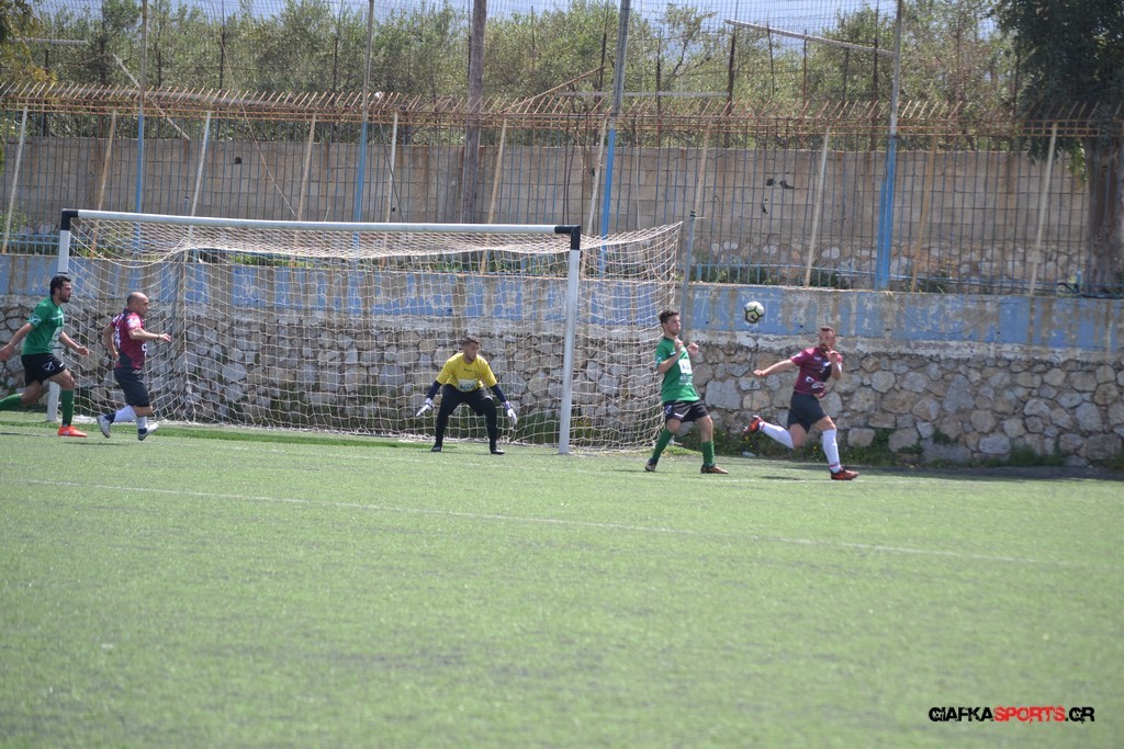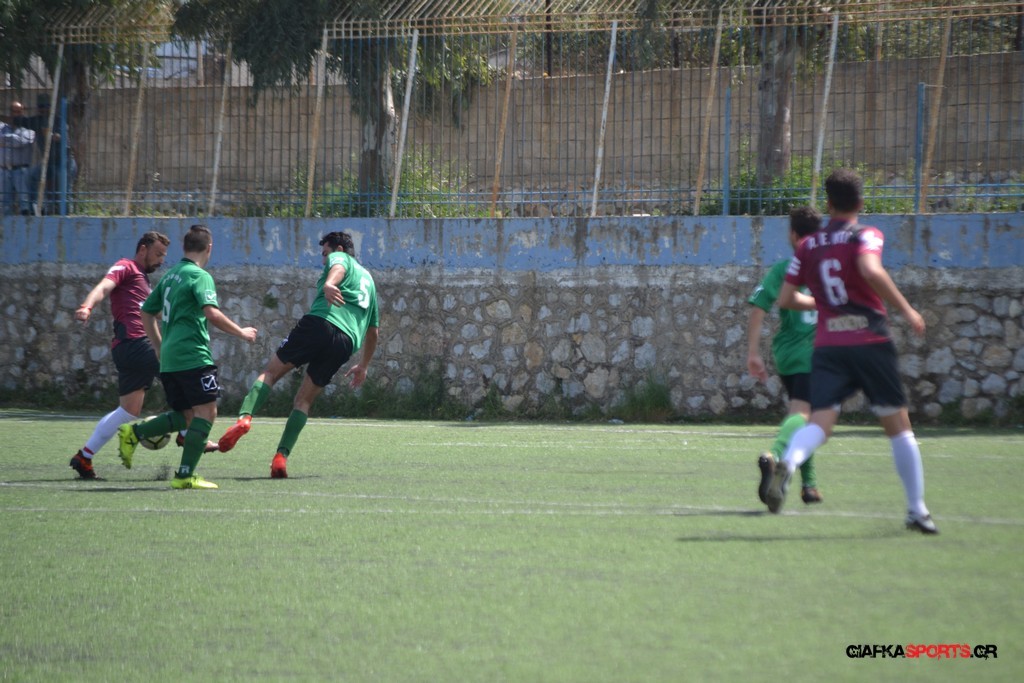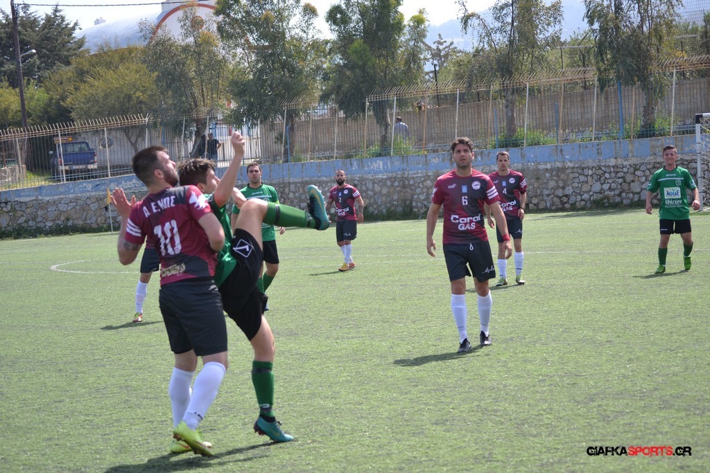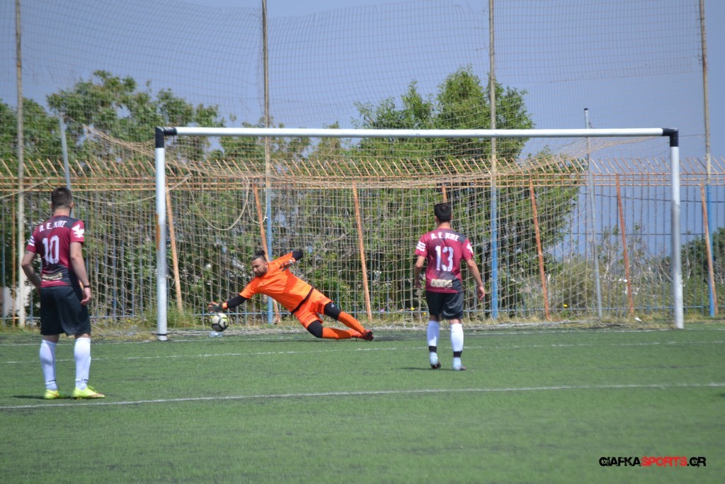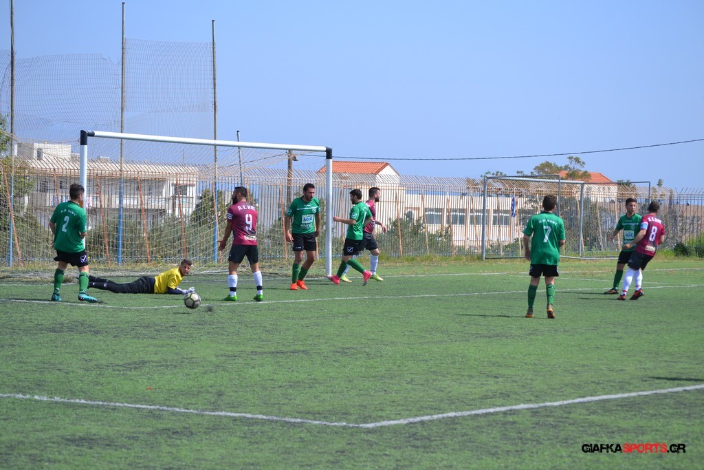 Η Α.Ε Κως είχε τον έλεγχο και την κυκλοφορία και στο 32’ ο Βασιλειάδης με το στήθος έσπρωξε την μπάλα στα δίχτυα κάνοντας το 3-0 για την ομάδα του που ήταν το αποτέλεσμα του πρώτου ημιχρόνου.