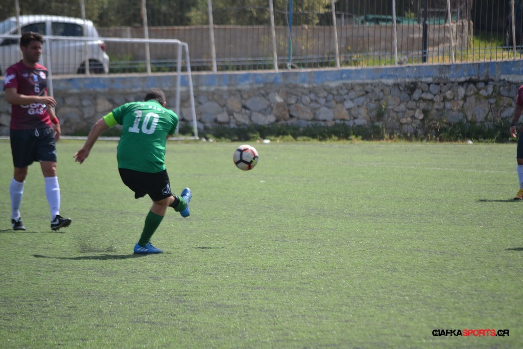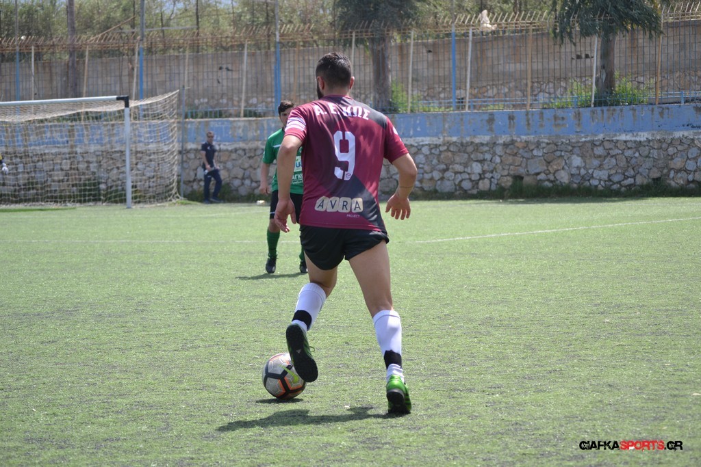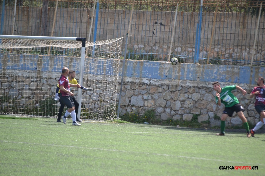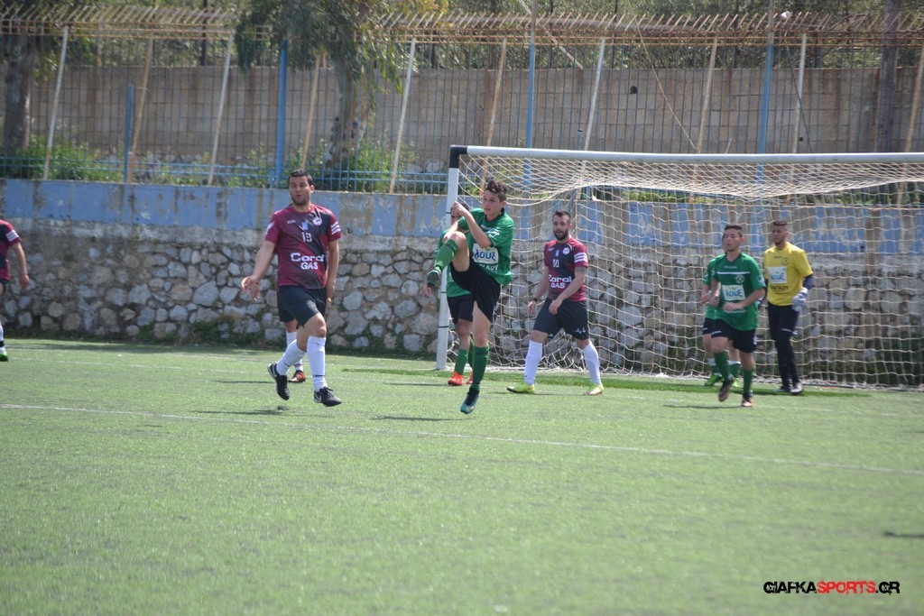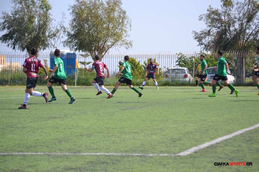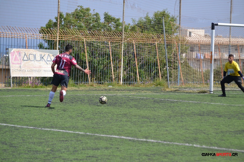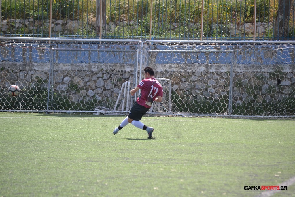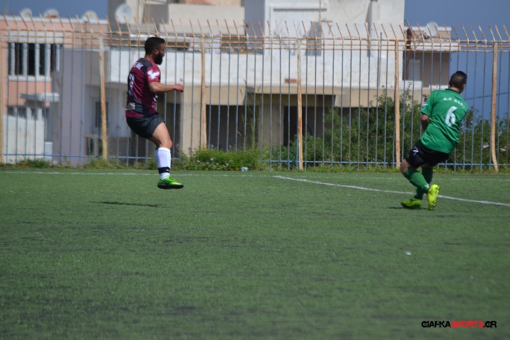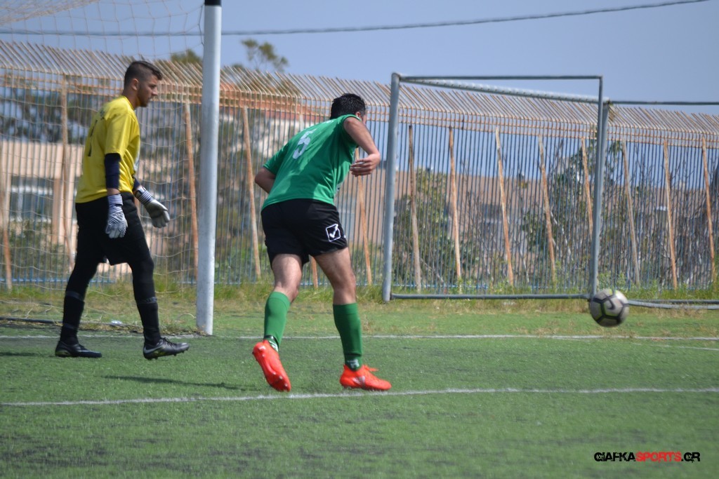 Η Α.Ε Κως είχε τον έλεγχο και την κυκλοφορία και στο 32’ ο Βασιλειάδης με το στήθος έσπρωξε την μπάλα στα δίχτυα κάνοντας το 3-0 για την ομάδα του που ήταν το αποτέλεσμα του πρώτου ημιχρόνου.