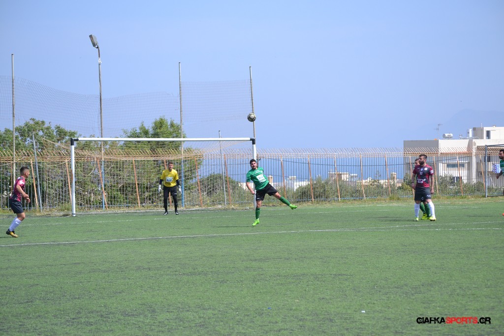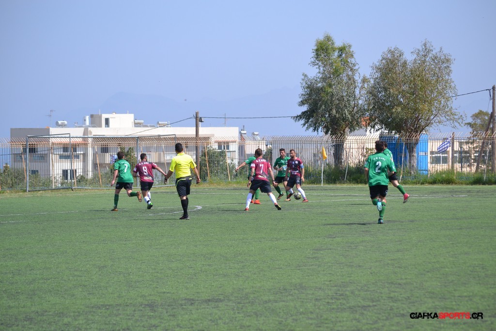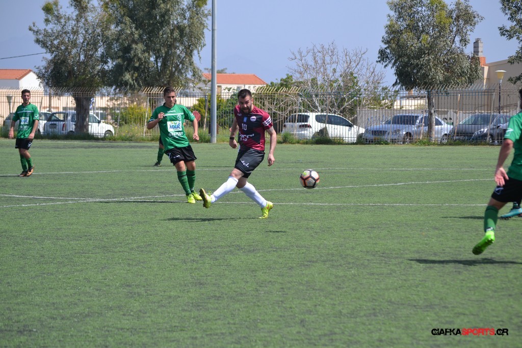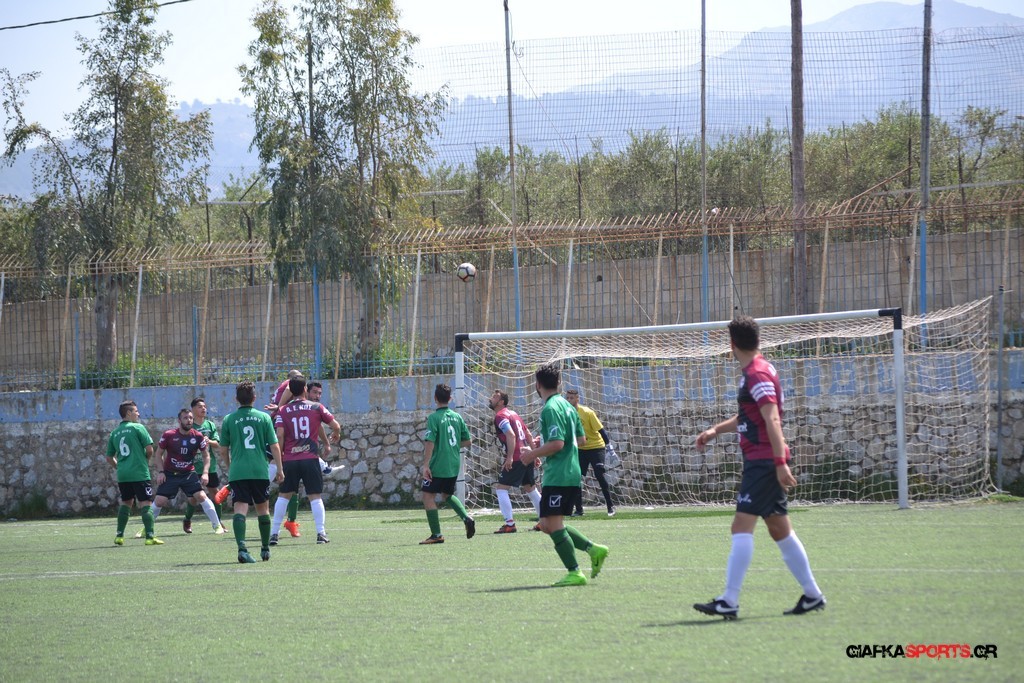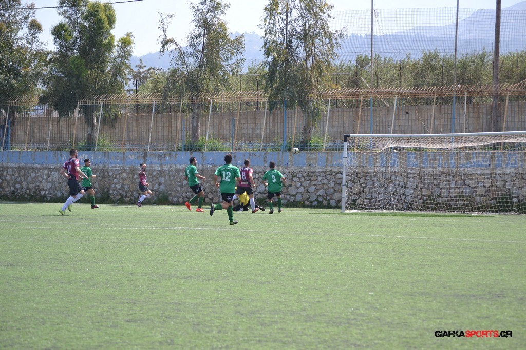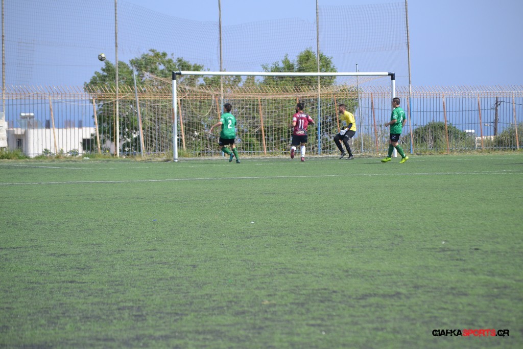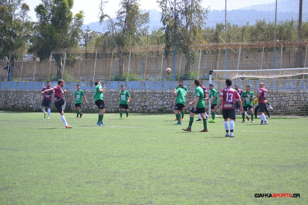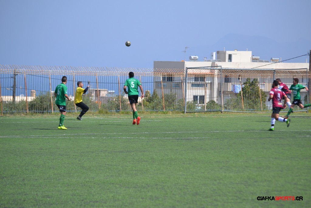 Η Α.Ε Κως είχε τον έλεγχο και την κυκλοφορία και στο 32’ ο Βασιλειάδης με το στήθος έσπρωξε την μπάλα στα δίχτυα κάνοντας το 3-0 για την ομάδα του που ήταν το αποτέλεσμα του πρώτου ημιχρόνου.