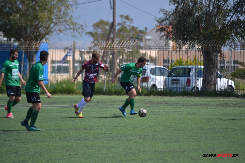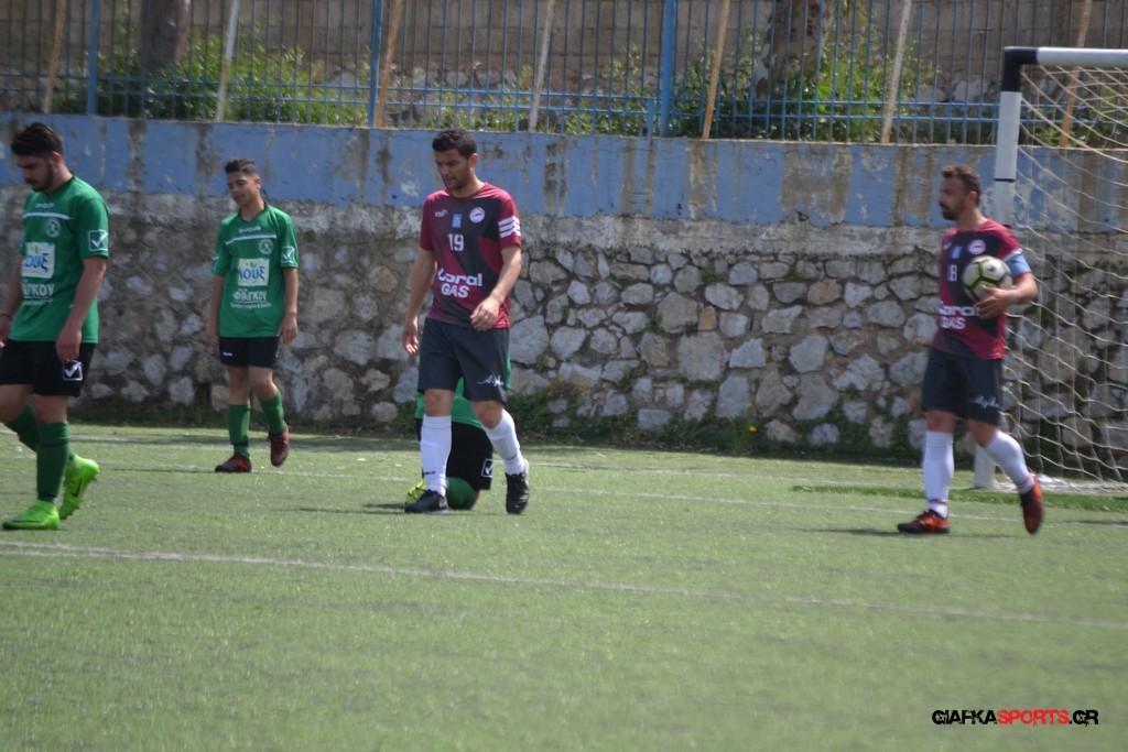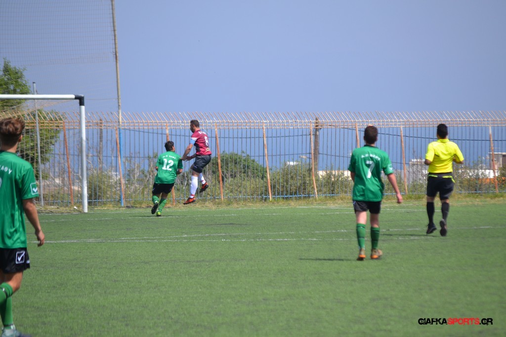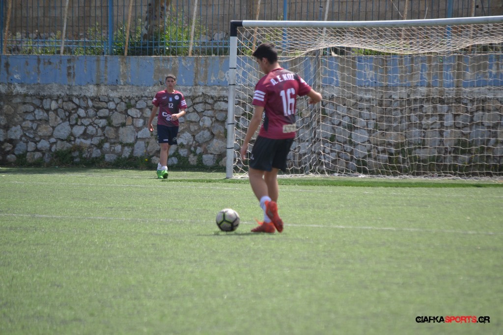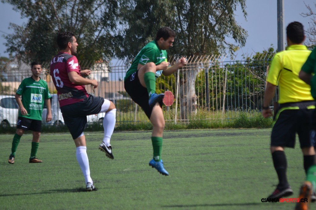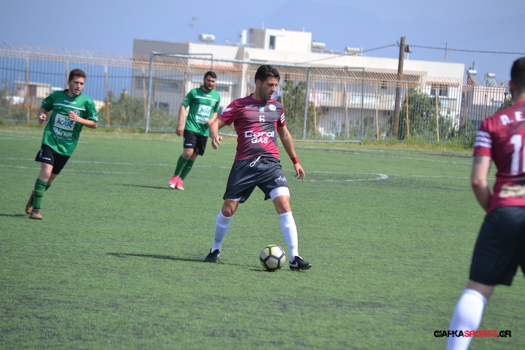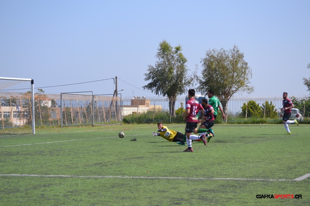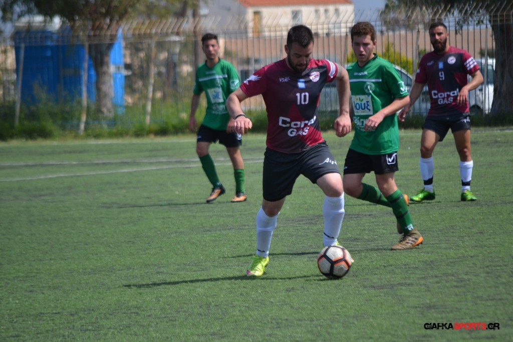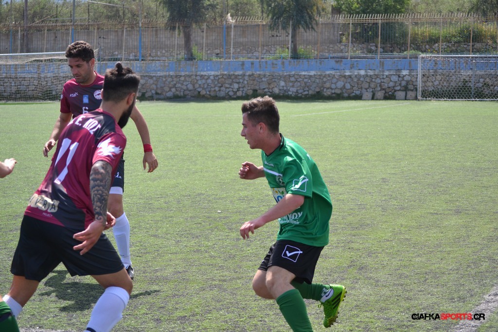 Η Α.Ε Κως είχε τον έλεγχο και την κυκλοφορία και στο 32’ ο Βασιλειάδης με το στήθος έσπρωξε την μπάλα στα δίχτυα κάνοντας το 3-0 για την ομάδα του που ήταν το αποτέλεσμα του πρώτου ημιχρόνου.